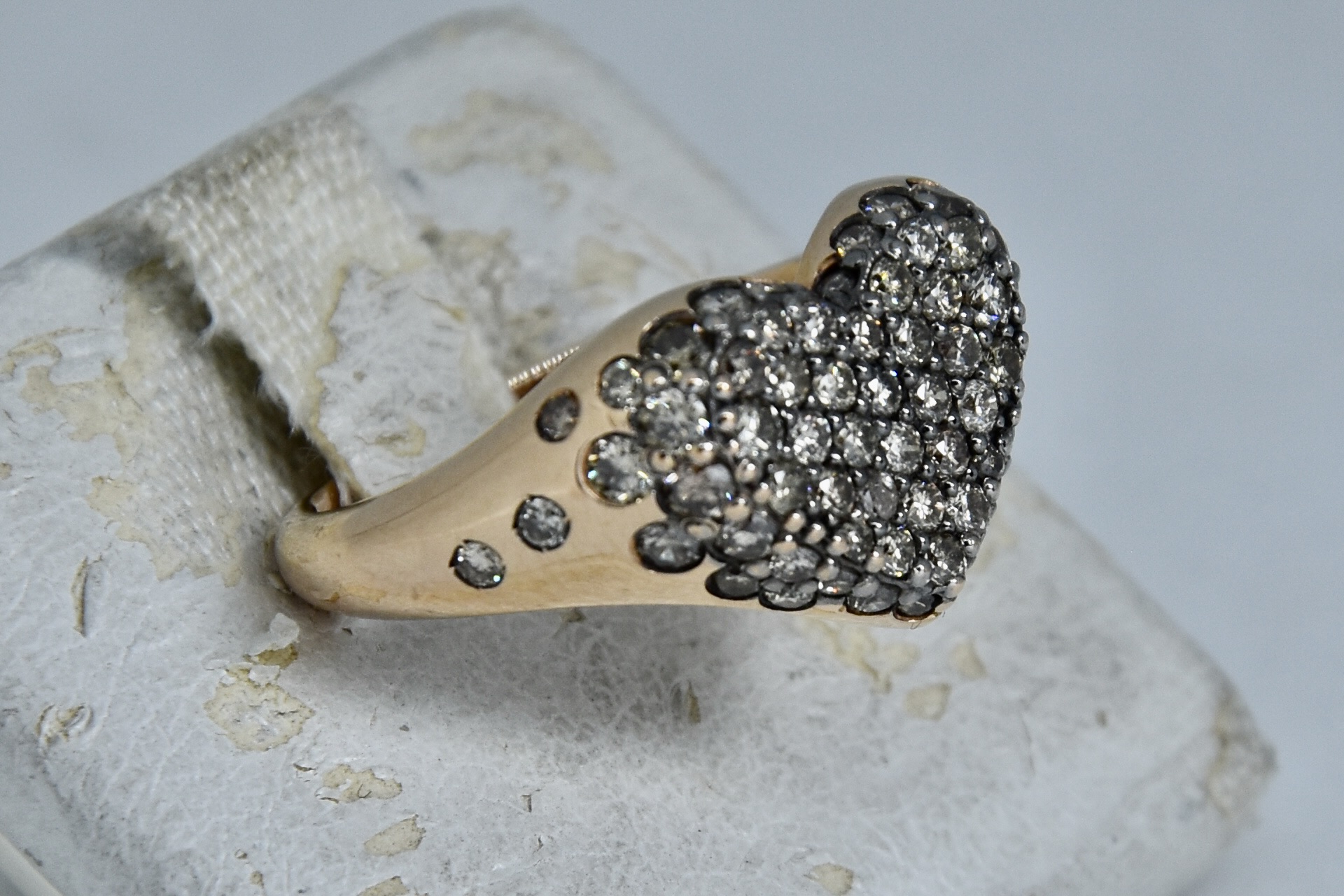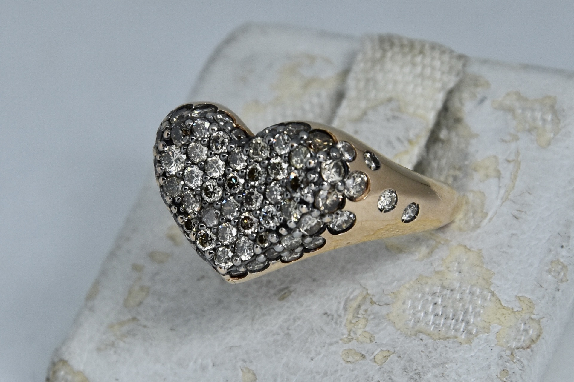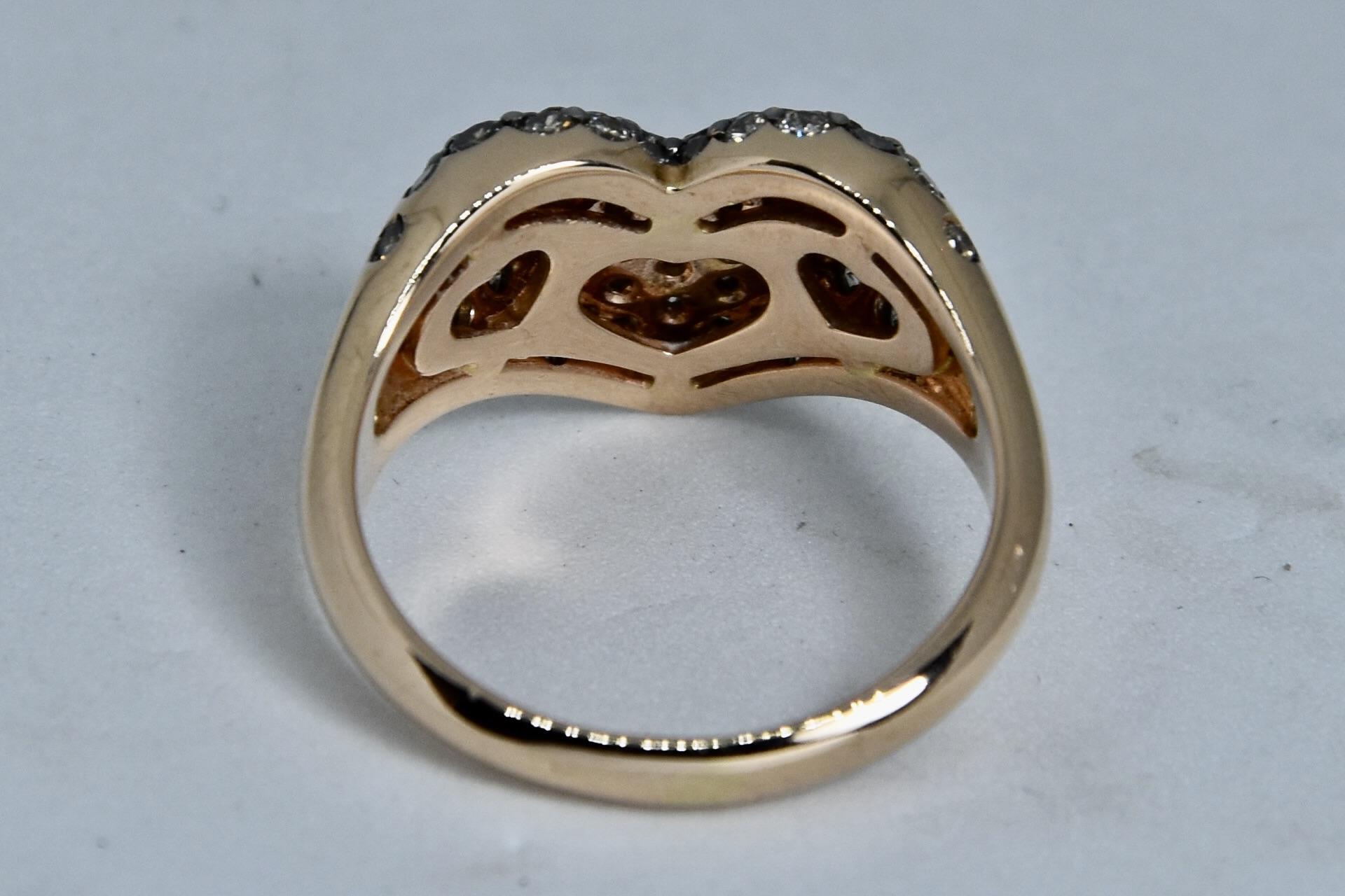 Anello a cuore in oro rosso 750/00 con diamanti taglio brillante di varie misure per un tot. di 0,69ct circa. Peso anello 5,00g.