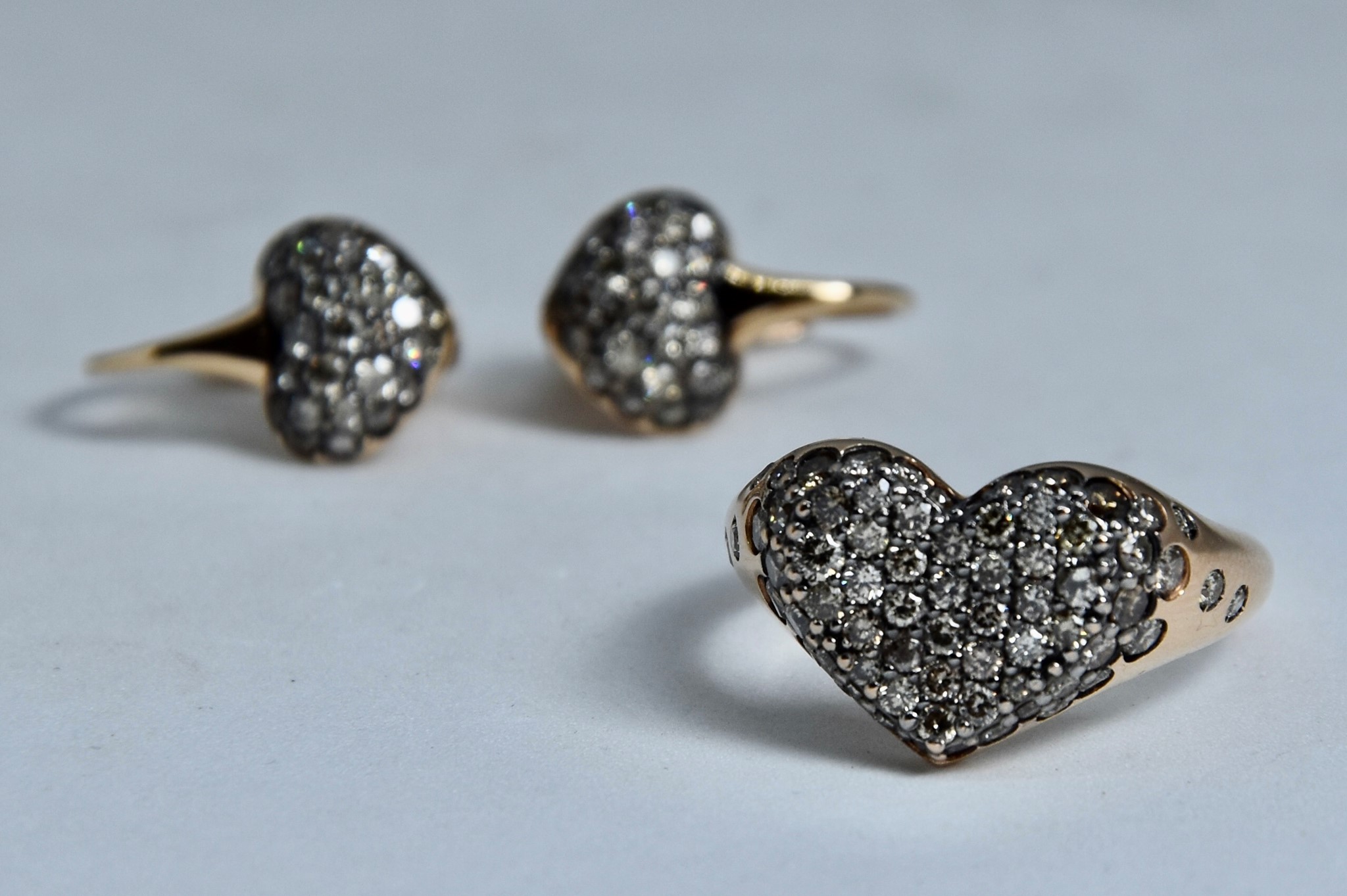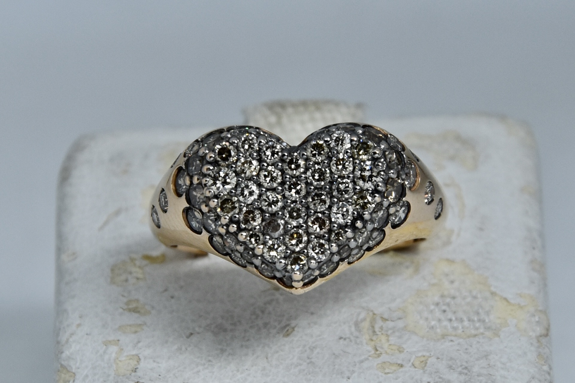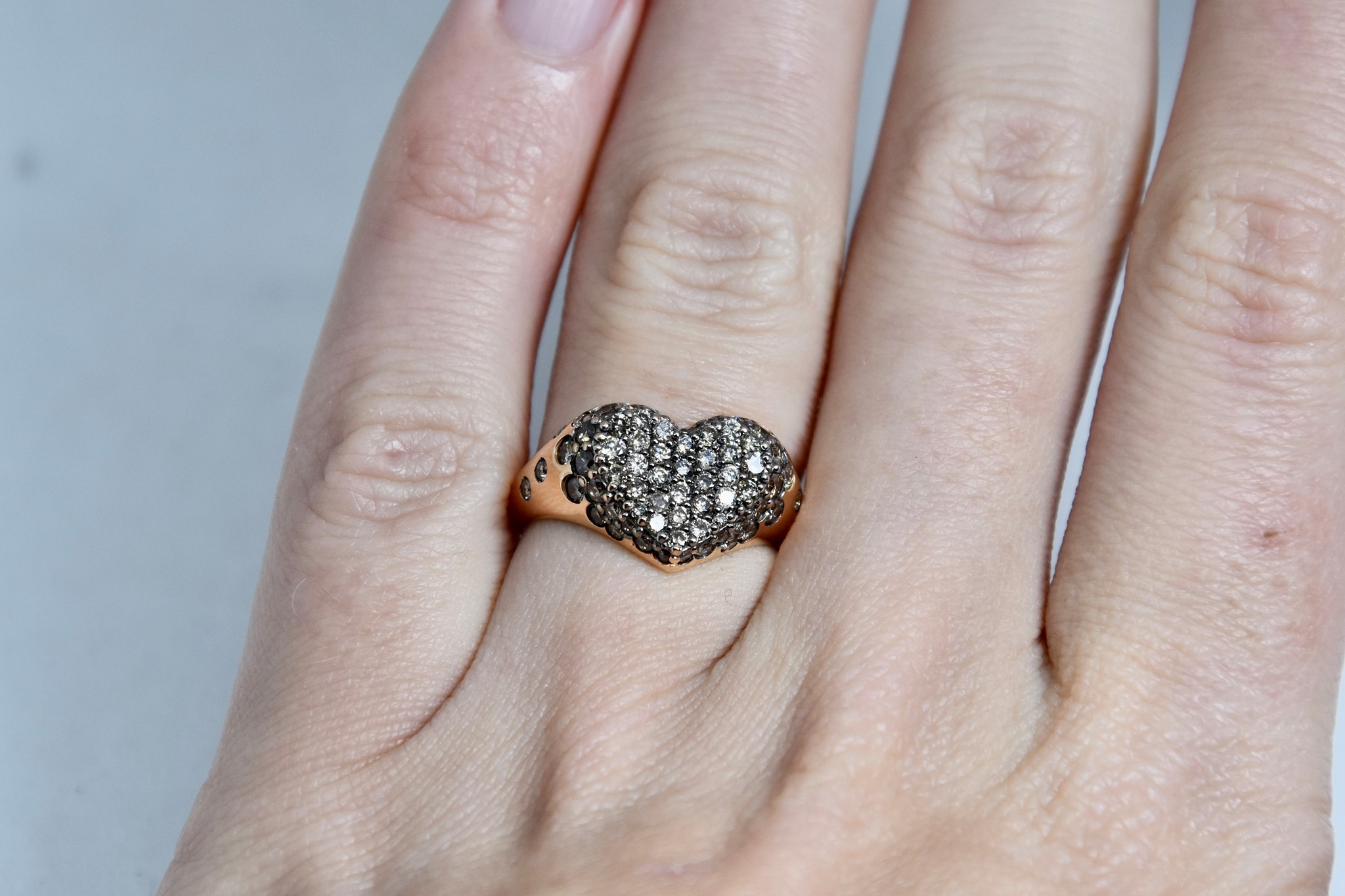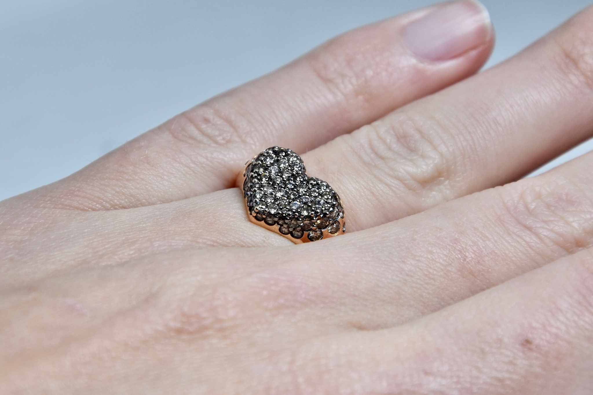 Anello a cuore in oro rosso 750/00 con diamanti taglio brillante di varie misure per un tot. di 0,69ct circa. Peso anello 5,00g.