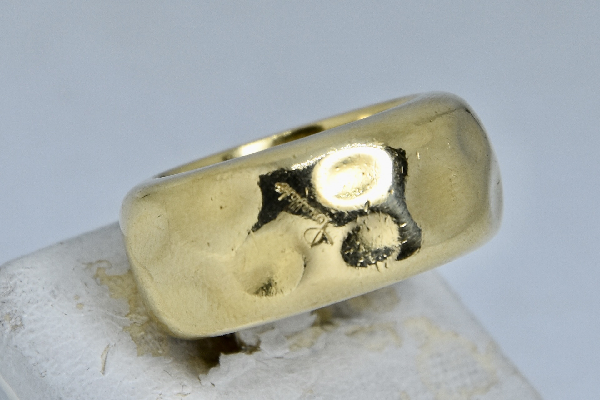 Anello fascione Pomellato in oro giallo 750/00. Peso anello 19,20g.