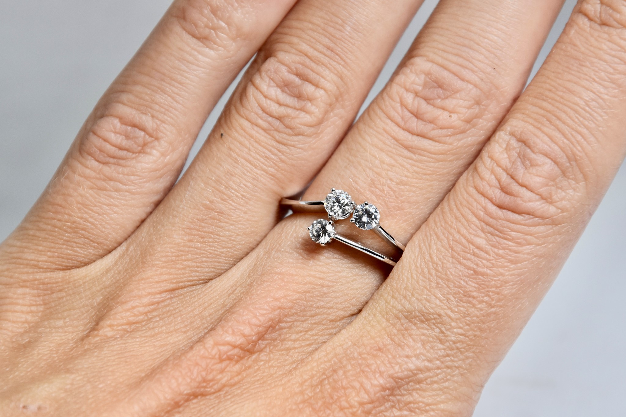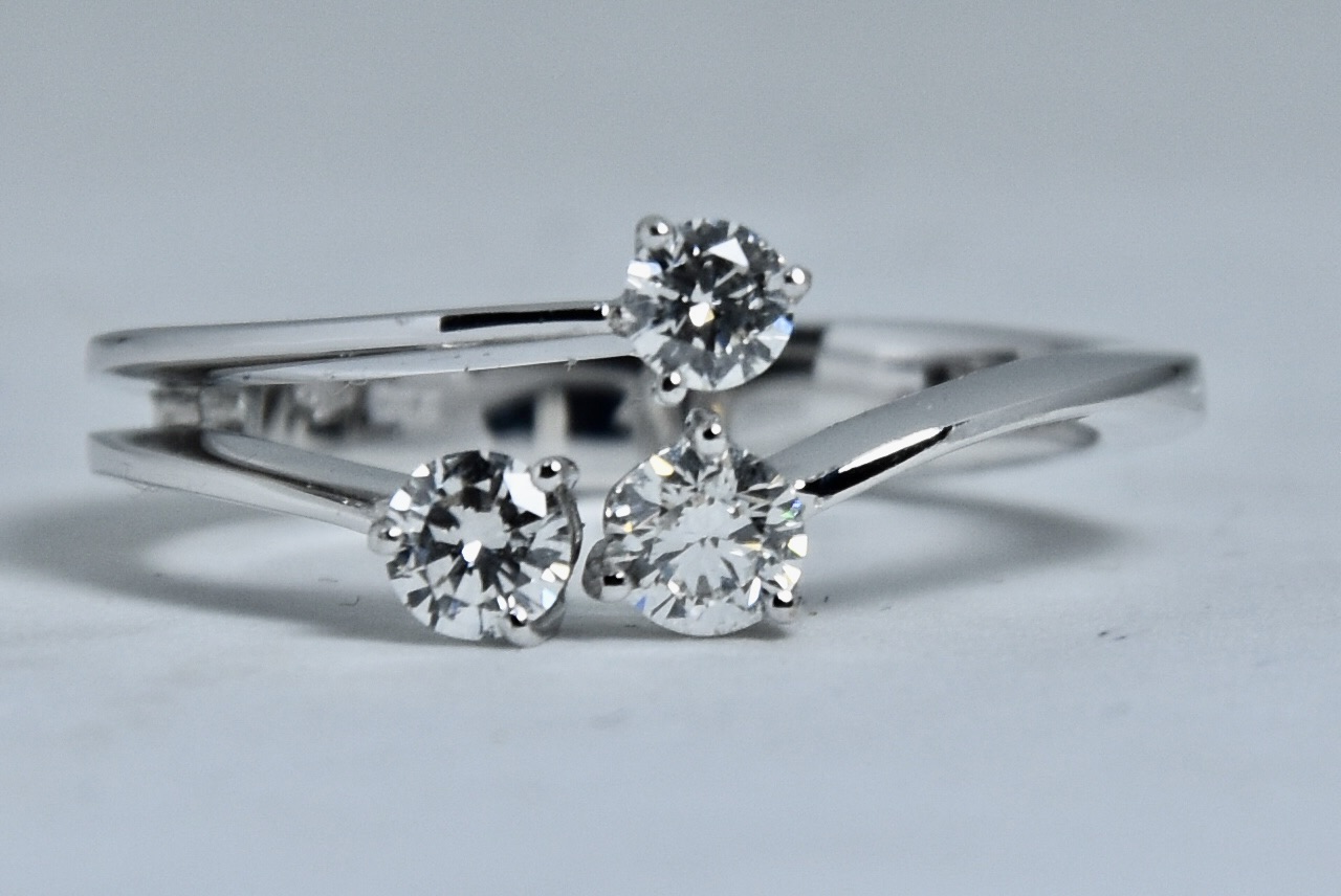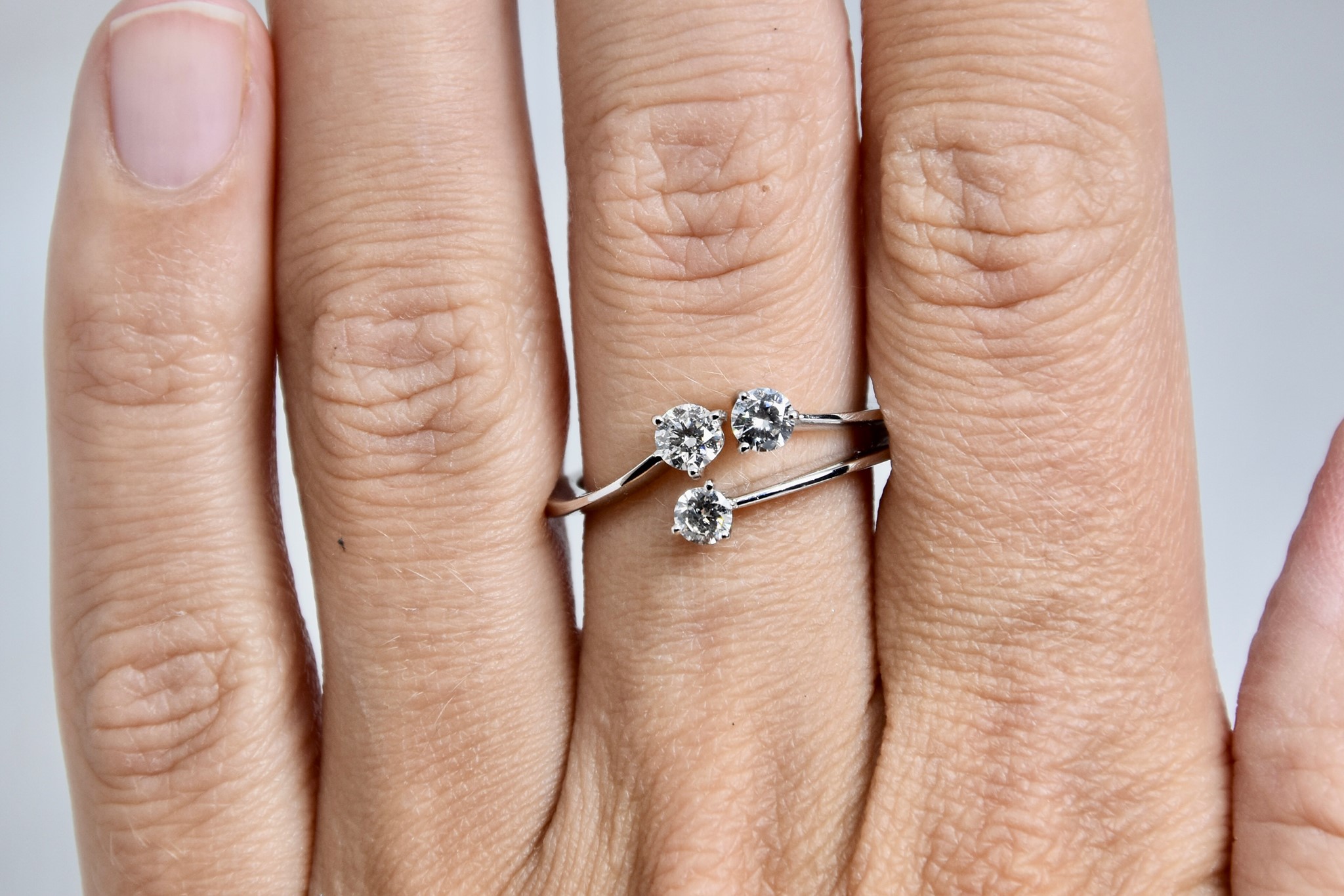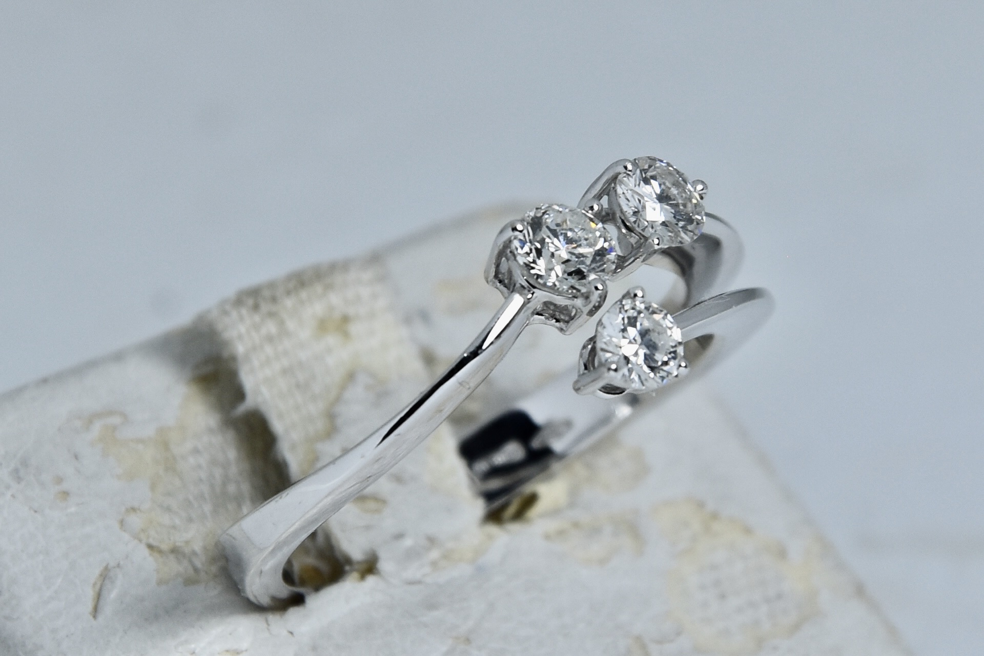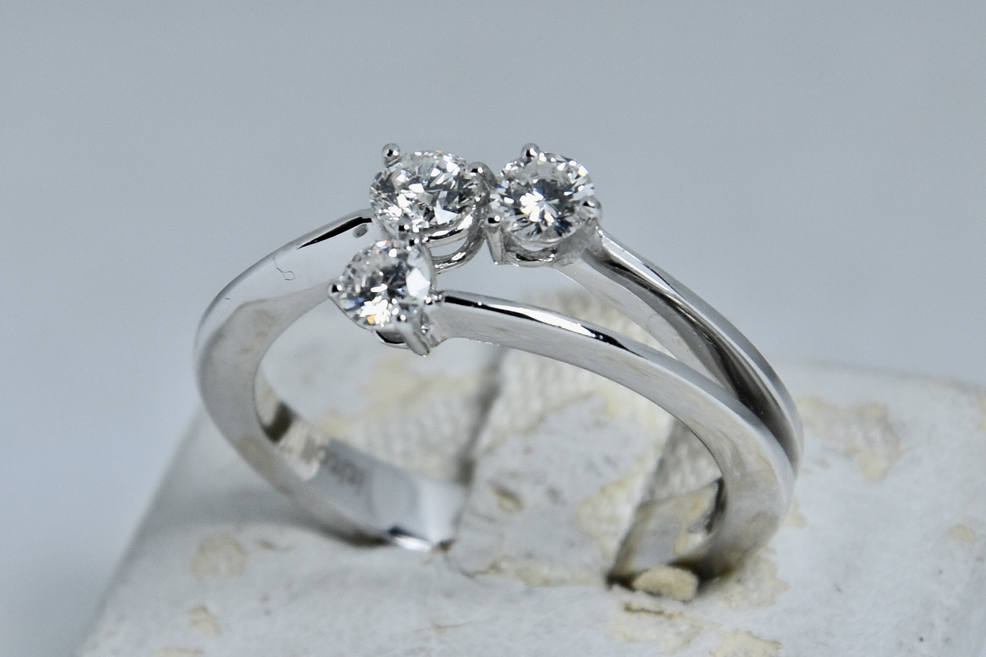 Anello trilogy in oro bianco 750/00 con 3 diamanti taglio brillante 0,54ct totali, I color, VS2. Peso 4,35g.