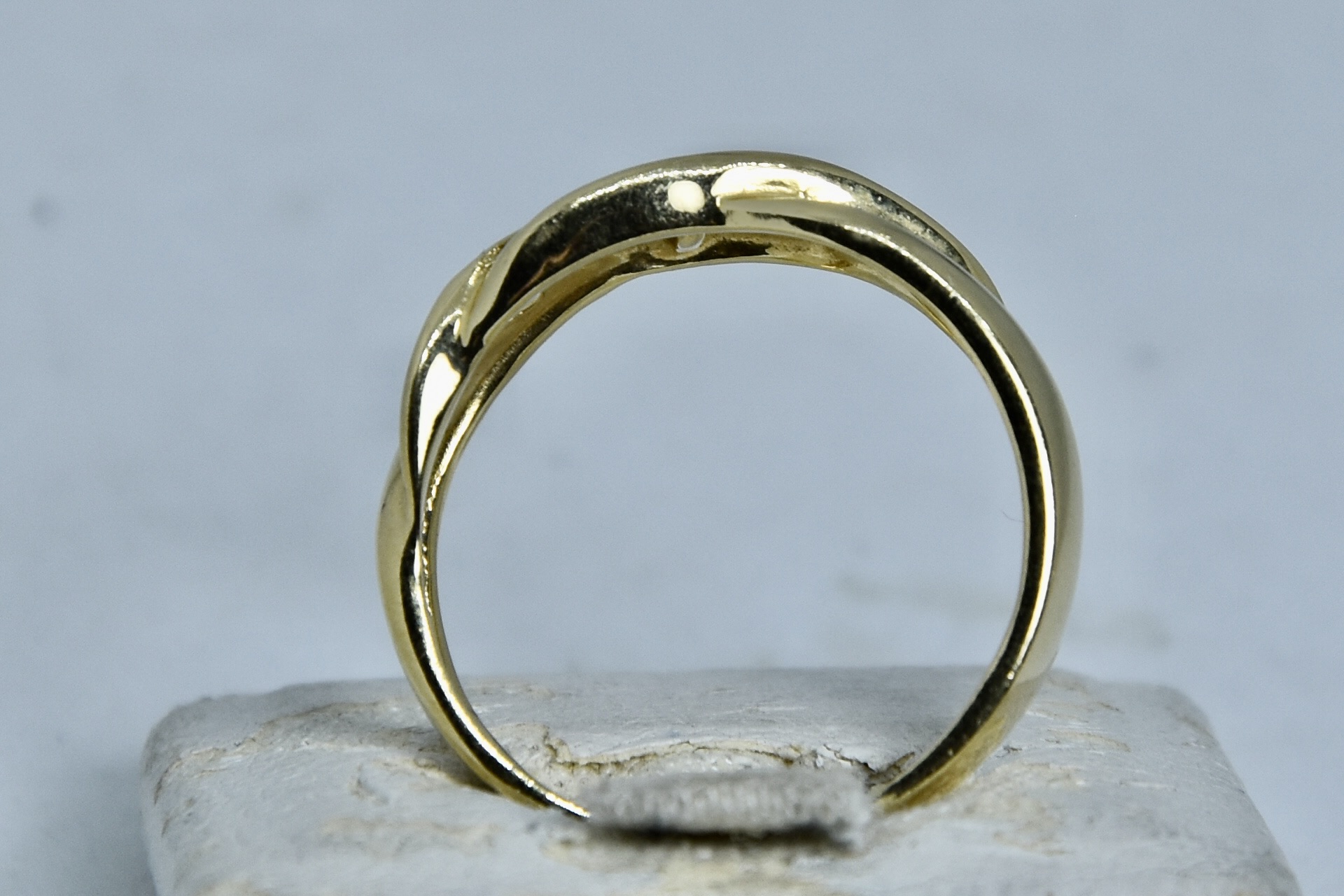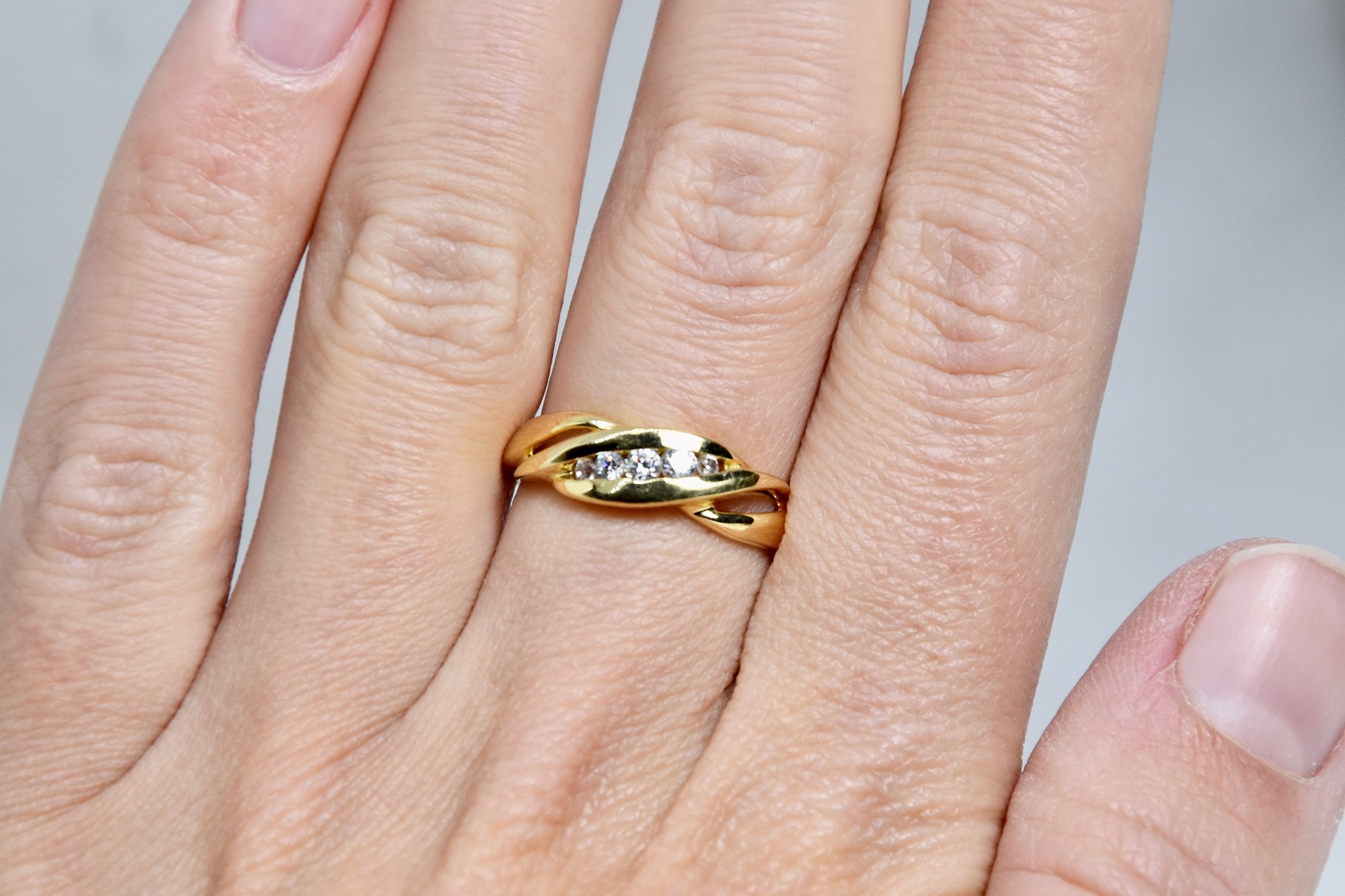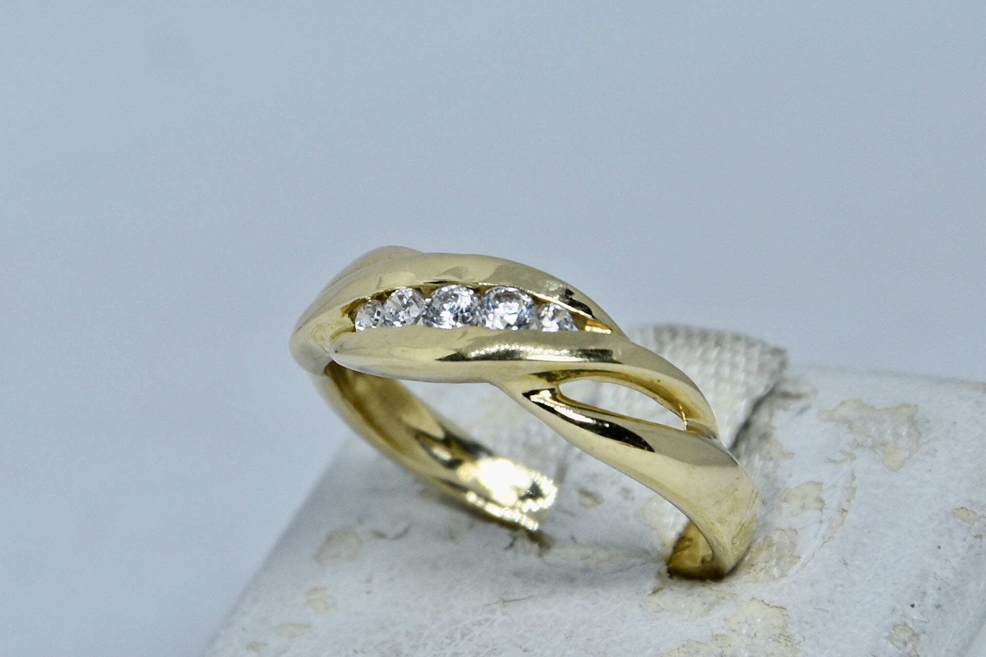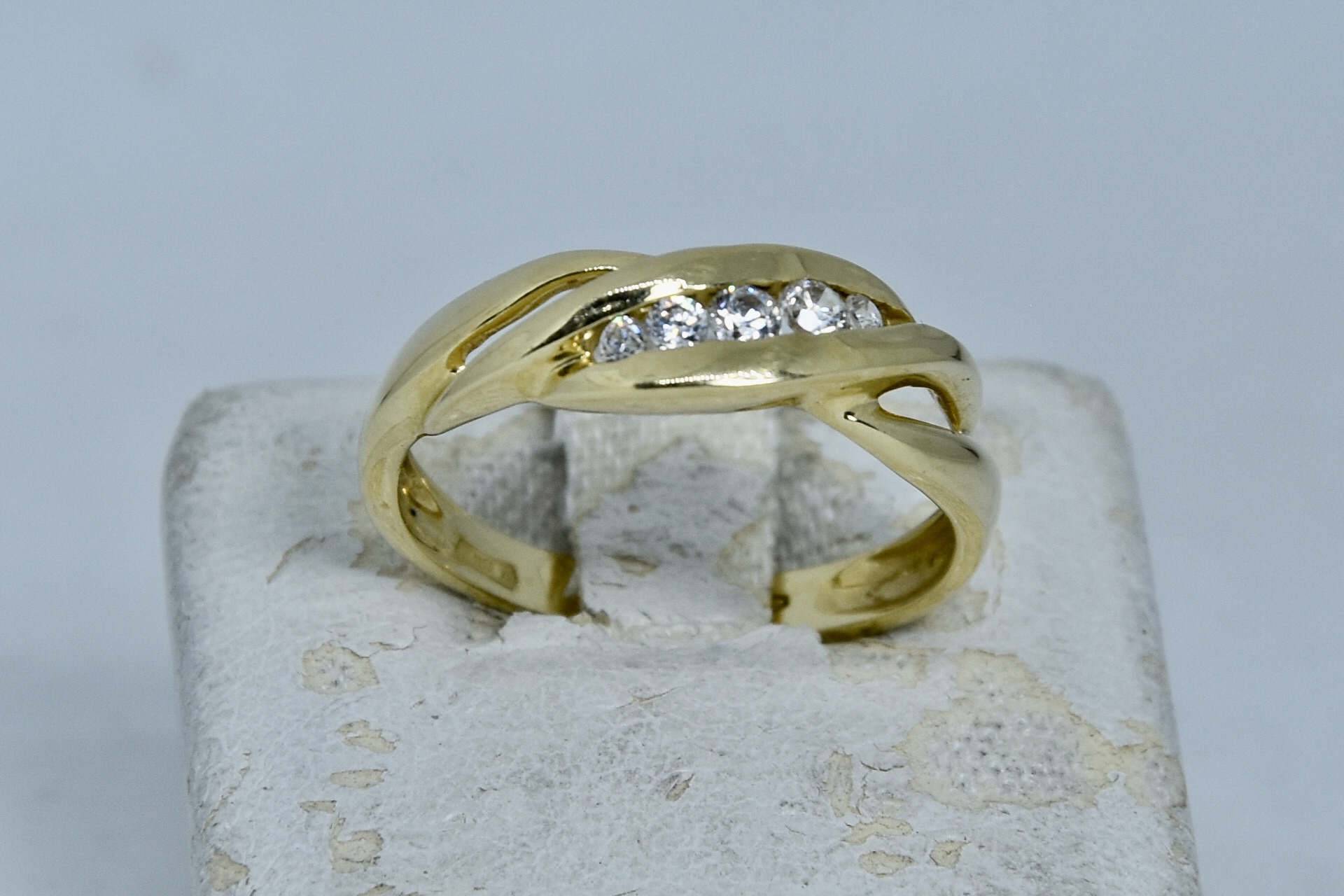 Anello oro giallo 750/00 e zirconi del peso di 3,25g.