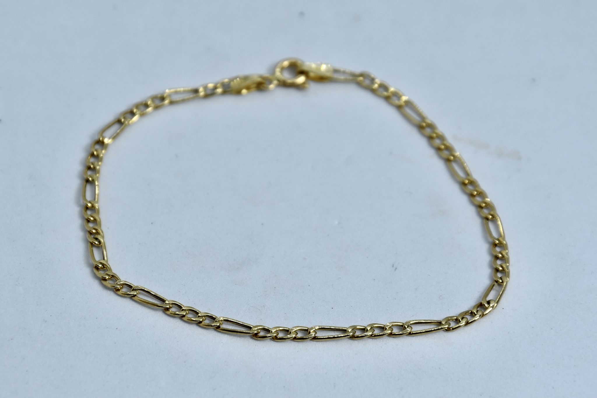 Braccialetto oro giallo 750/00 della lunghezza di 18cm. Peso 1,30g.