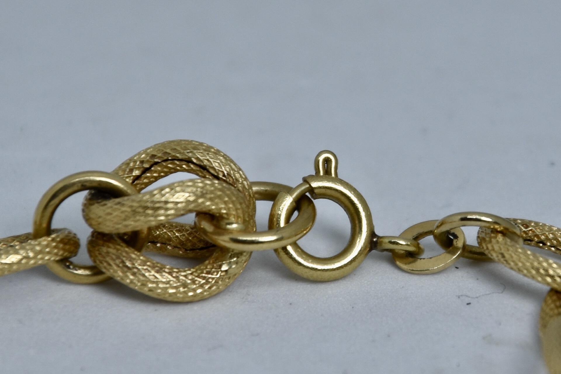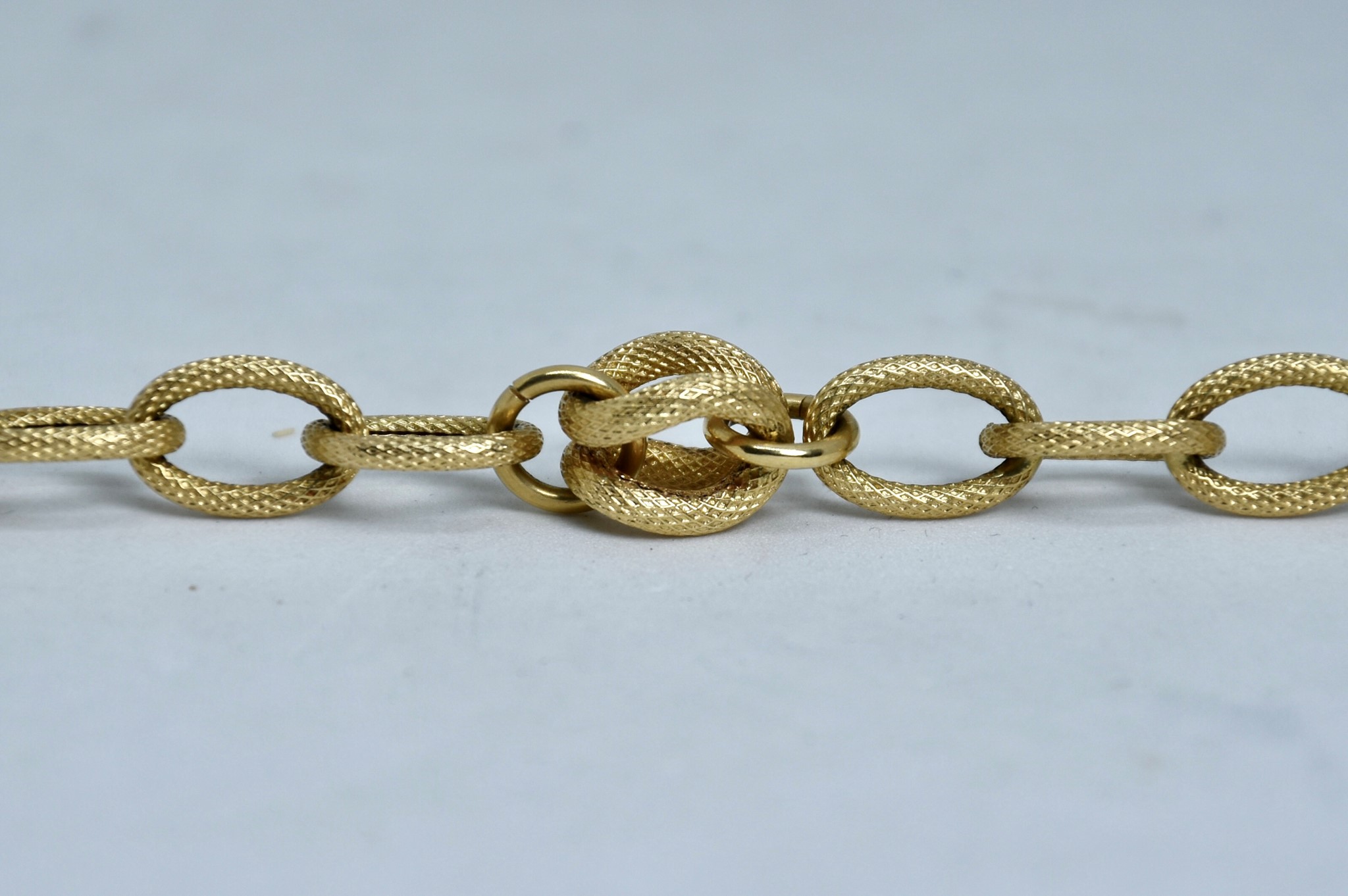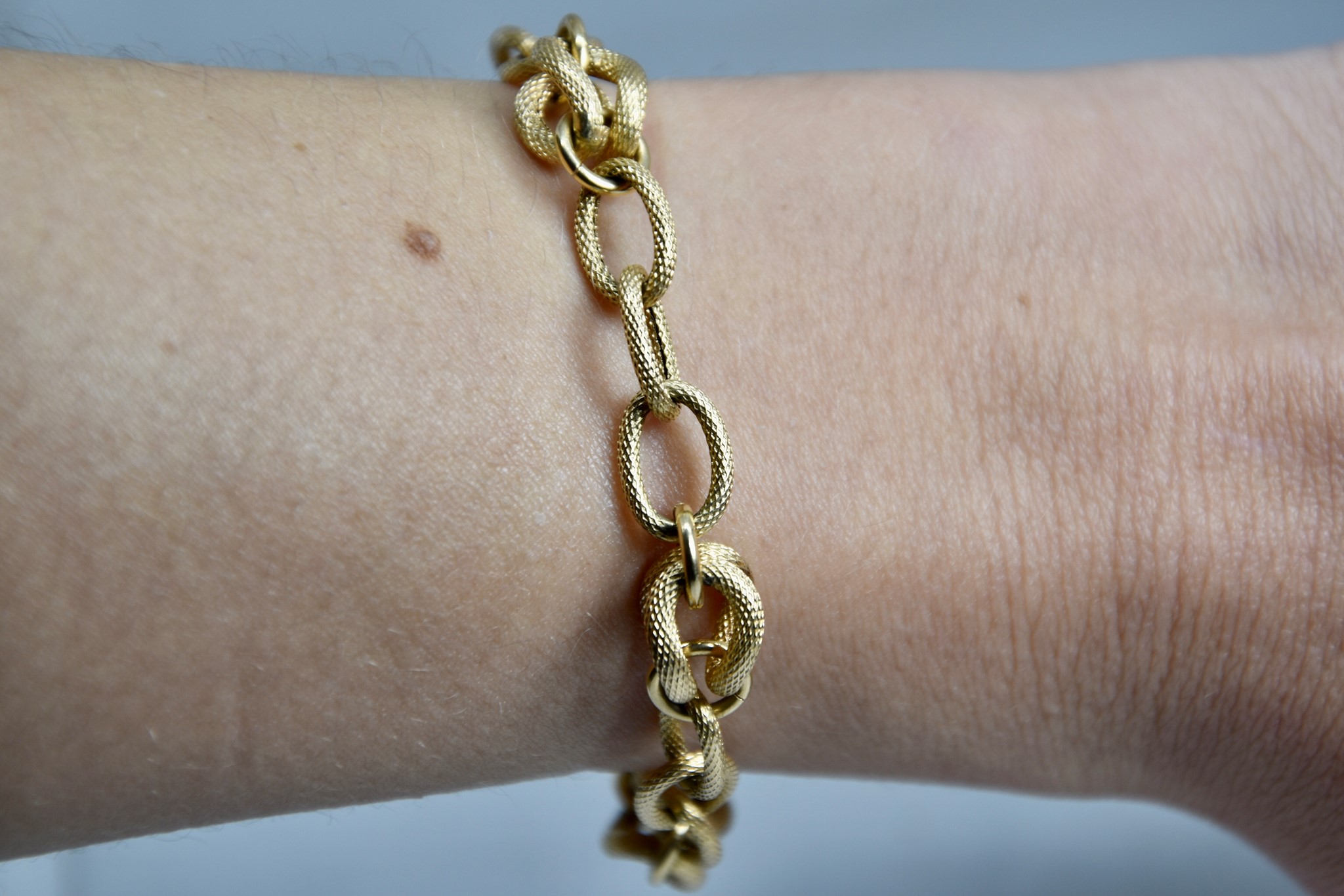 Bracciale maglia tipo rollò puntinato in oro giallo 750/00 della lunghezza di 18,50cm. Peso bracciale 11,05g.