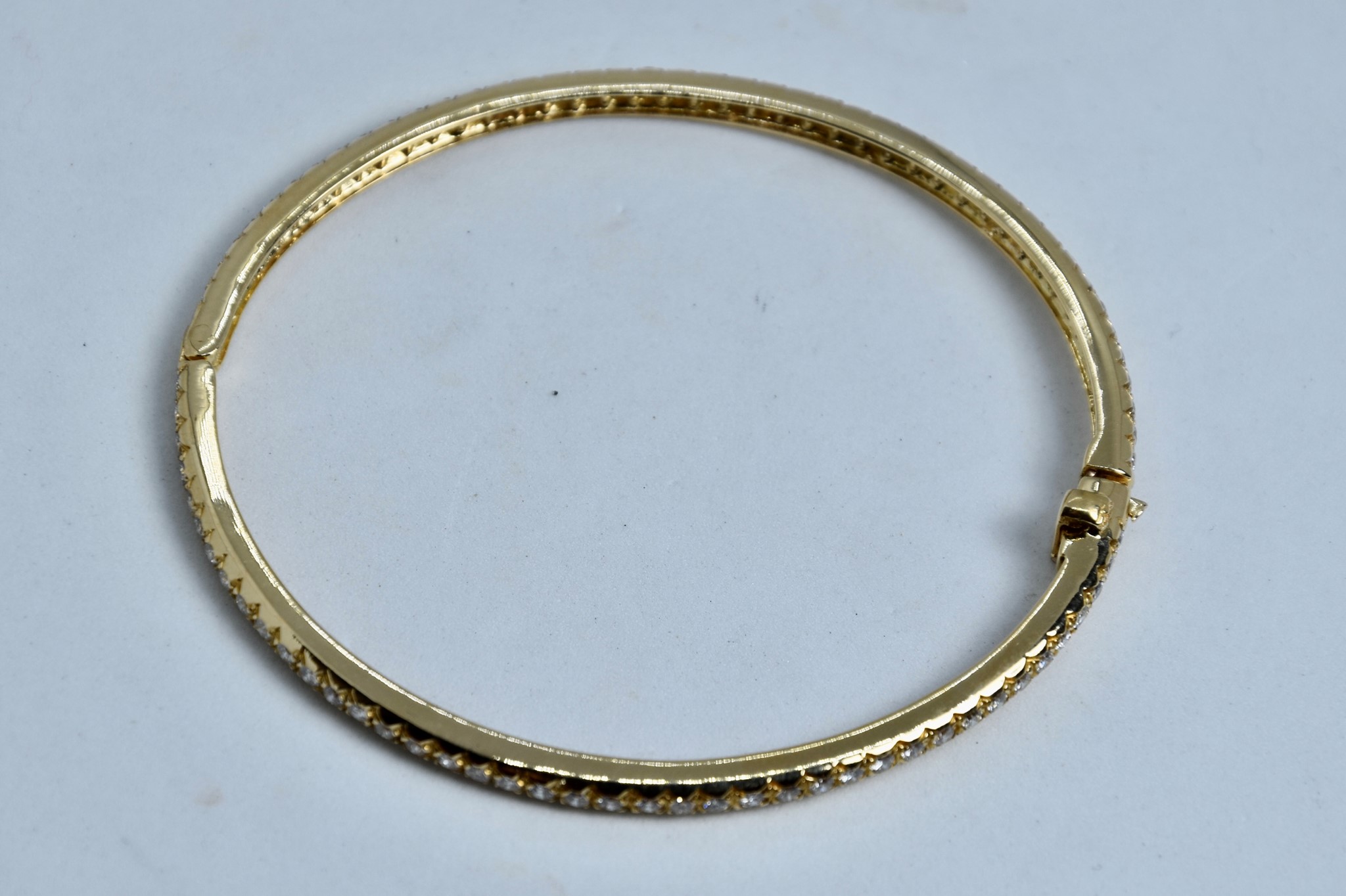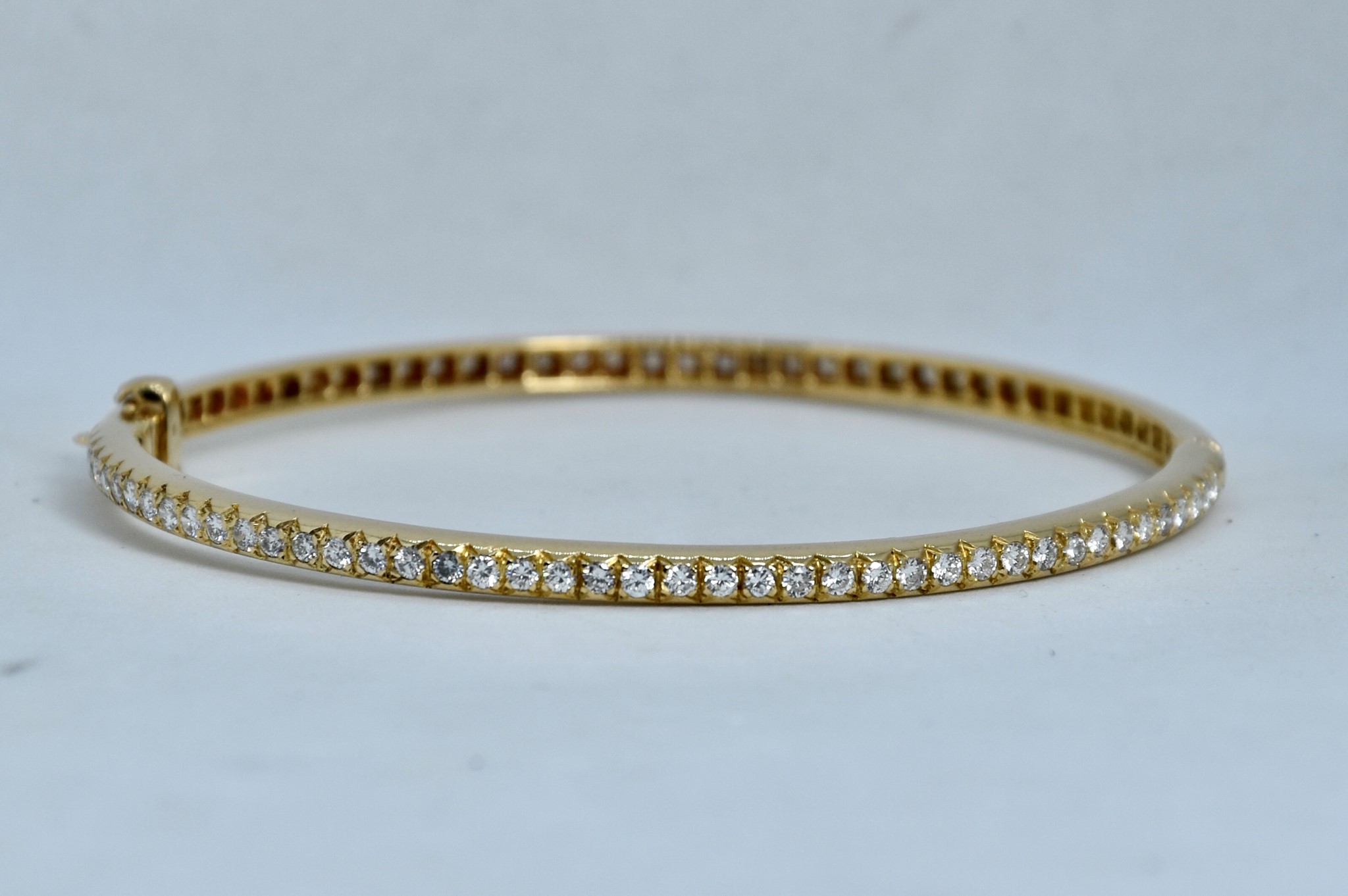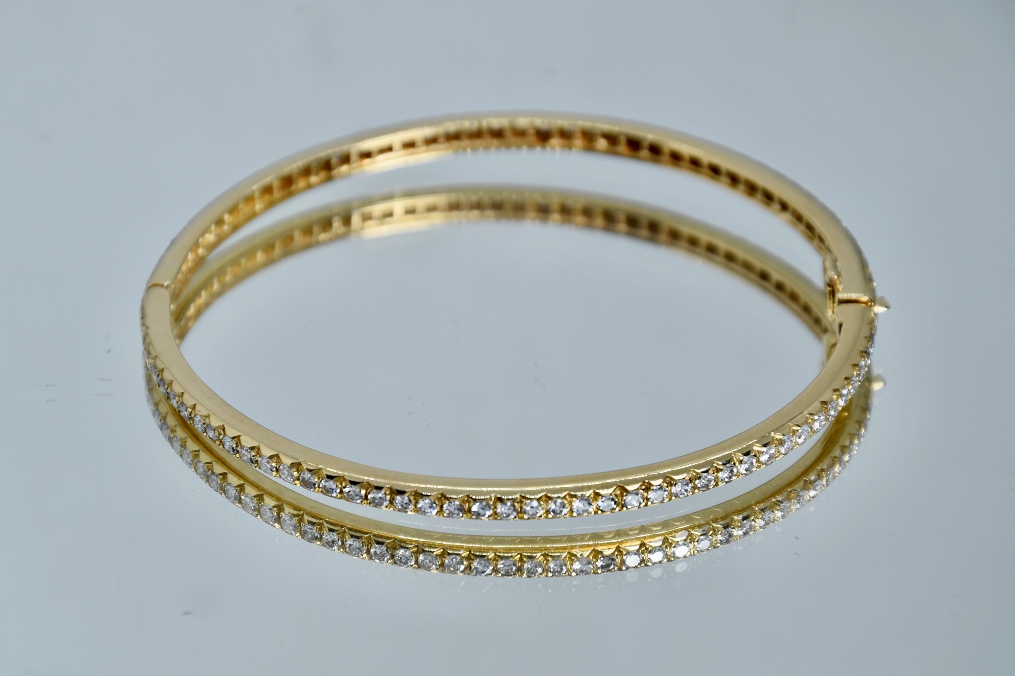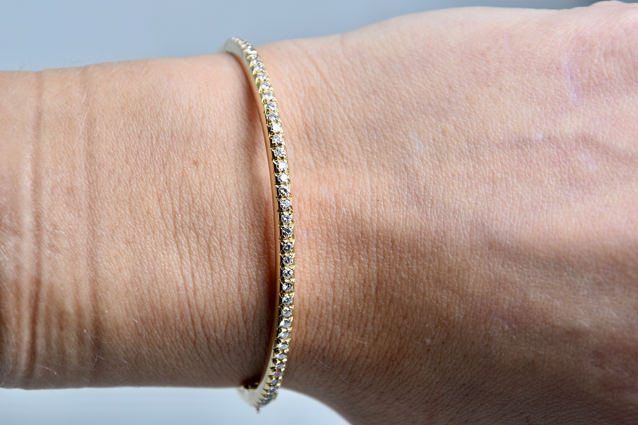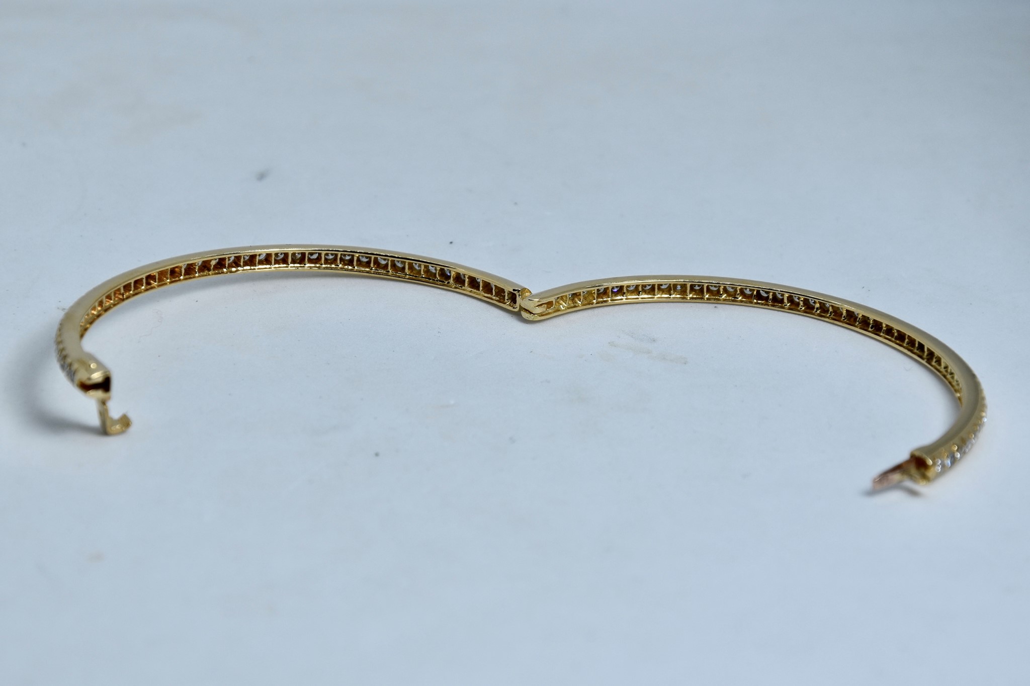Bracciale rigido in oro giallo 750/00 con 84 diamanti taglio brillante da 0,01ct l’uno per un totale di 0,84ct; G/H color, VS2. Peso complessivo del bracciale 13,30g.