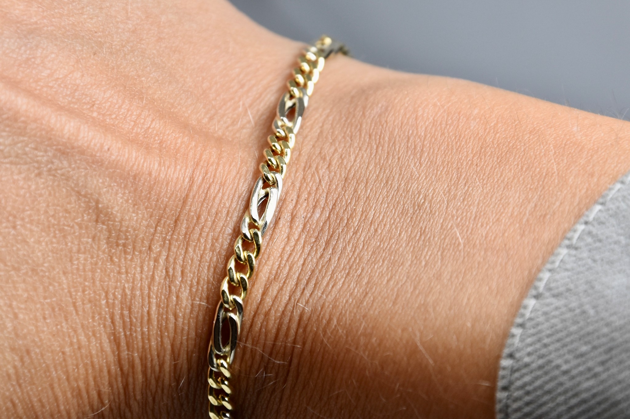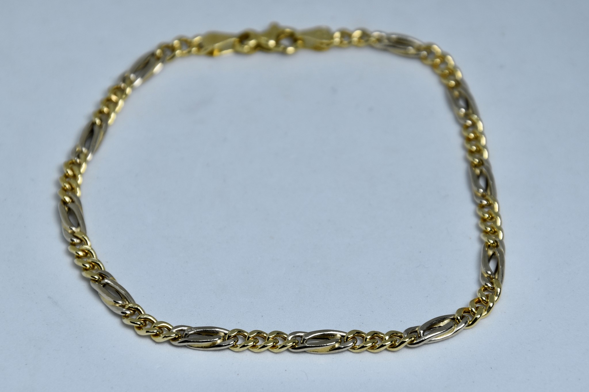 Bracciale in oro giallo e bianco 750/00 della lunghezza di 21cm. Peso bracciale 4,35g.