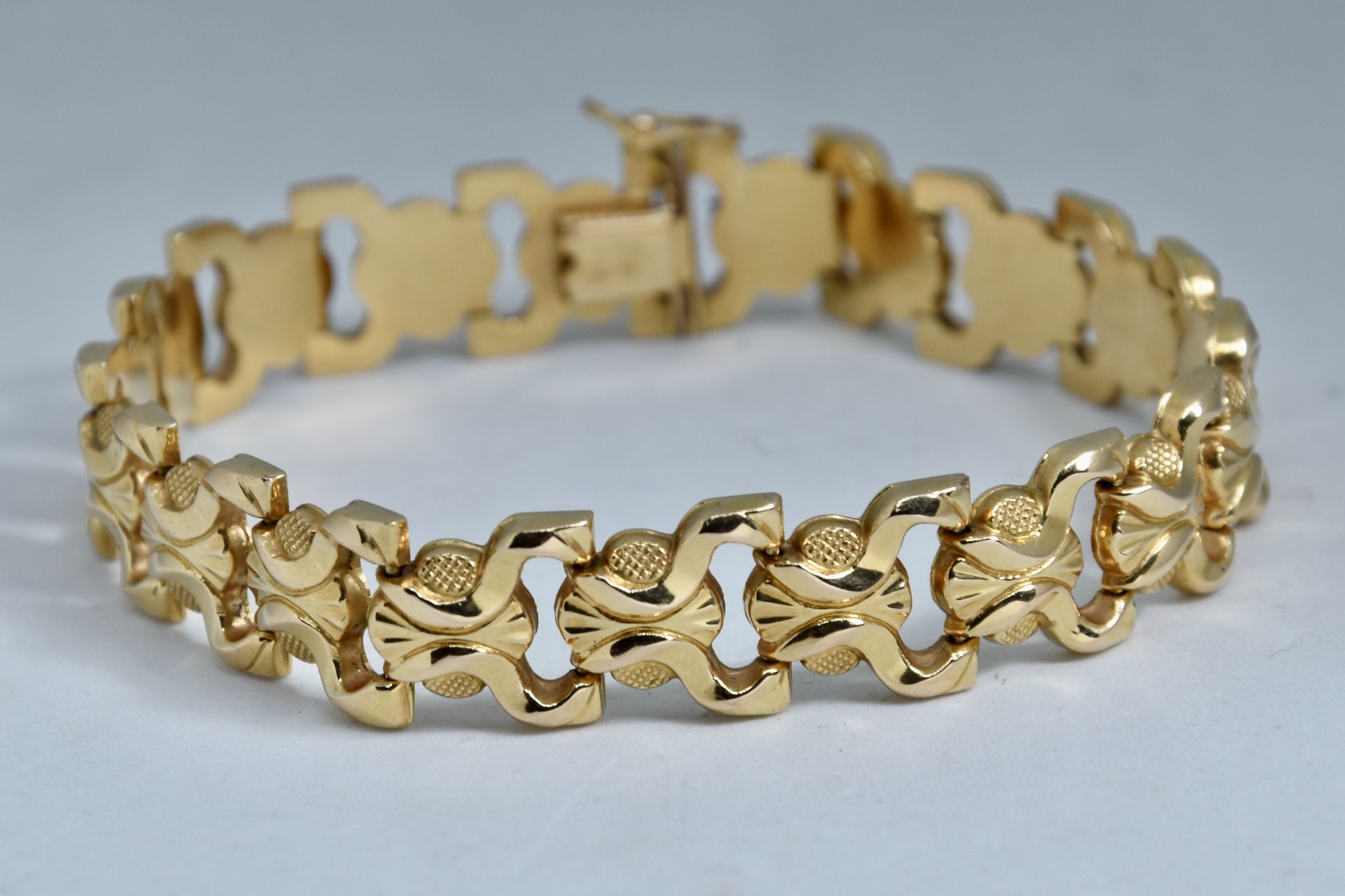 Bracciale in oro giallo 750/00 della lunghezza di 19cm. Peso bracciale 17,95g.