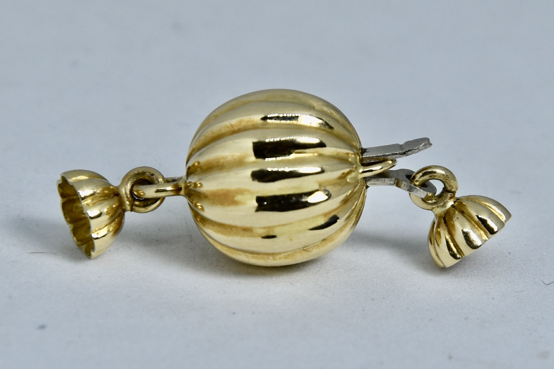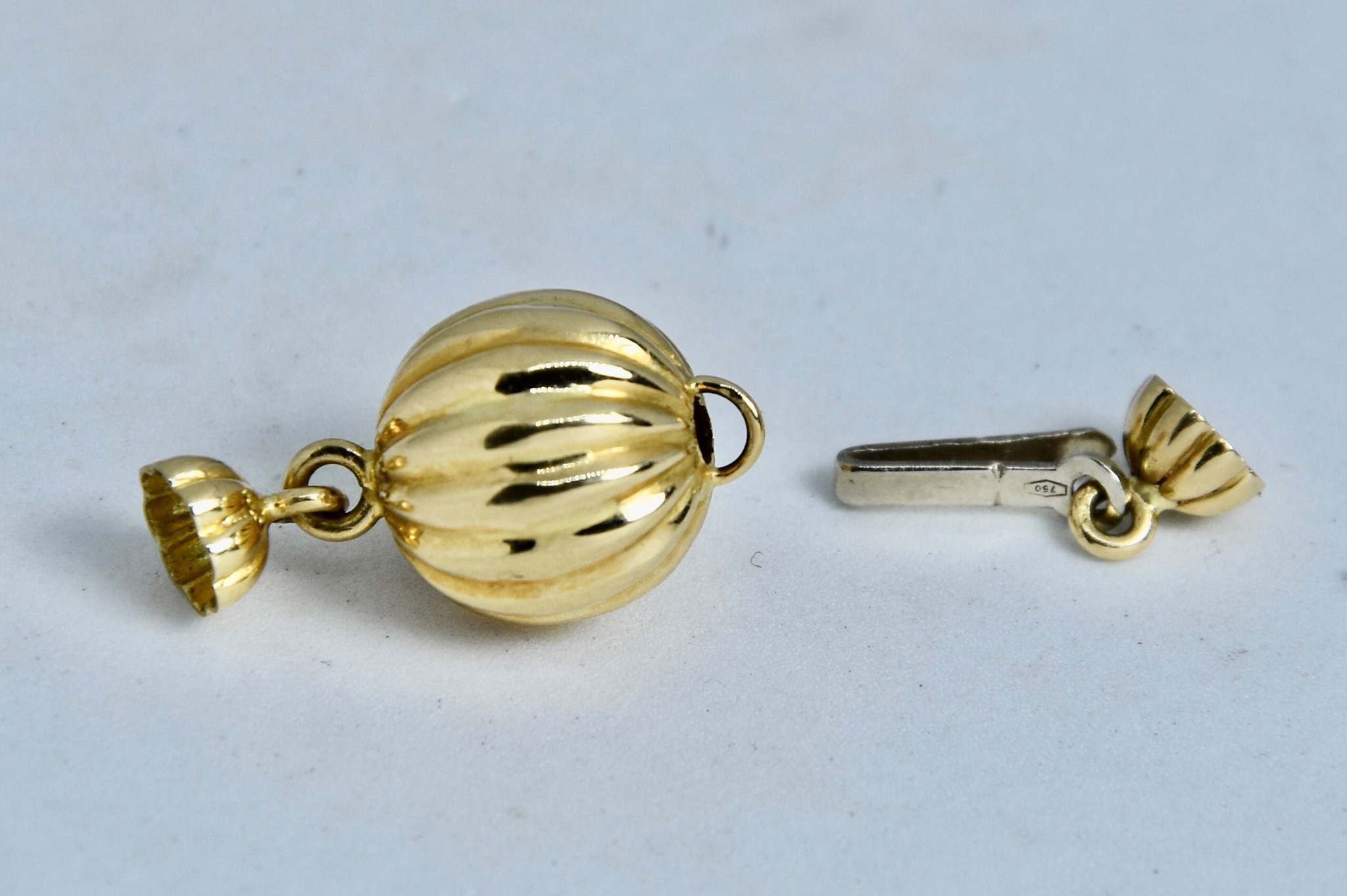 Chiusura collana in oro giallo 750/00. Diametro sfera 1,10cm. Peso 2,65g.