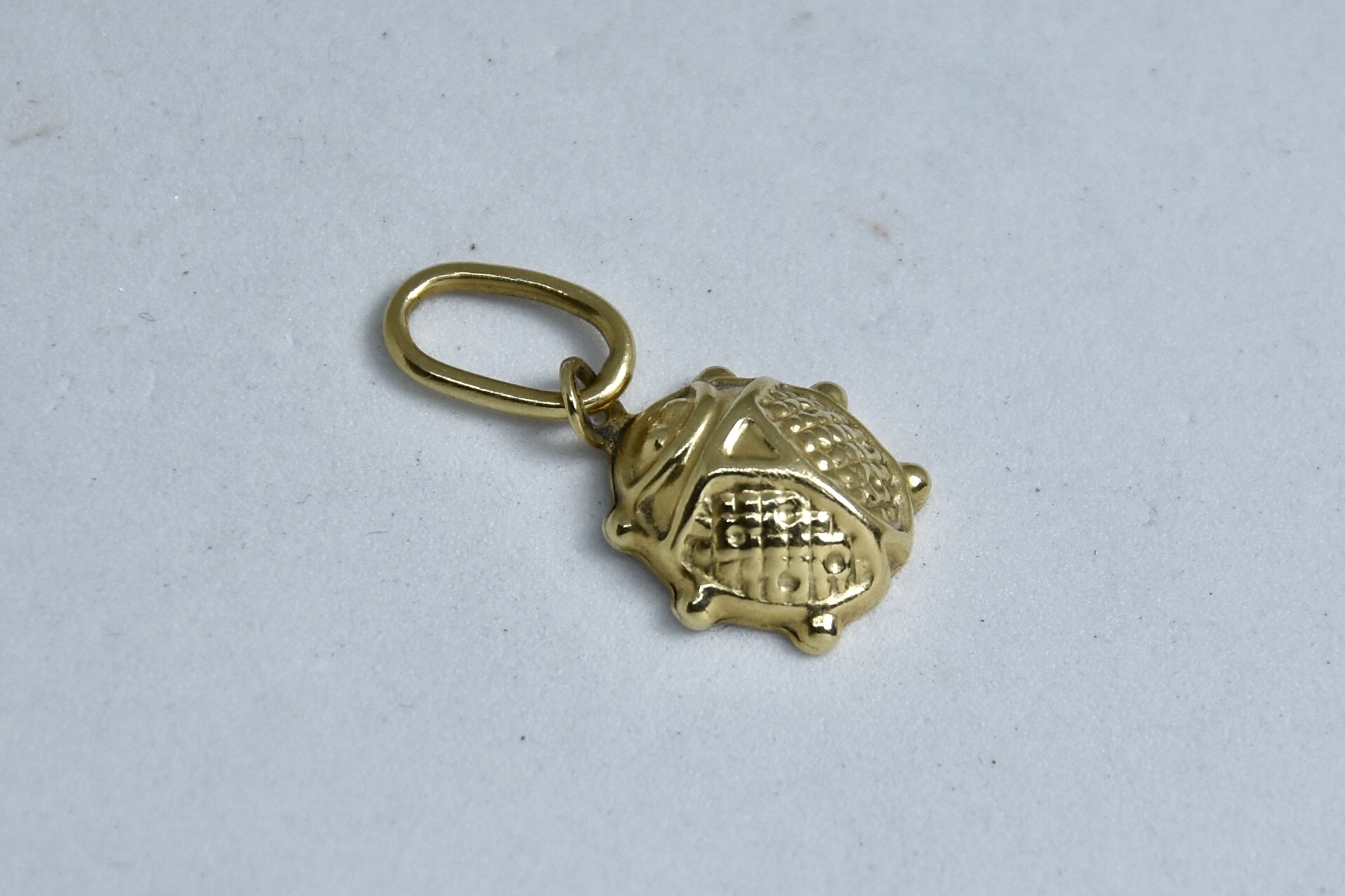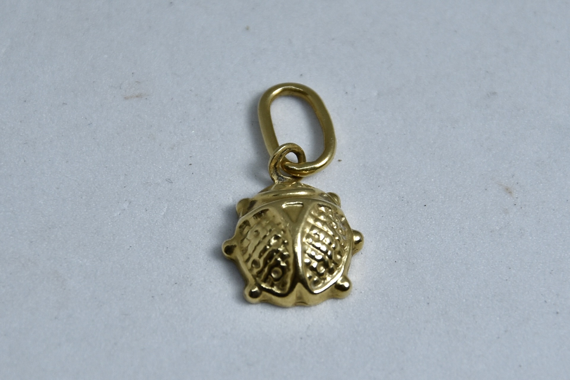 Ciondolo coccinella in oro giallo 750/00. Dimensione 1,00cm (escluso anellino). Peso 1,25g.
