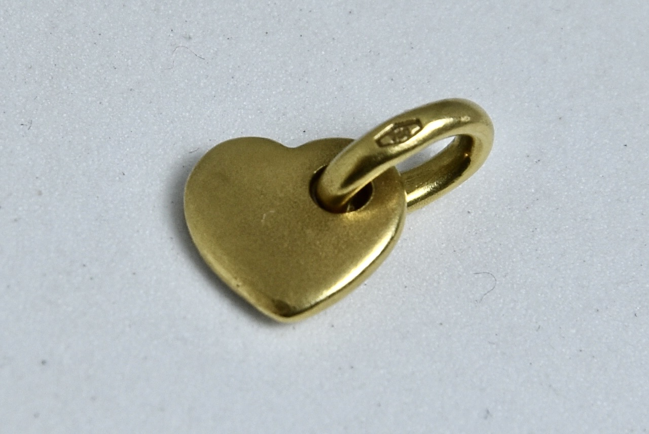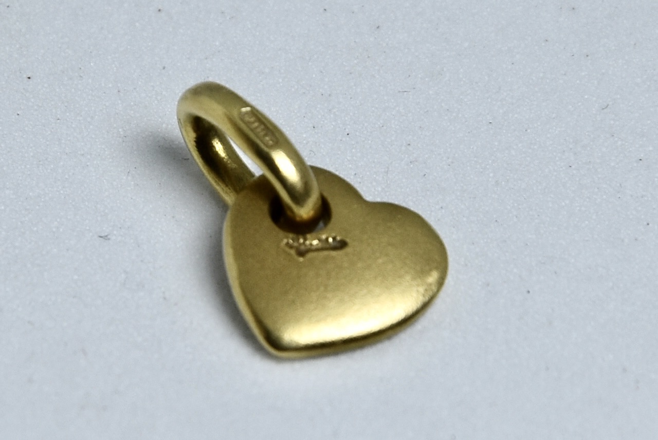 Ciondolo cuore Pomellato in oro giallo 750/00. Dimensione cuore 0,80cm. Peso 1,10g.