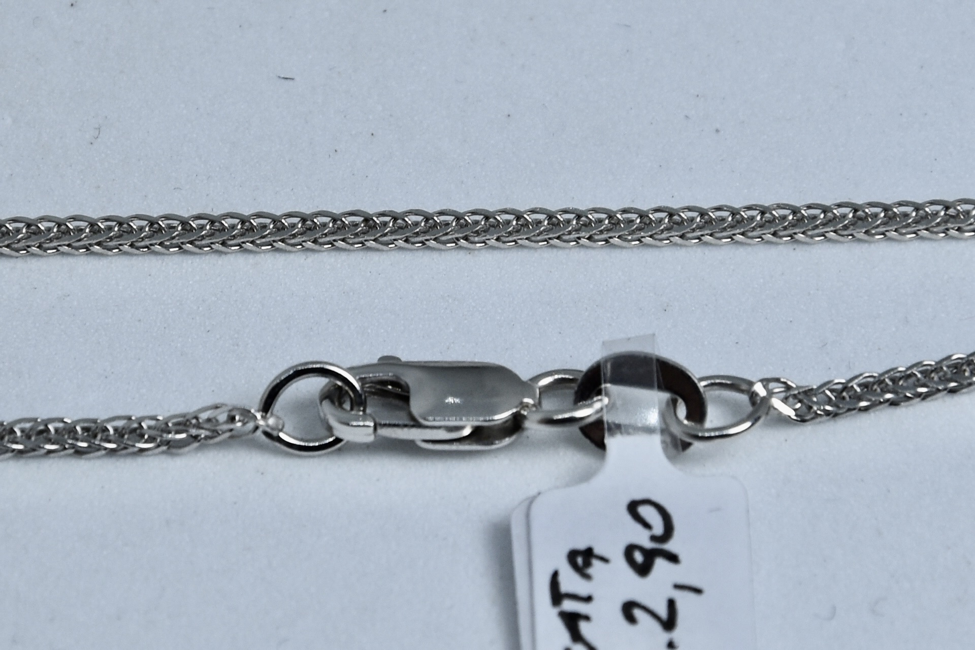 Collana maglia spiga in oro bianco 750/00 della lunghezza di 45cm. Peso 2,90g.
