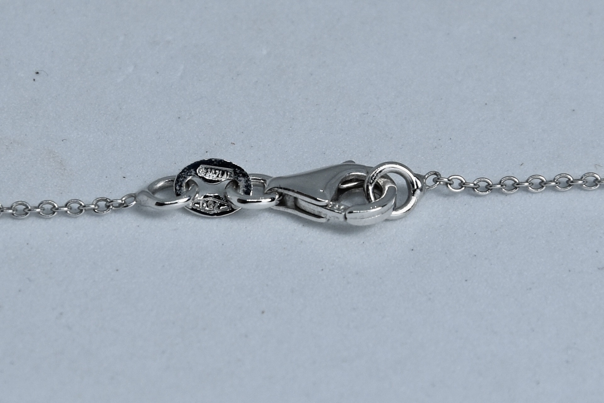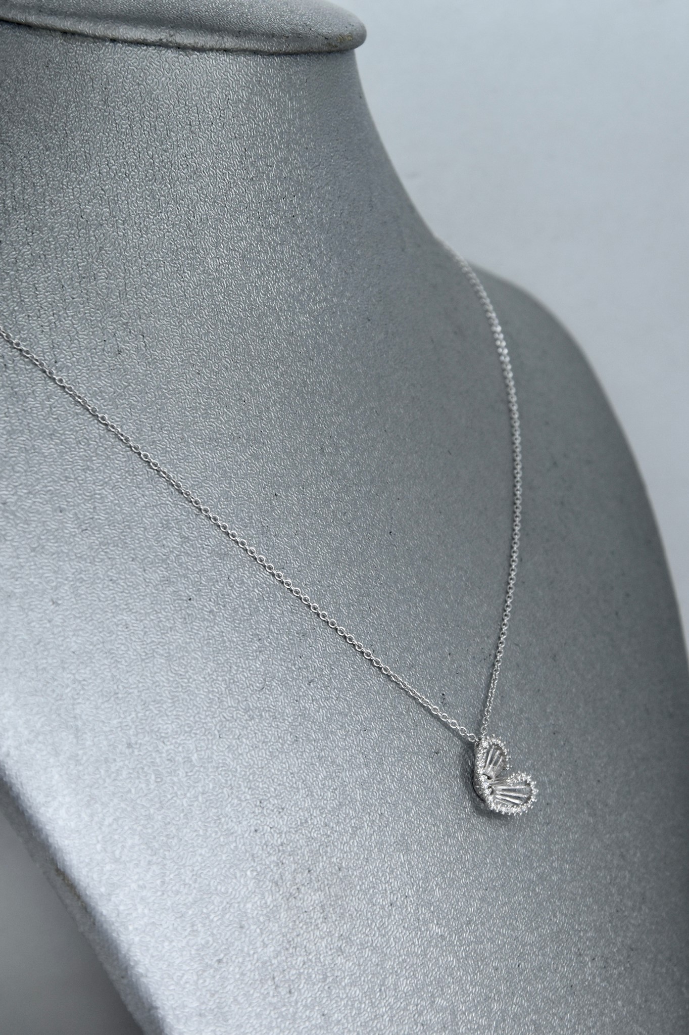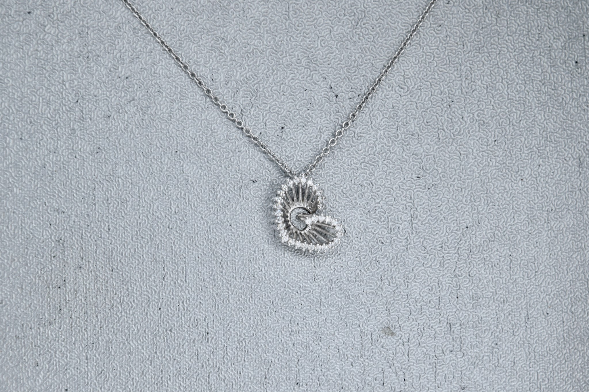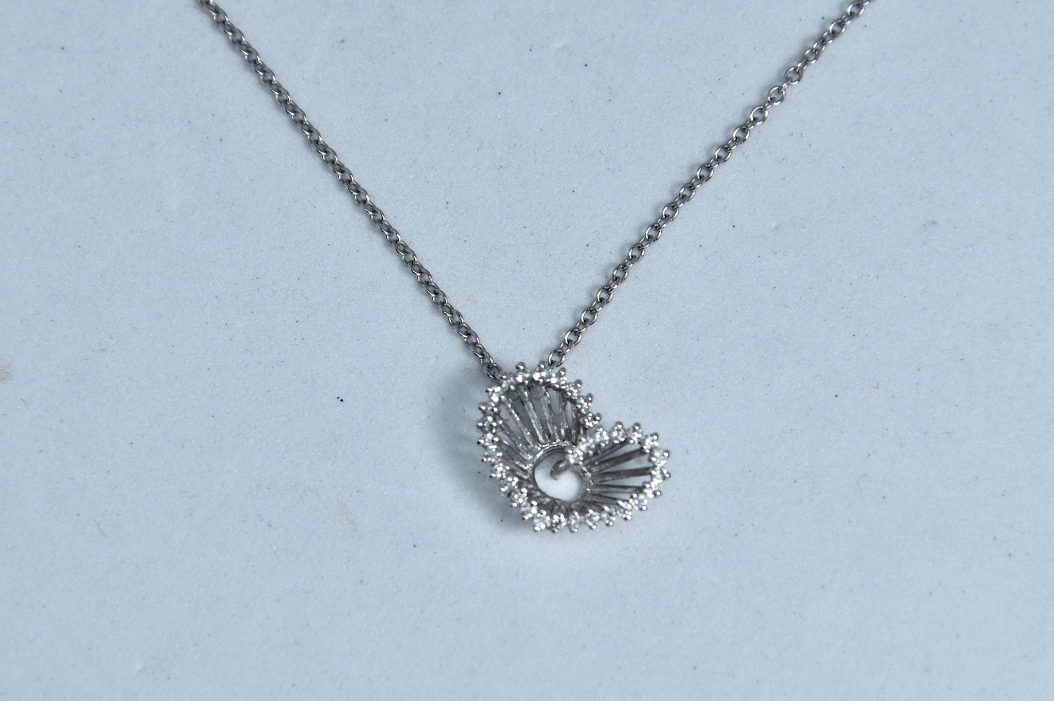 Collana in oro bianco 750/00 con ciondolo cuore con 32 diamantini per un totale di circa 0,16ct. Lunghezza collier 42cm. Peso 2,20g.