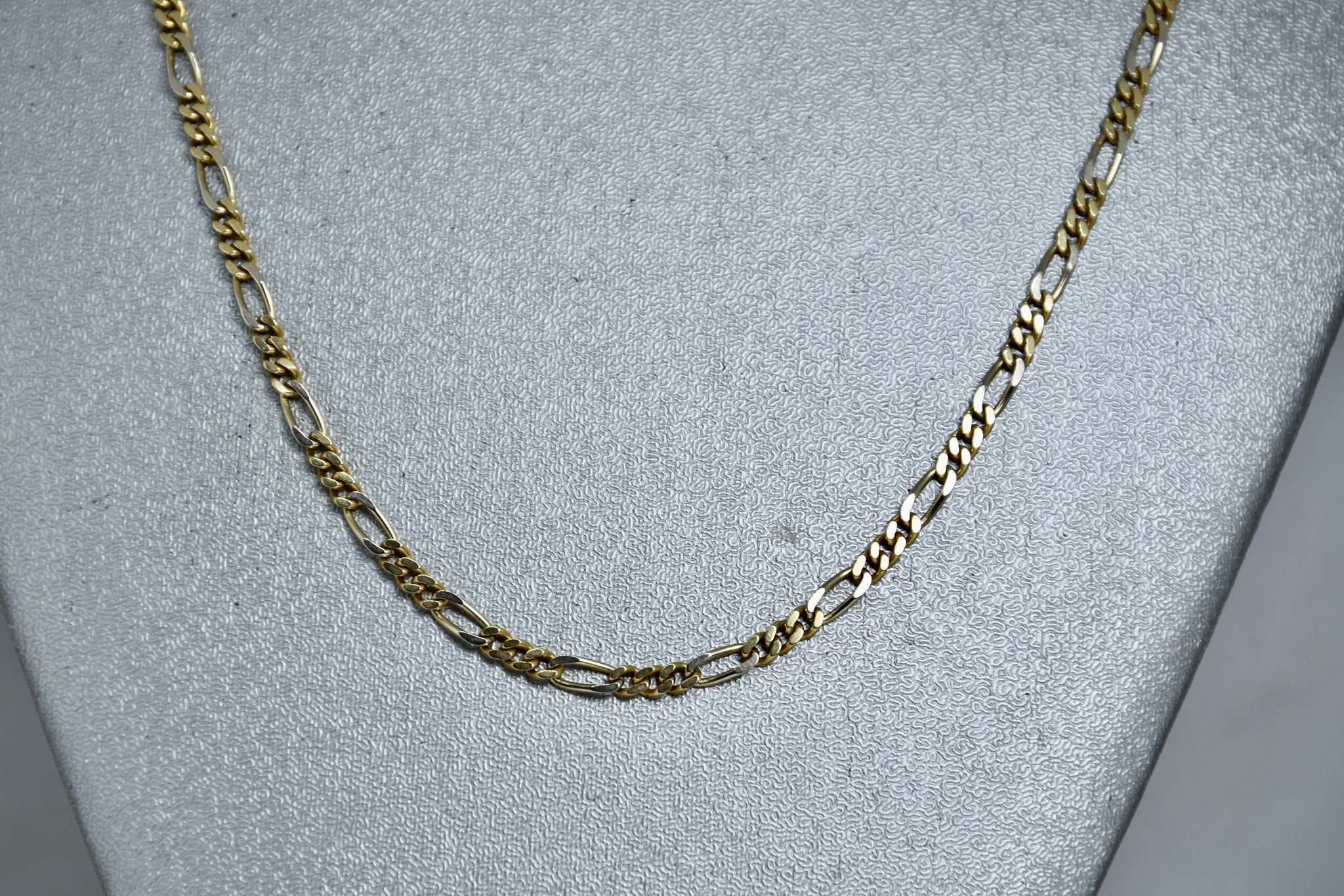 Collana maglia figaro in oro giallo e bianco 750/00 della lunghezza di 46cm. Peso 10,15g.