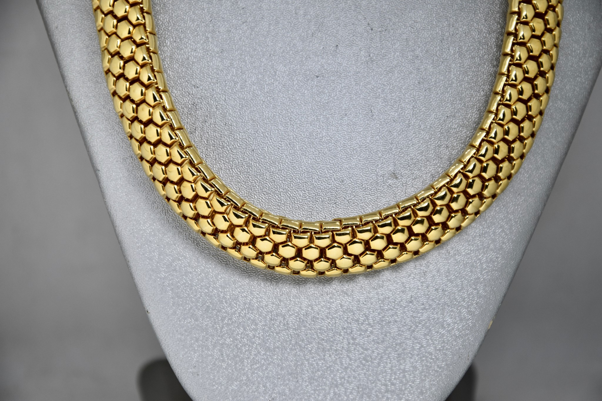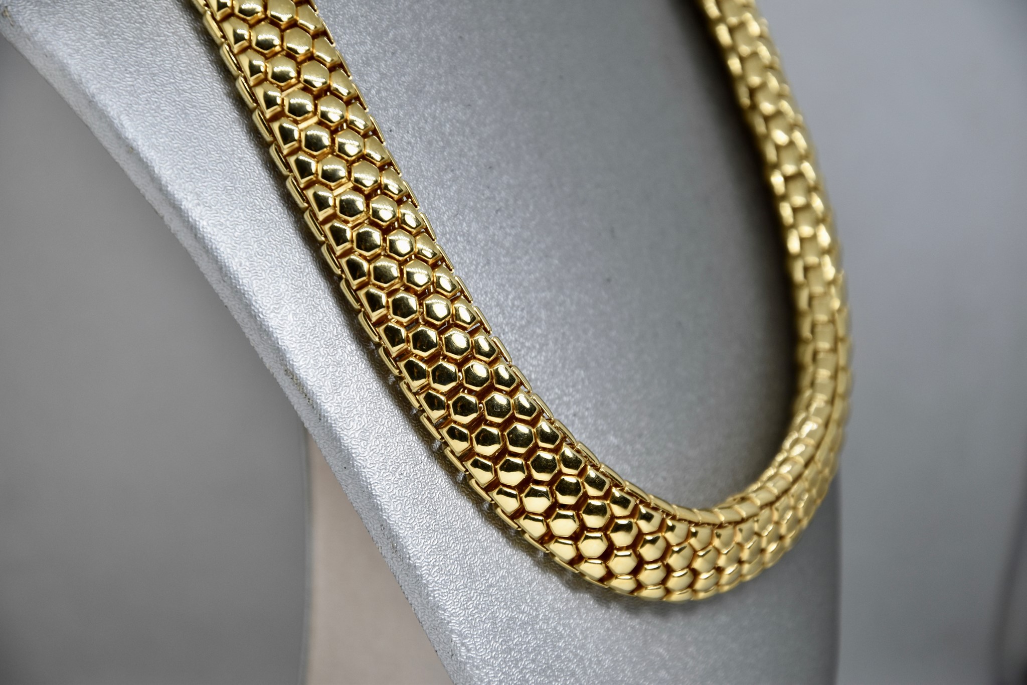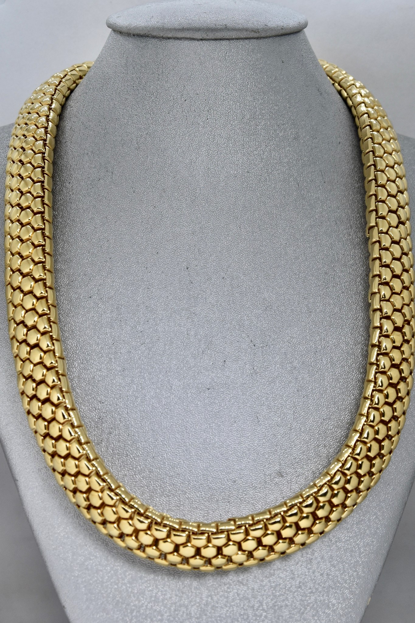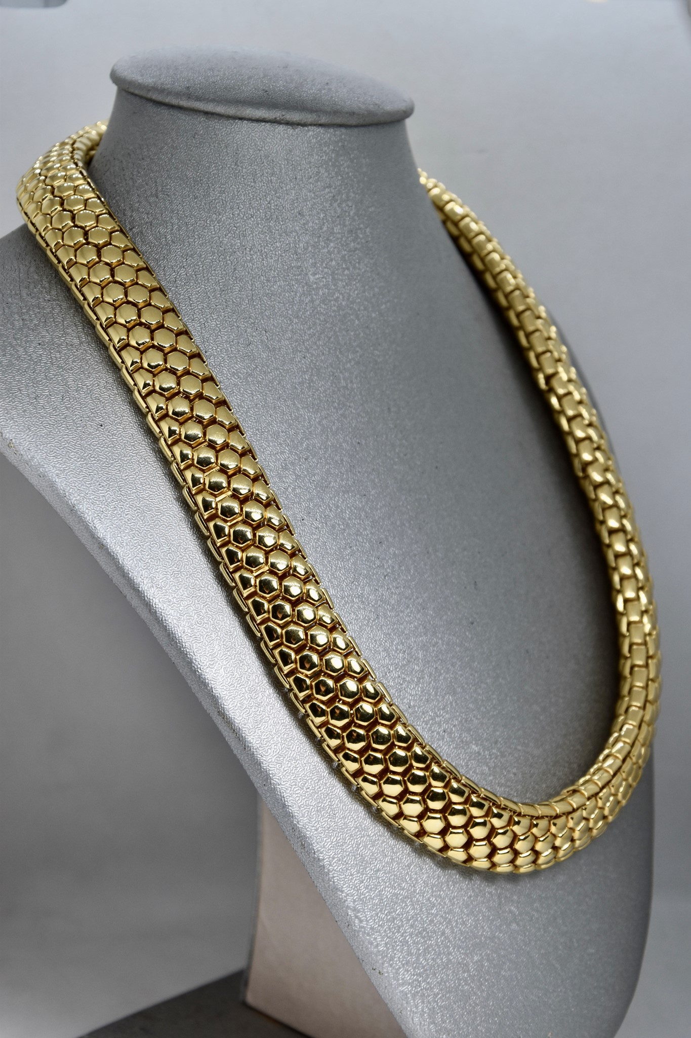 Bellissimo e importante collier Fope in oro giallo 750/00. Lunghezza 45cm, altezza 1,40cm, spessore 0,80cm. Peso 134,35g.