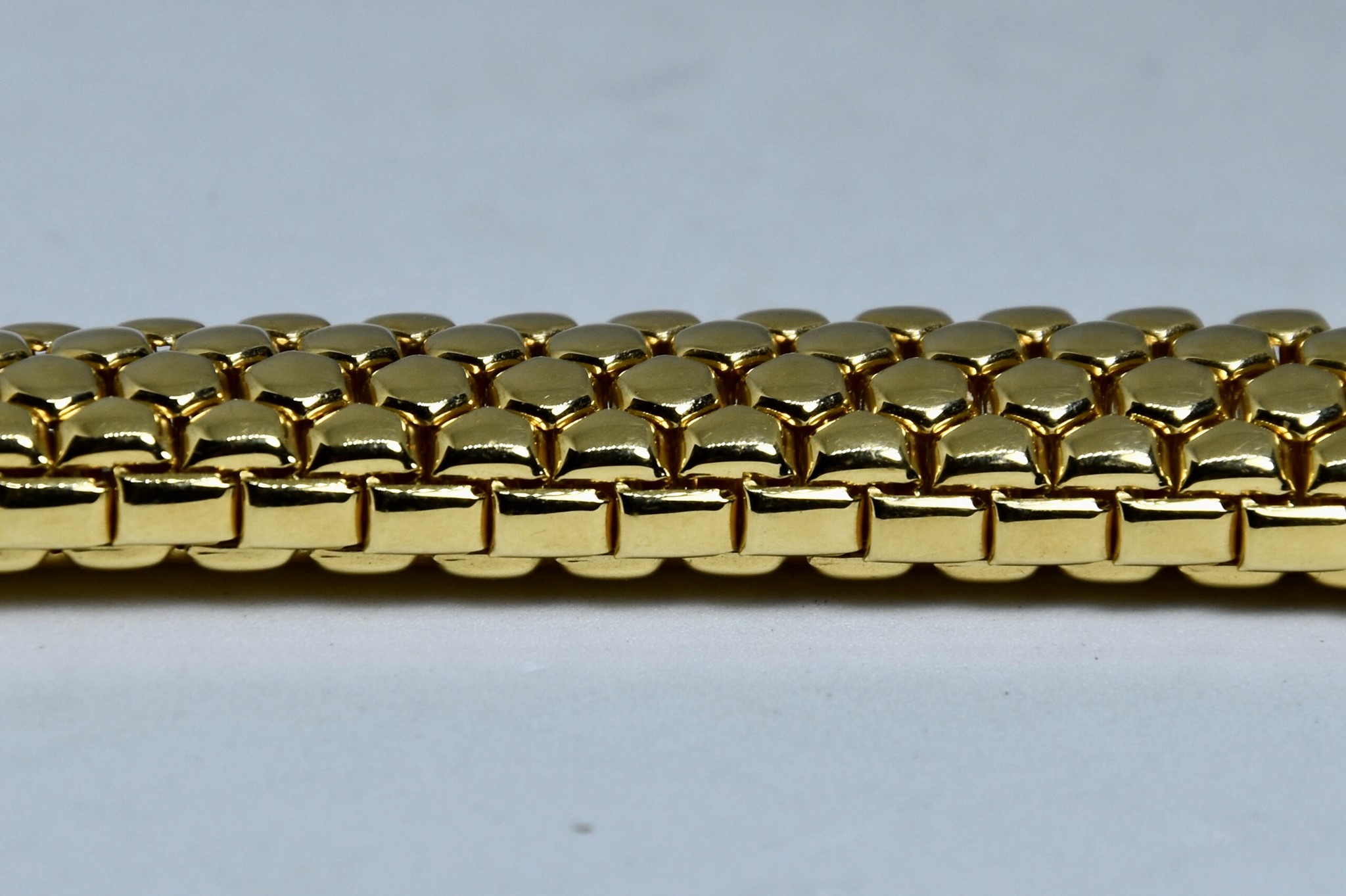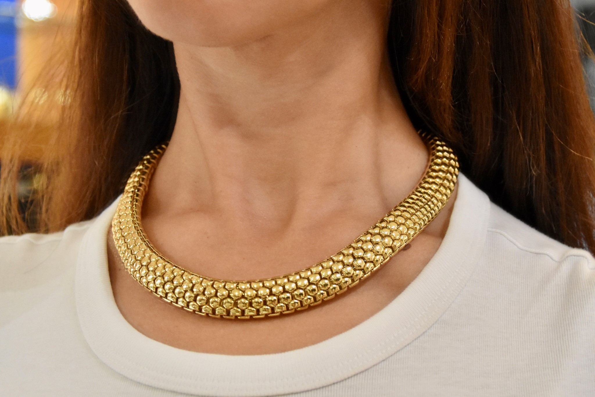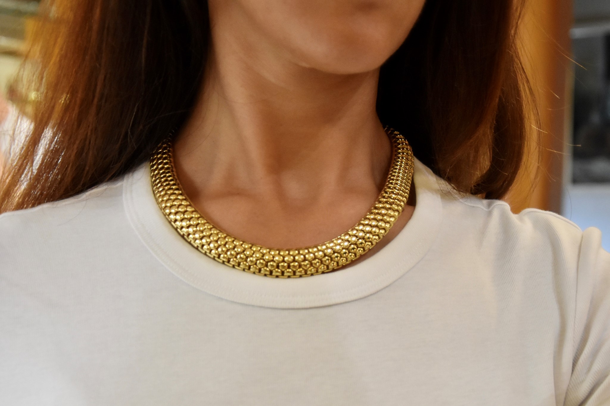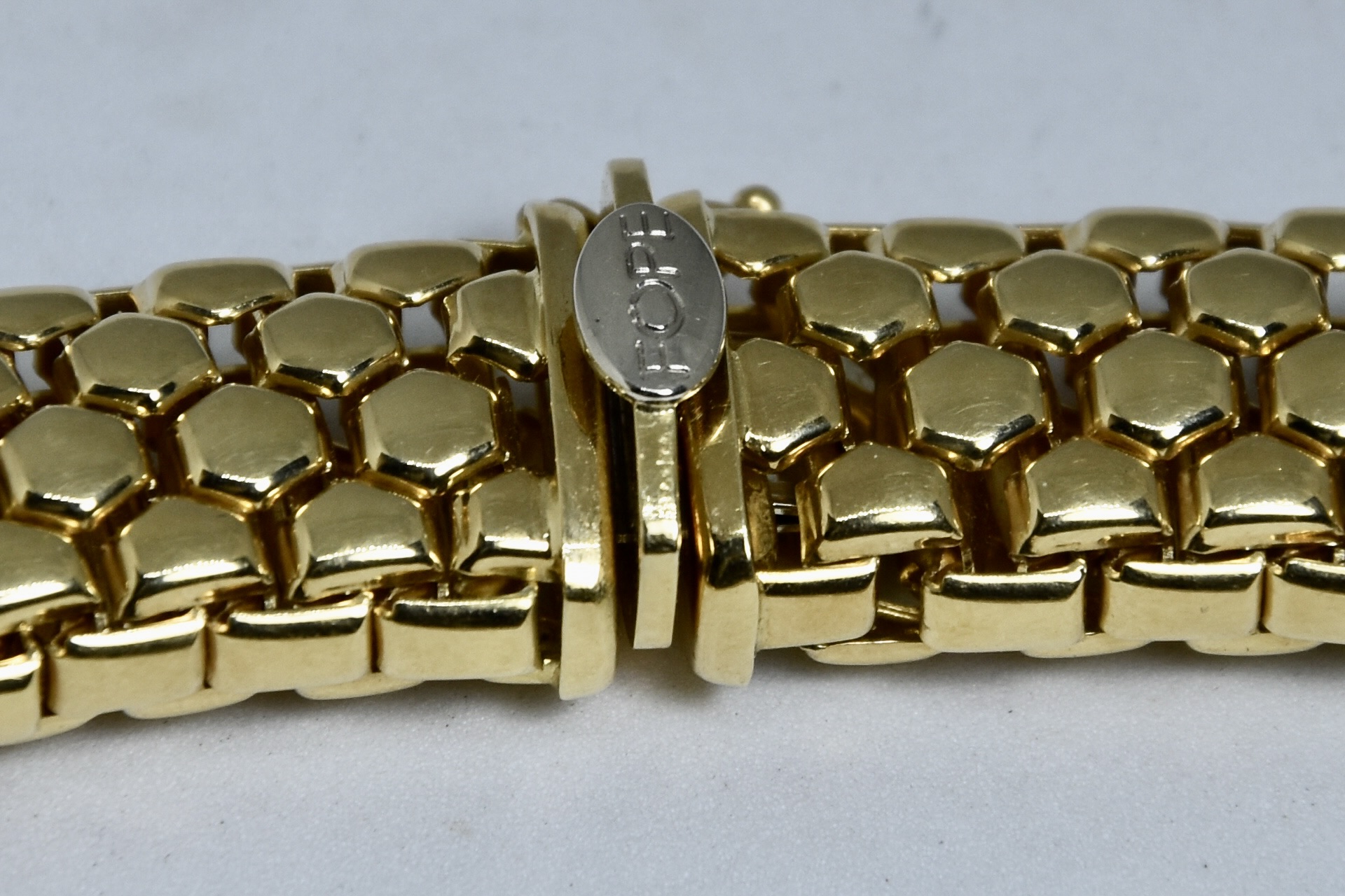 Bellissimo e importante collier Fope in oro giallo 750/00. Lunghezza 45cm, altezza 1,40cm, spessore 0,80cm. Peso 134,35g.