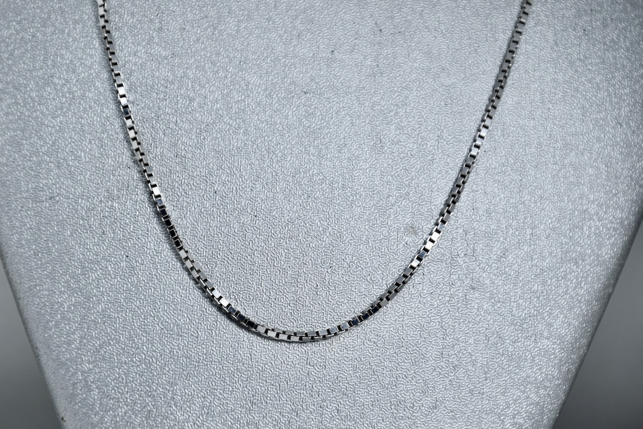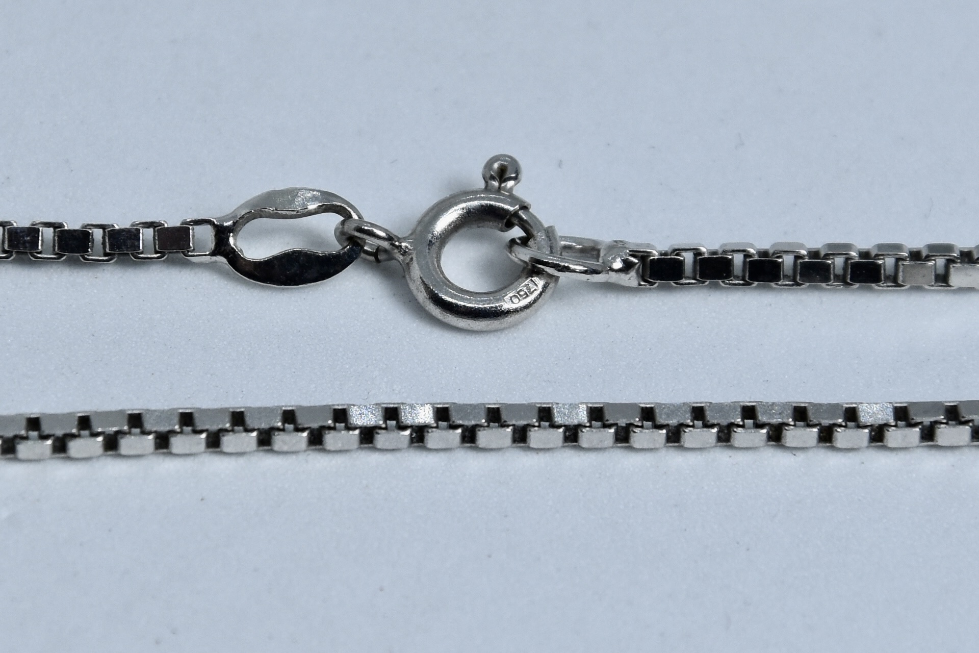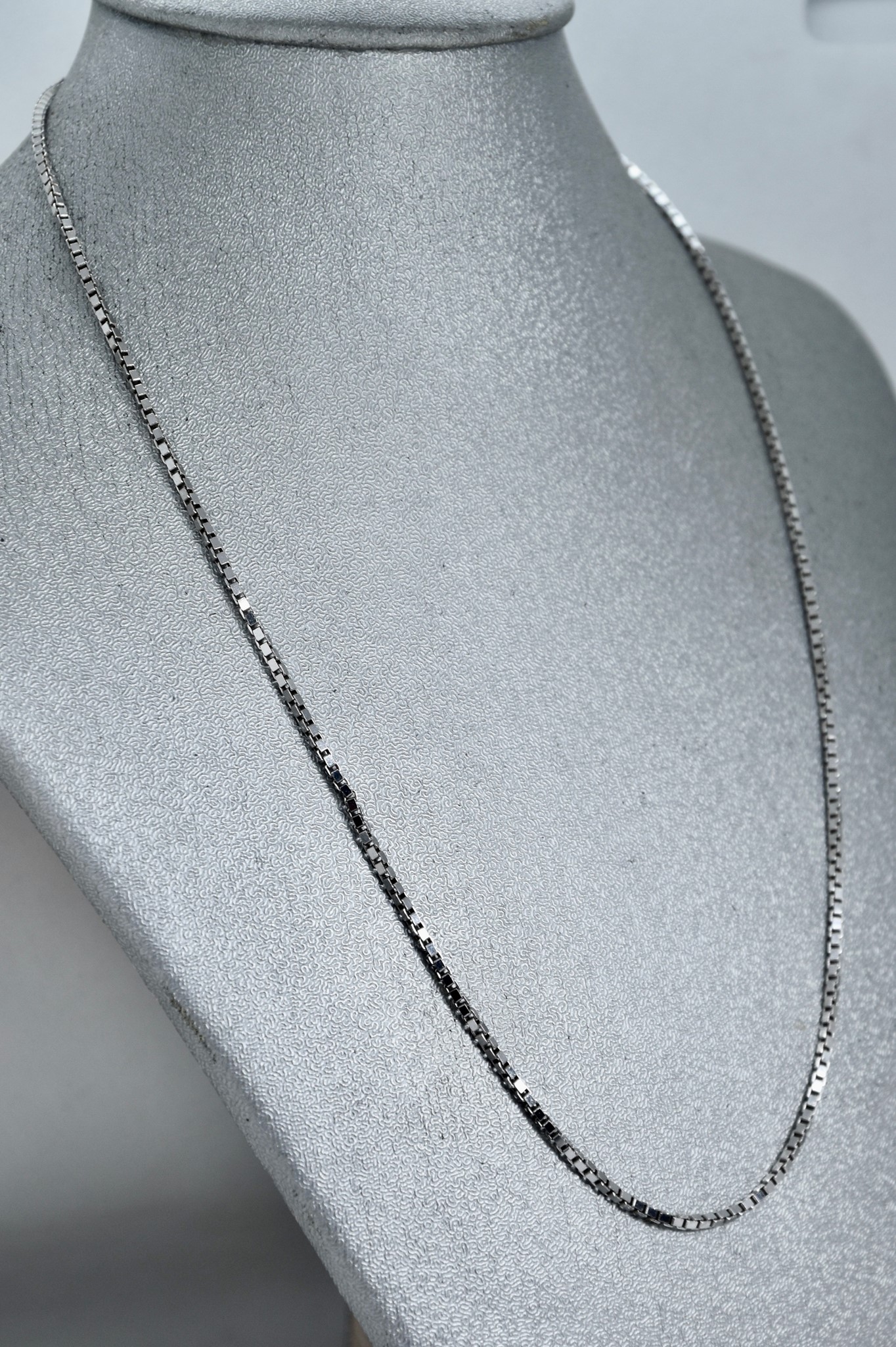 Collana in oro bianco 750/00 a maglia veneziana della lunghezza di 60cm. Peso 9,65g.