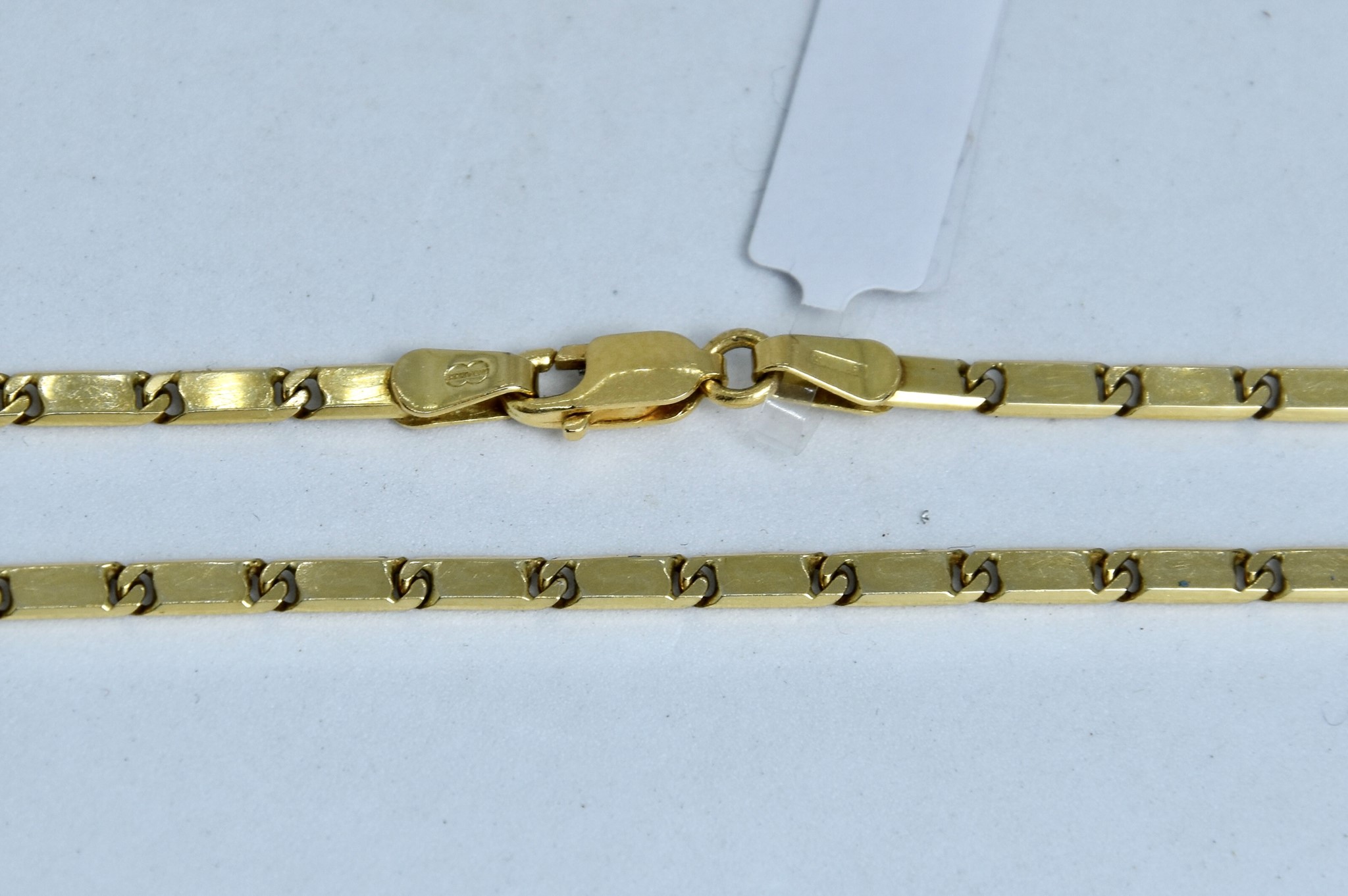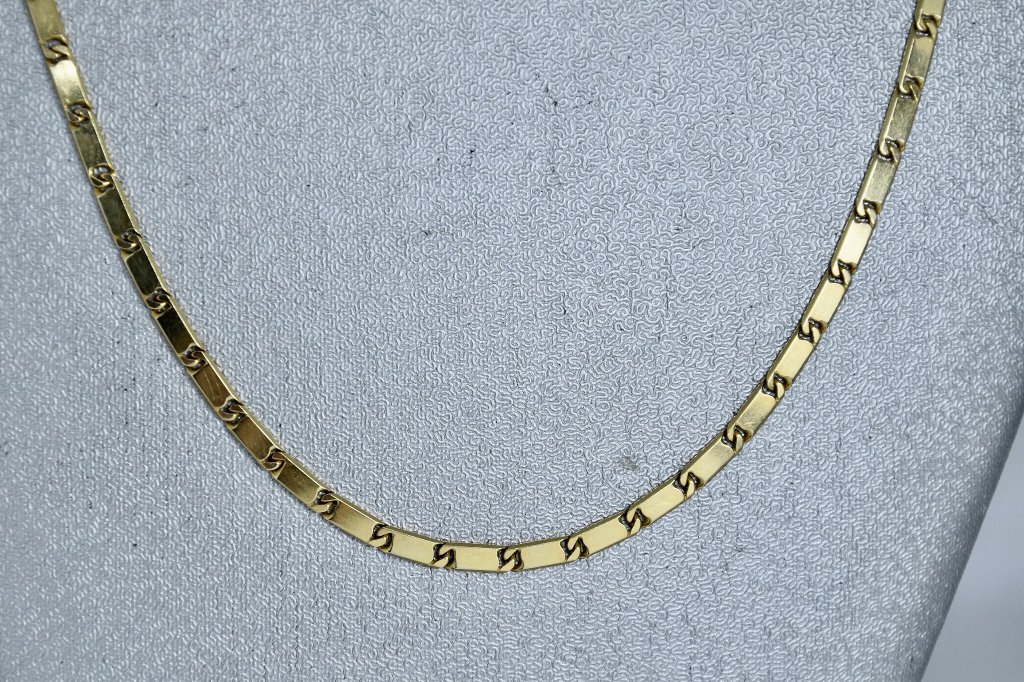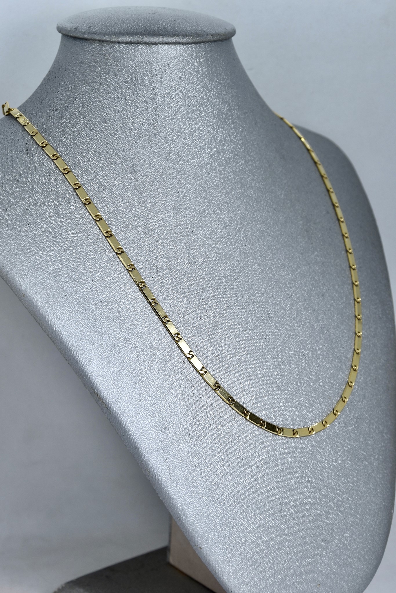 Collana maglia a segmenti piatta in oro giallo 750/00 della lunghezza di 46cm. Peso 13,50g.