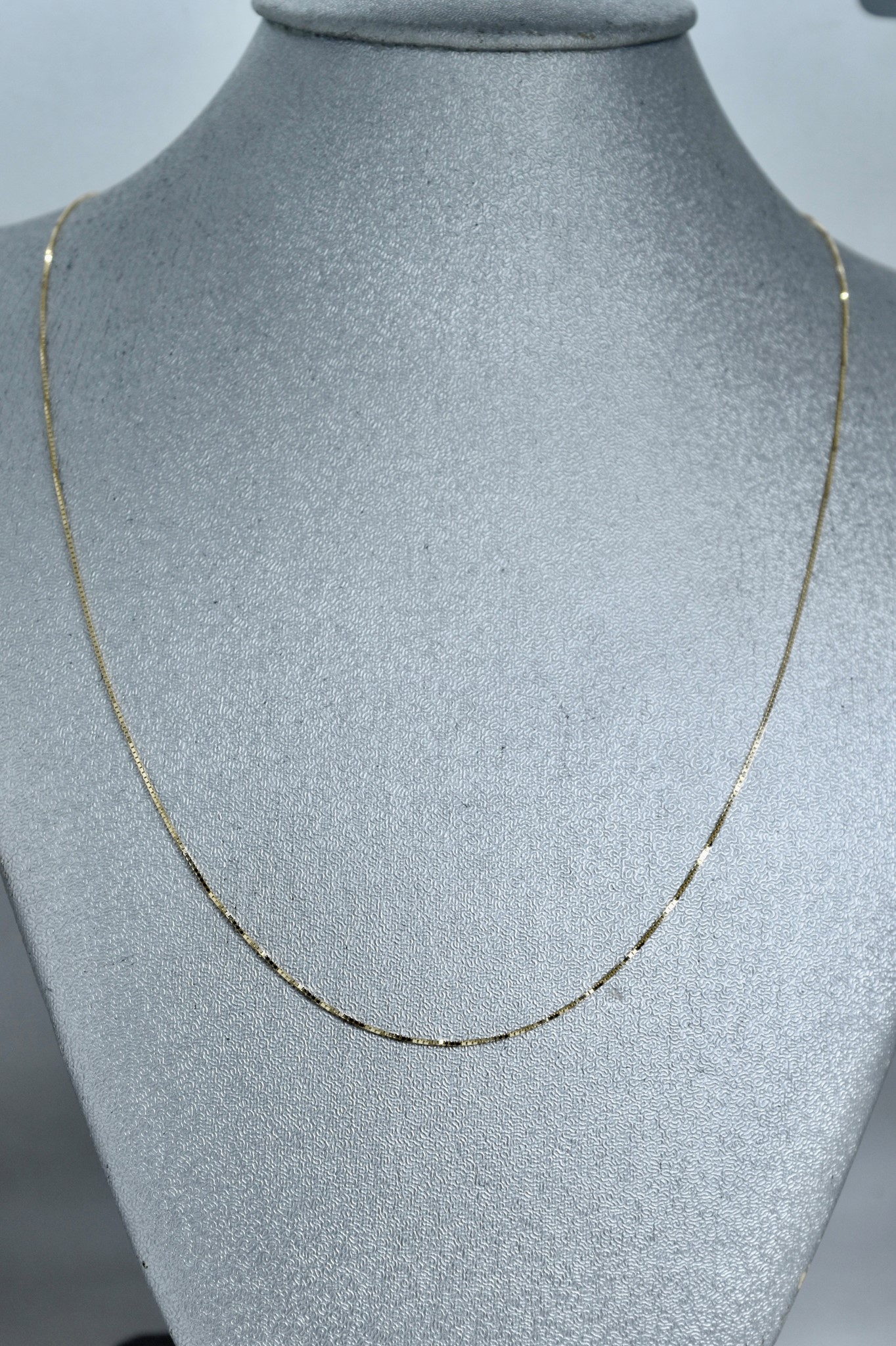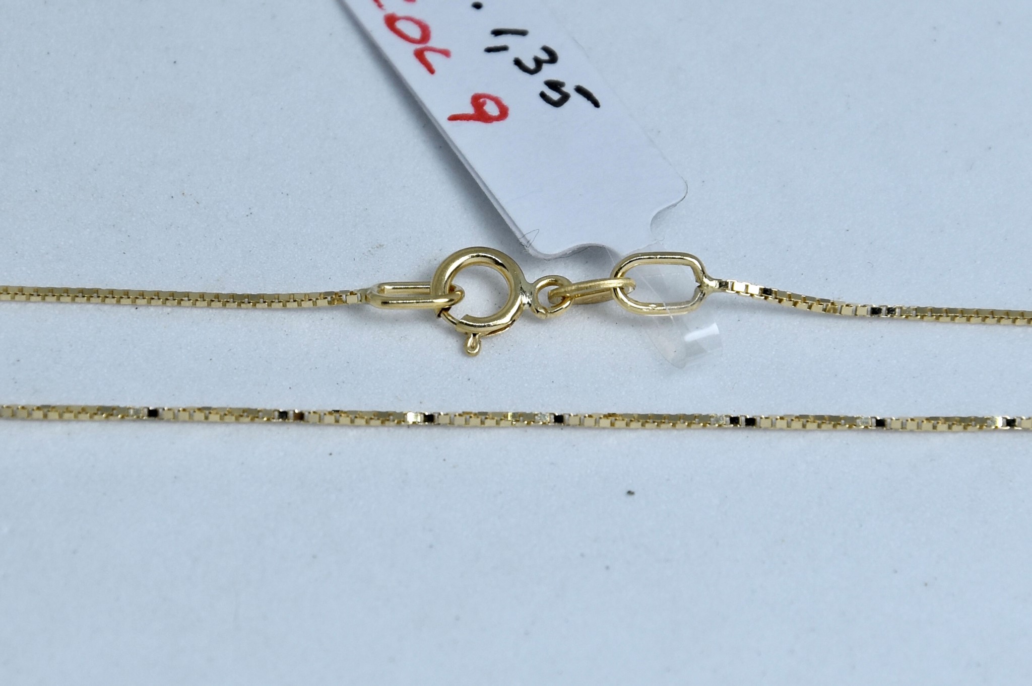 Collana sottile maglia veneziana in oro giallo 750/00 della lunghezza di 45cm. Peso 1,35g.