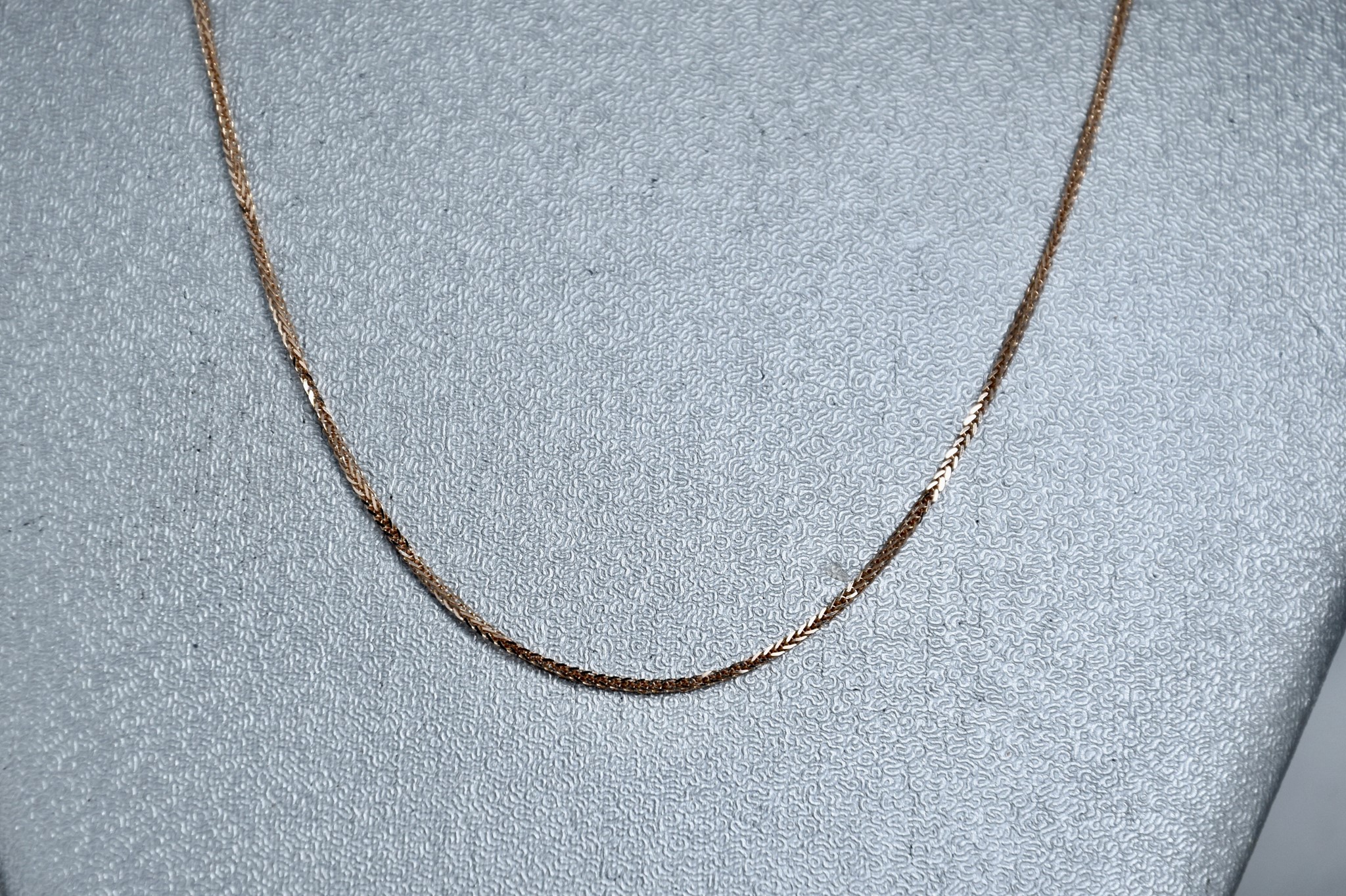 Collana maglia a spiga in oro rosa 750/00 della lunghezza di 45cm. Peso 1,90g.