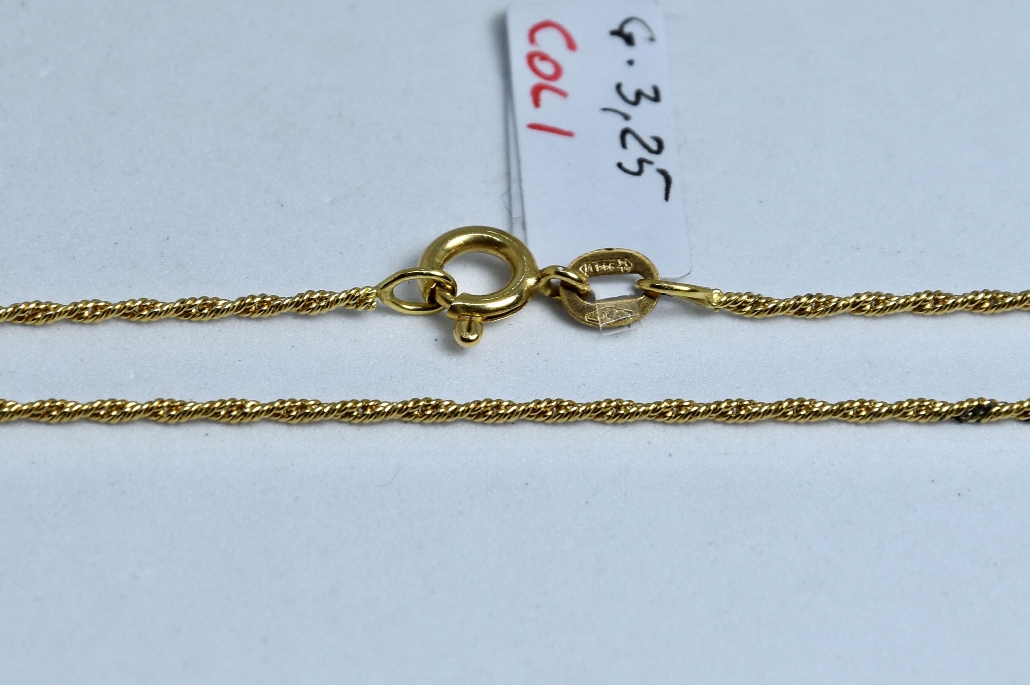Collana sottile maglia torchon in oro giallo 750/00 della lunghezza di 43cm. Peso 3,255g.