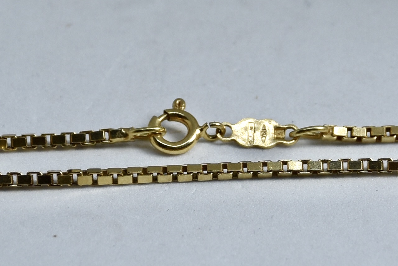 Collana maglia veneziana grossa in oro giallo 750/00 della lunghezza di 50cm. Peso 11,55g.