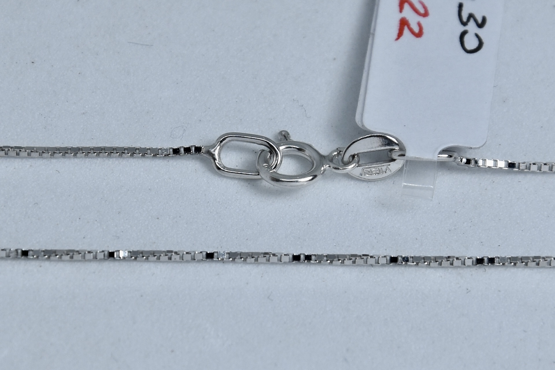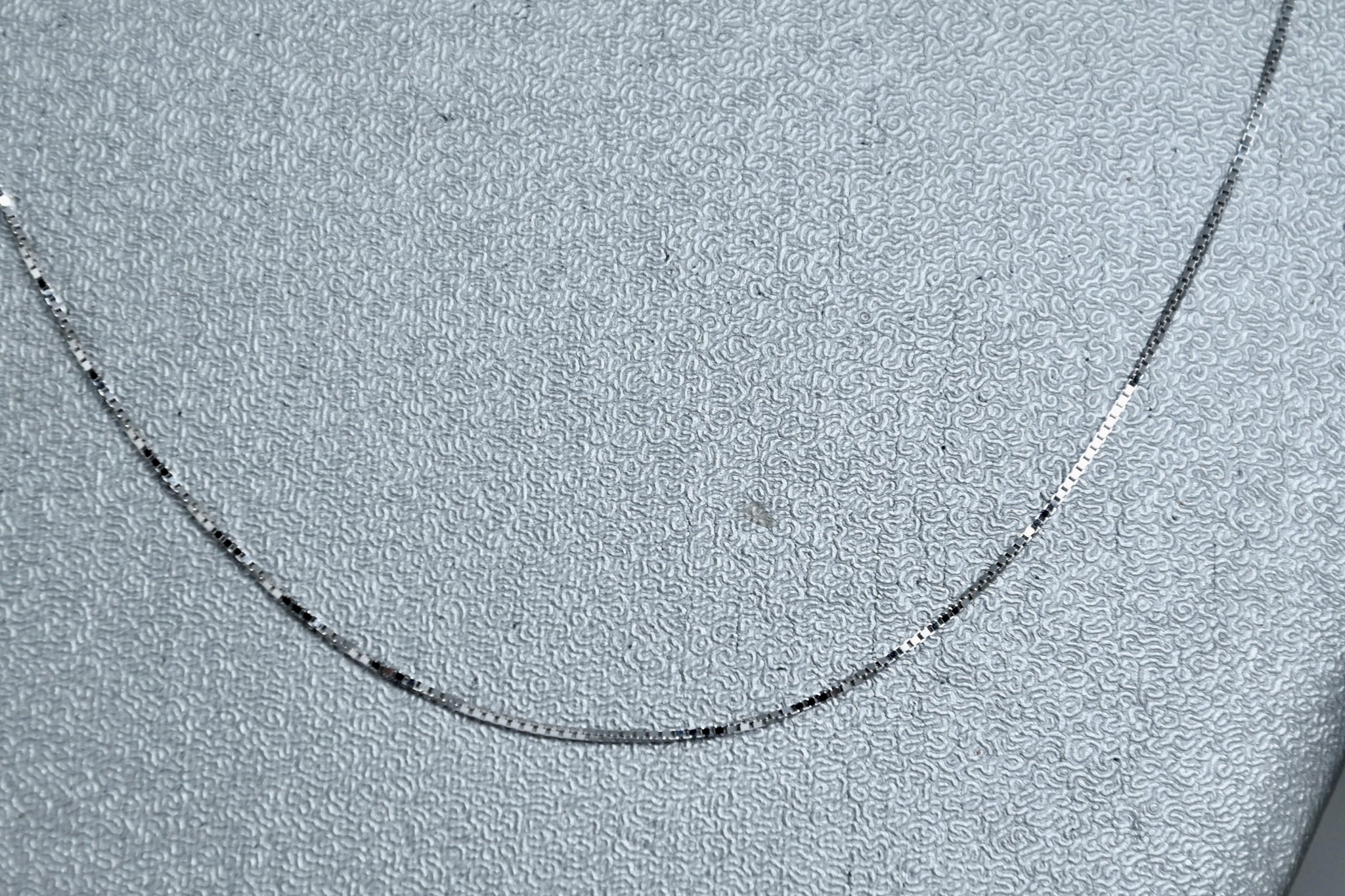 Collana maglia veneziana sottile in oro bianco 750/00 della lunghezza di 45cm. Peso 1,30g.