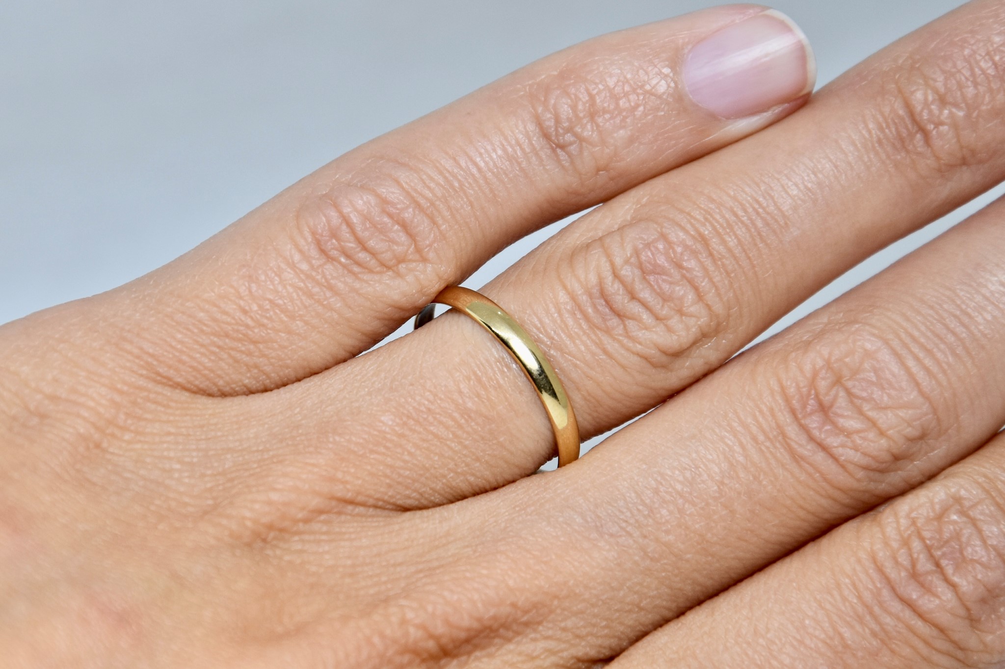 Ferma anello in oro giallo 750/00 dello spessore di 0,20cm. Peso anello 1,15g.