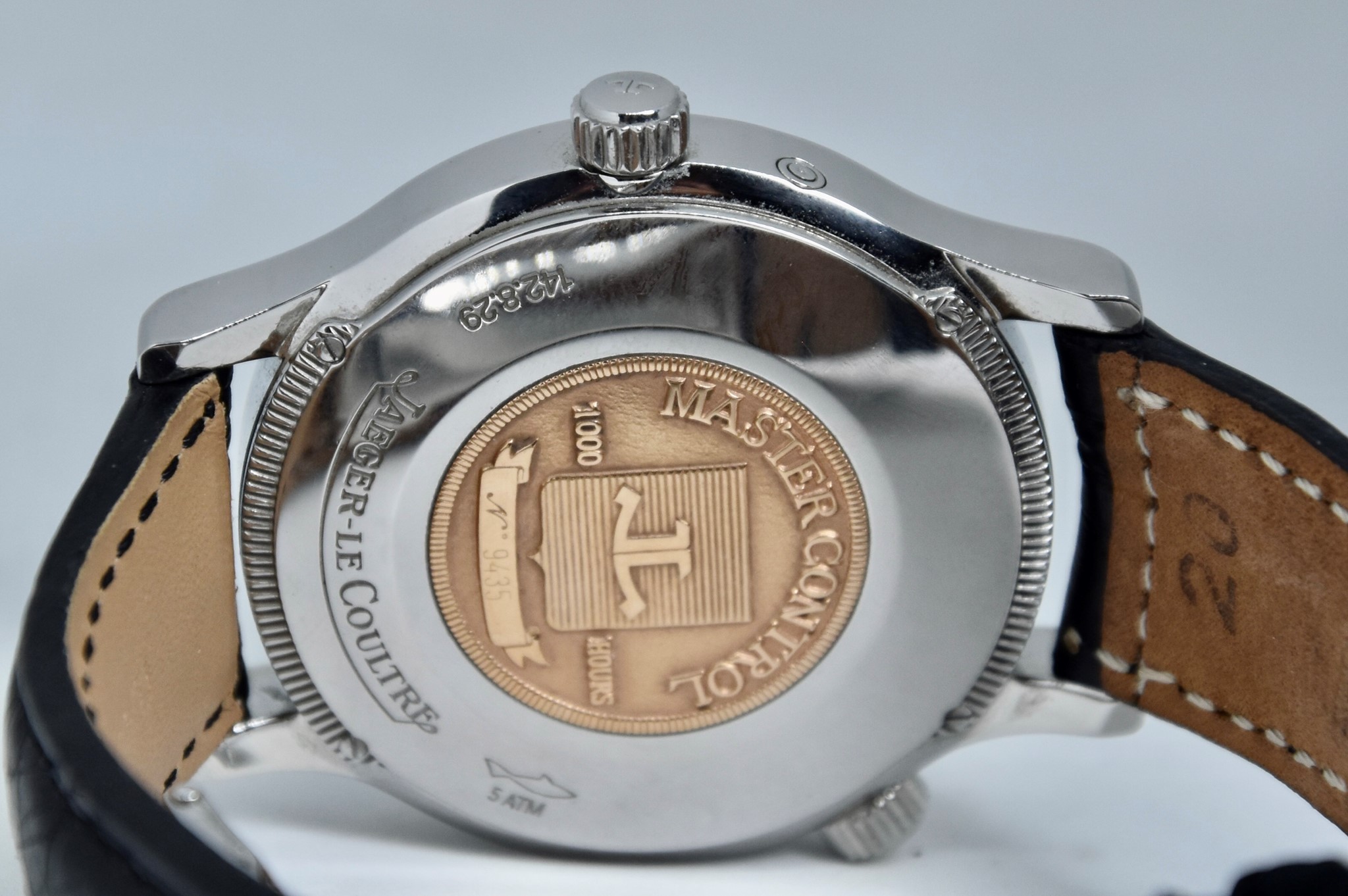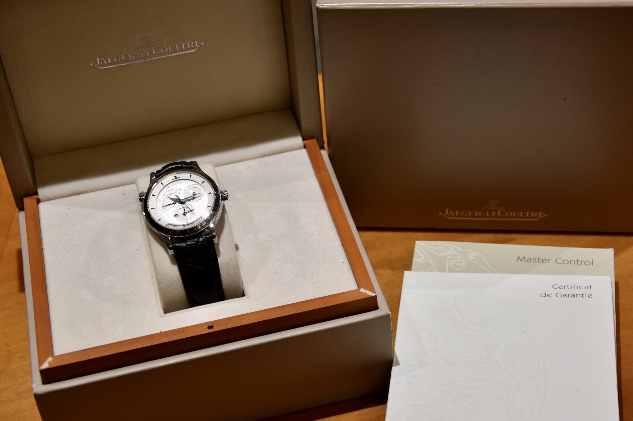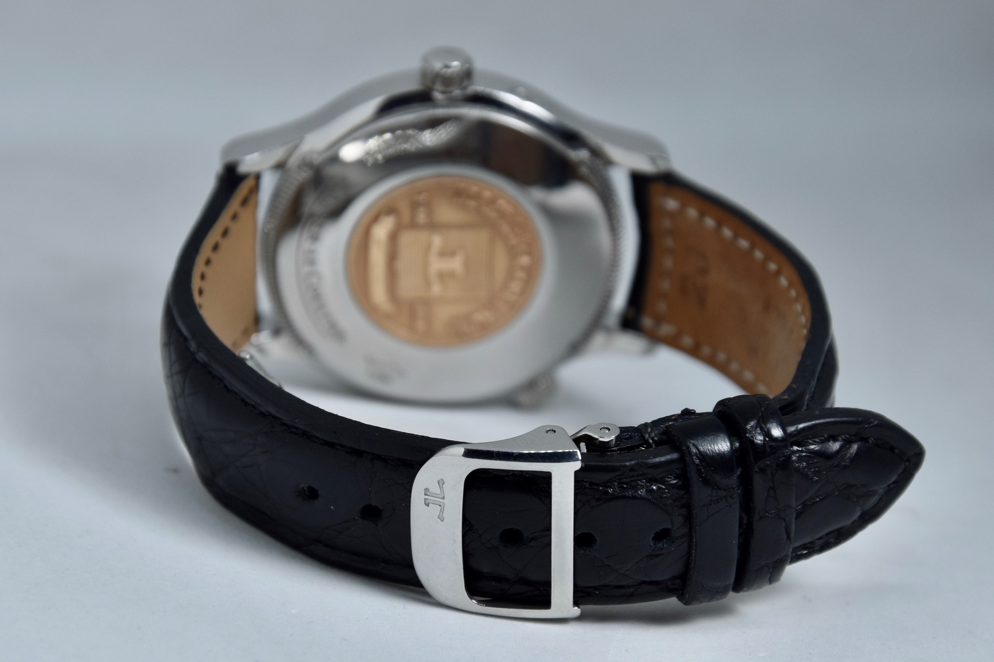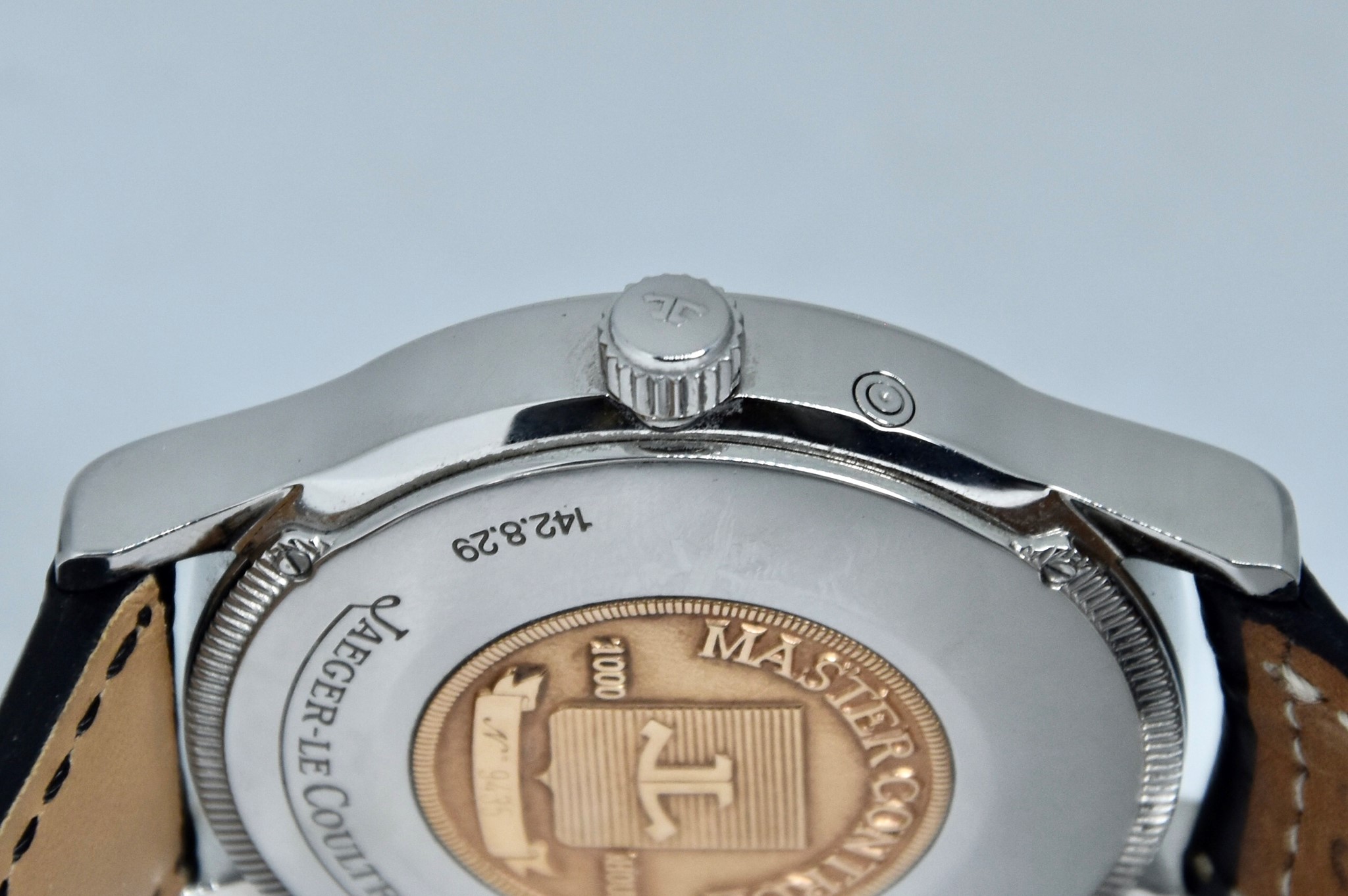 Jaeger-LeCoultre Master Geographic ref. 142.8.29 del 2006. Orologio in acciaio in ottime condizioni. Quadrante Argento. Indicatore della data. Cassa di 38mm. Lunetta in acciaio liscio. Movimento a carica automatica 939. Funzione GMT e riserva di carica. Vetro zaffiro. Deployante originale in acciaio. Completo di scatola e garanzia originale.