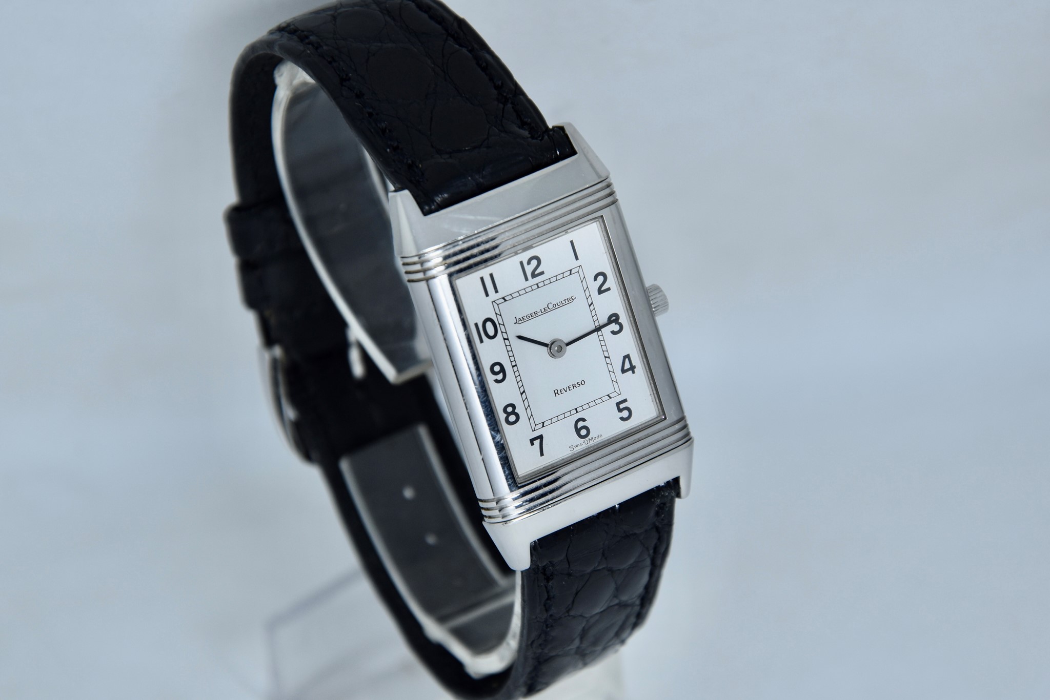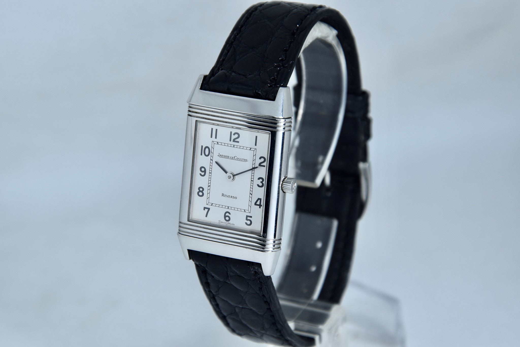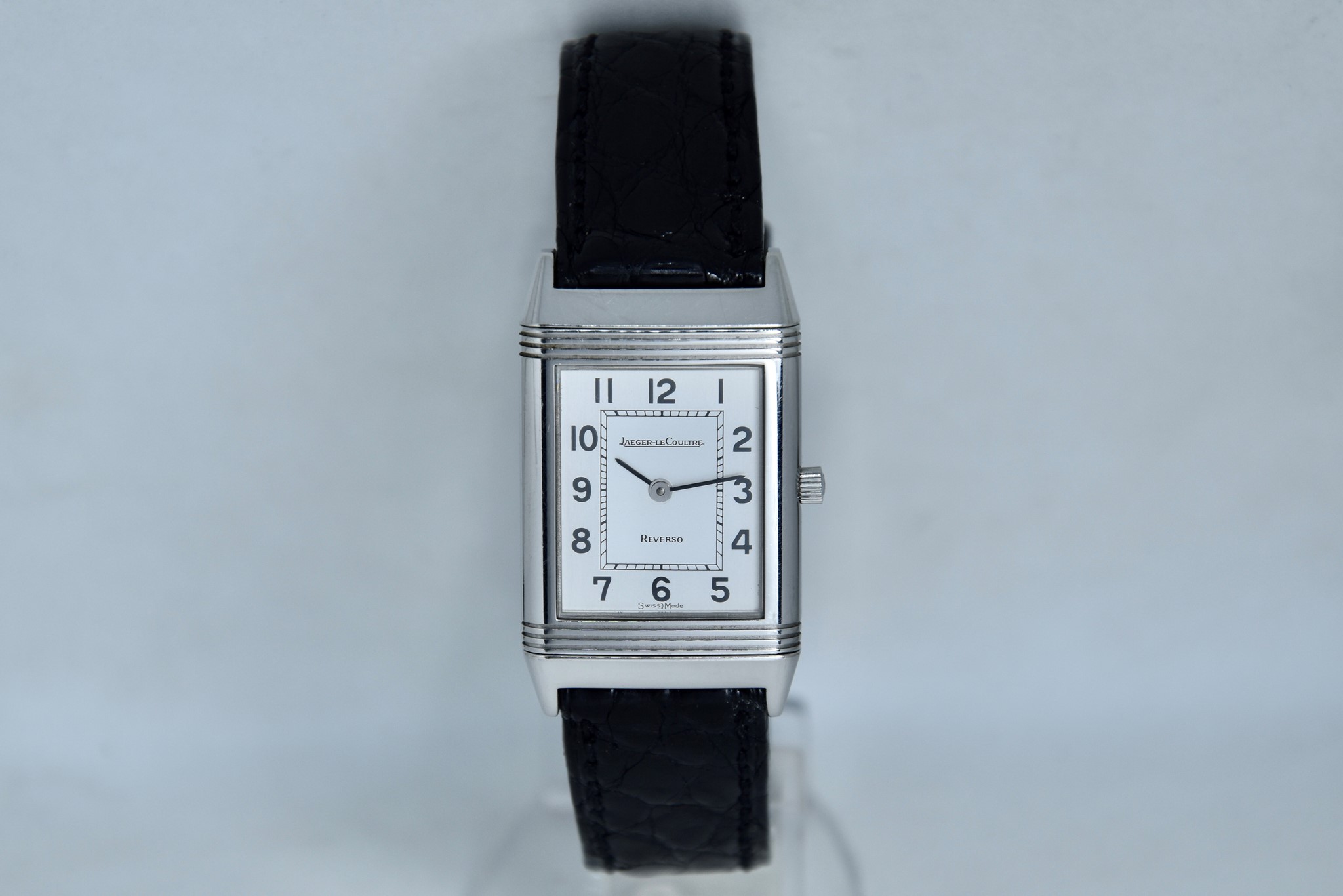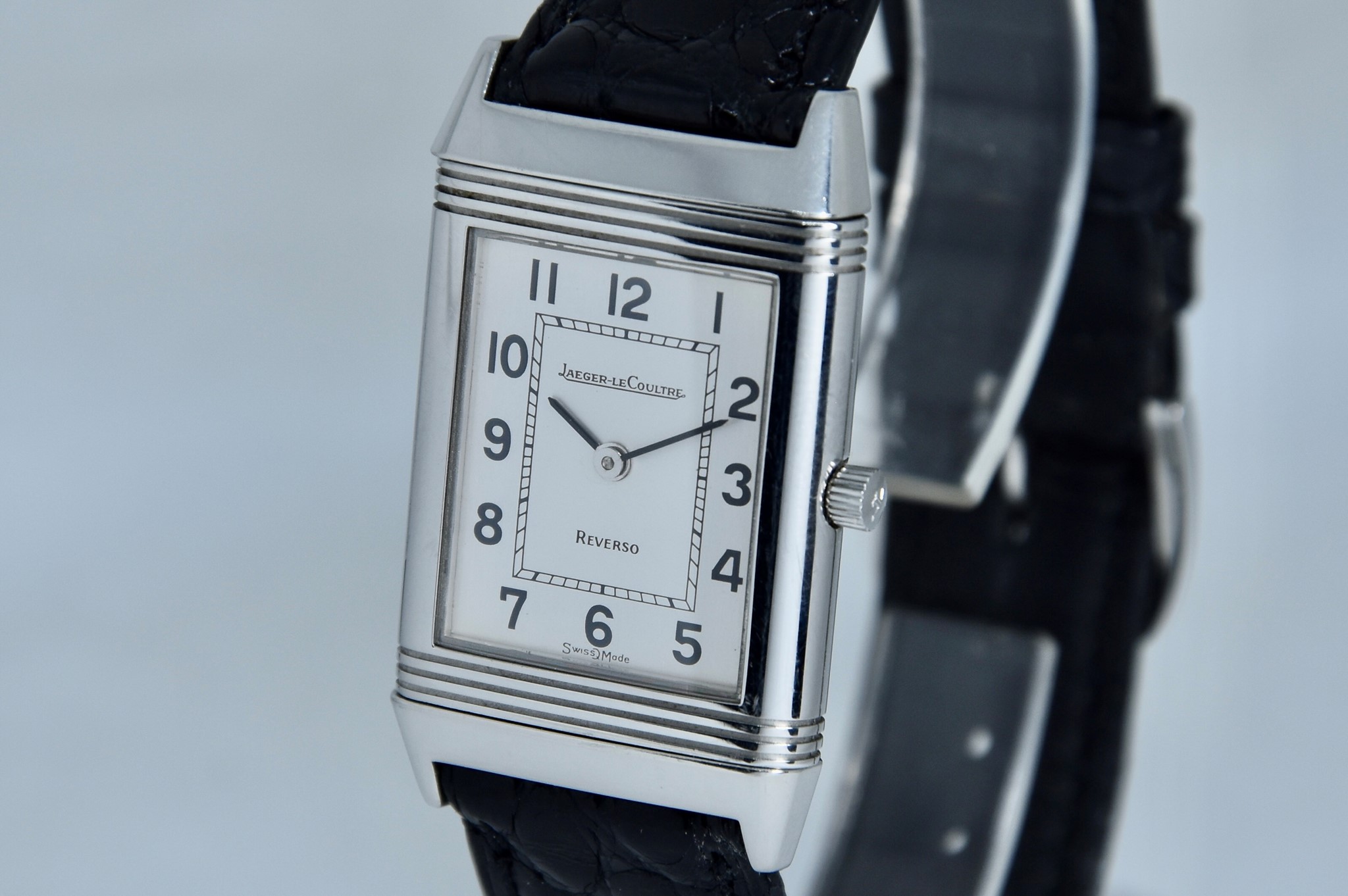 Jaeger-LeCoultre Reverso ref. 140.250.8. Orologio in acciaio in buone condizioni. Quadrante Argento Bitono. Cassa di 23x38mm. Lunetta in acciaio liscio. Movimento al quarzo. Vetro zaffiro. Ardiglione originale in acciaio. Possibilità di scelta di cinturini di vari colori e materiale. Con nostra scatola.