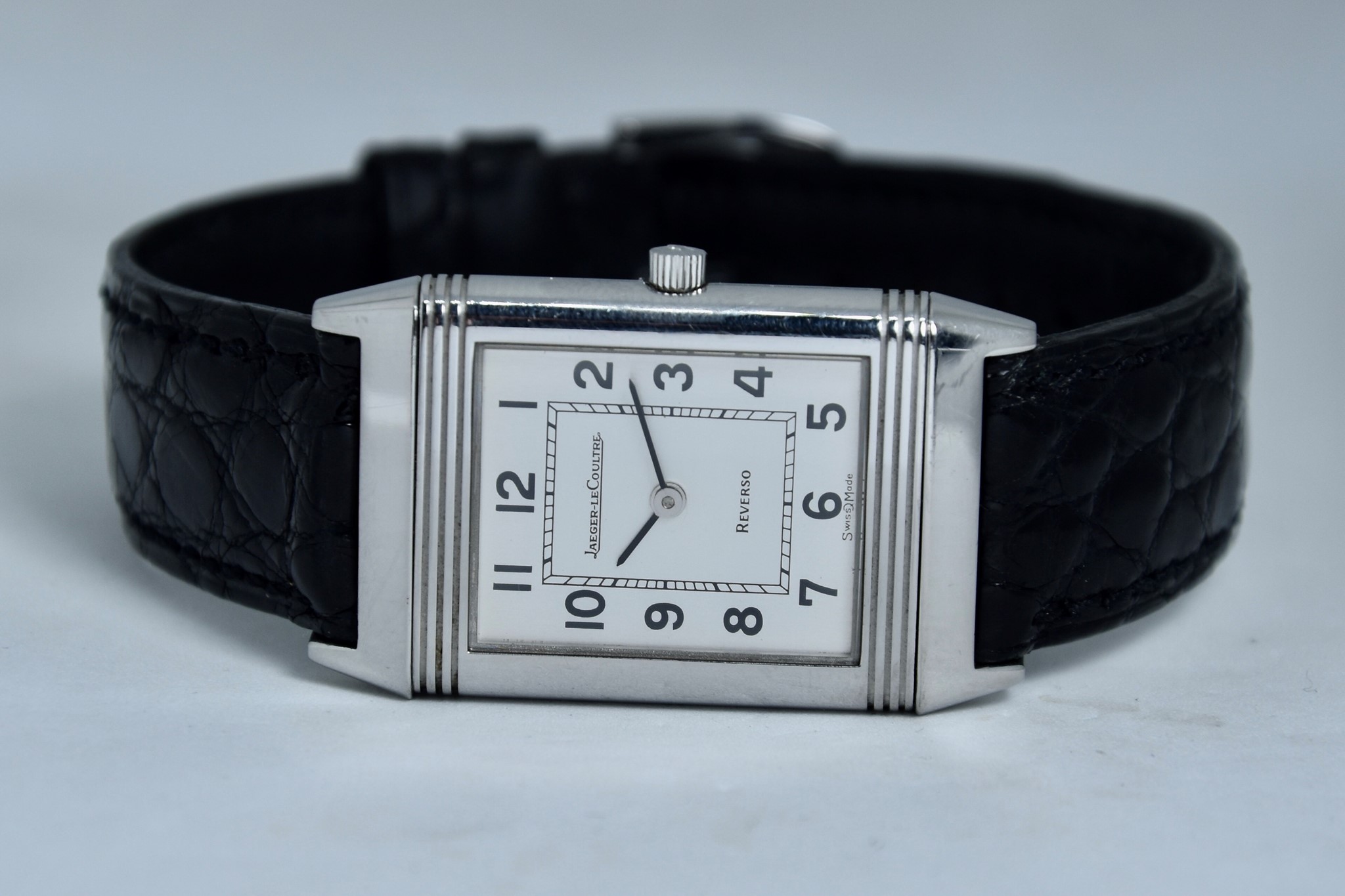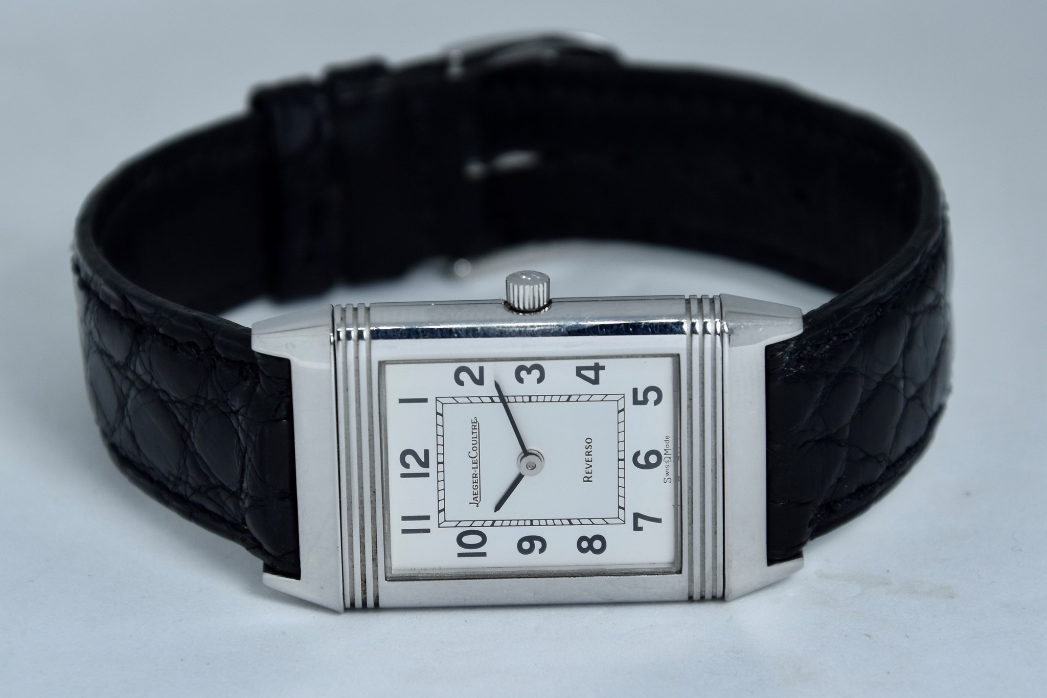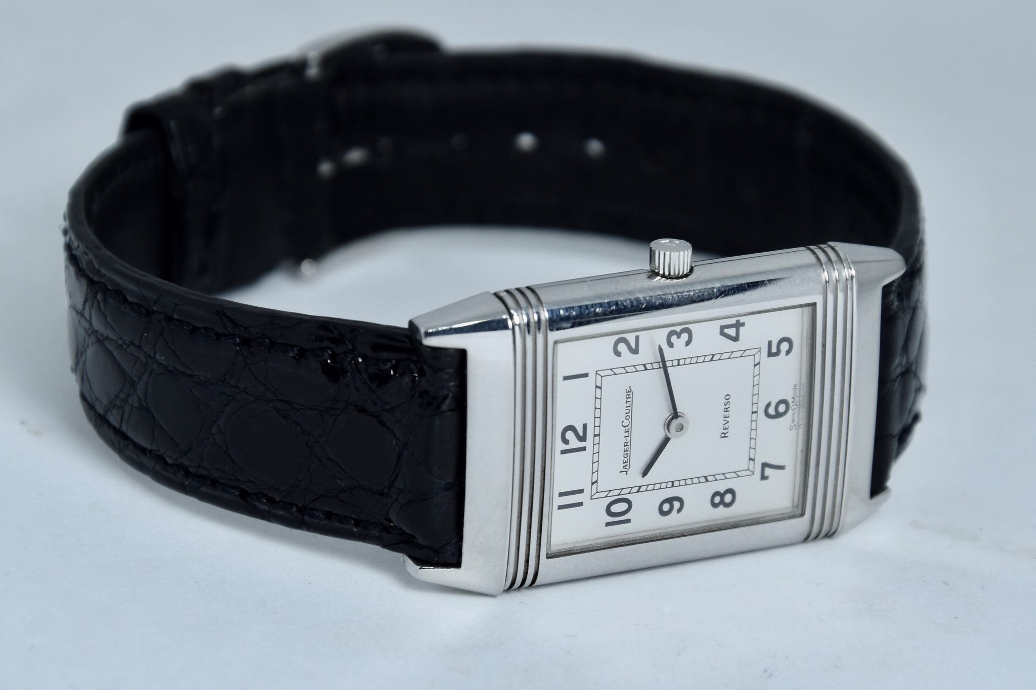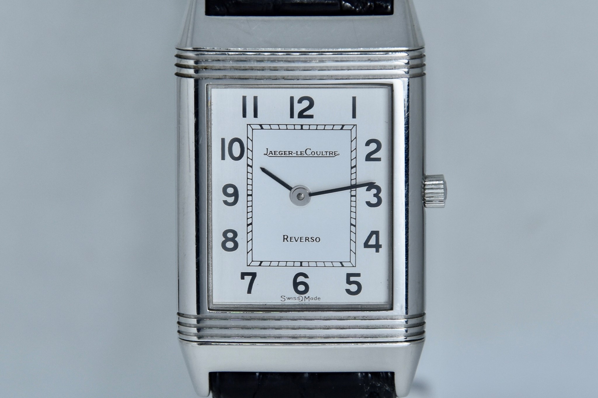Jaeger-LeCoultre Reverso ref. 140.250.8. Orologio in acciaio in buone condizioni. Quadrante Argento Bitono. Cassa di 23x38mm. Lunetta in acciaio liscio. Movimento al quarzo. Vetro zaffiro. Ardiglione originale in acciaio. Possibilità di scelta di cinturini di vari colori e materiale. Con nostra scatola.