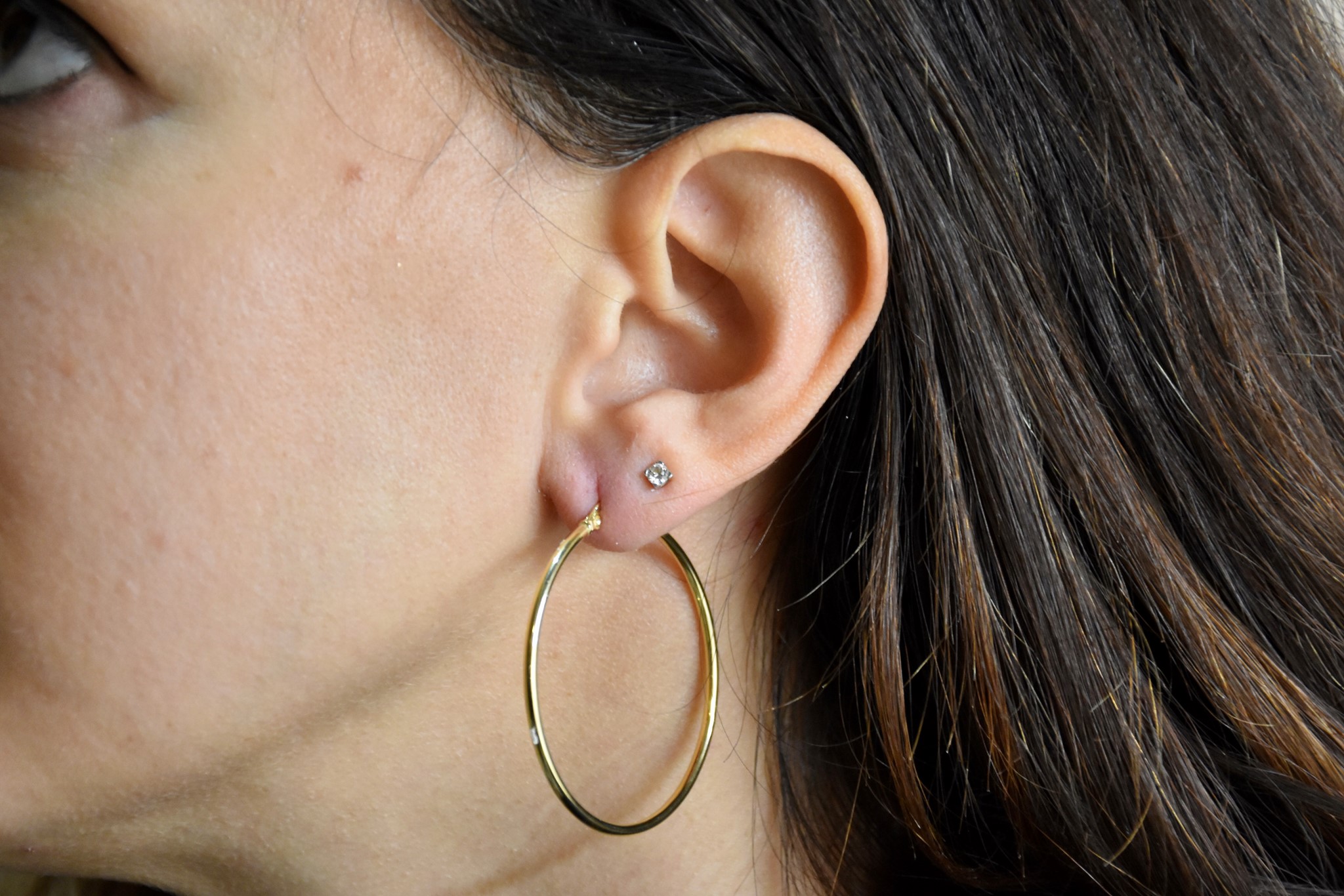 Orecchini a cerchio in oro giallo 750/00 del diametro di 4,40cm. Peso 3,10g.