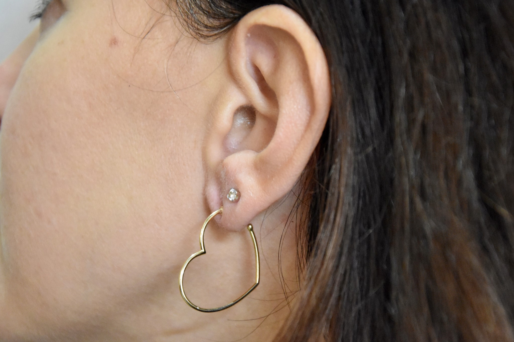 Orecchini in oro giallo 750/00 a forma di cuore del diametro di 3cm. Peso orecchini 2,80g.