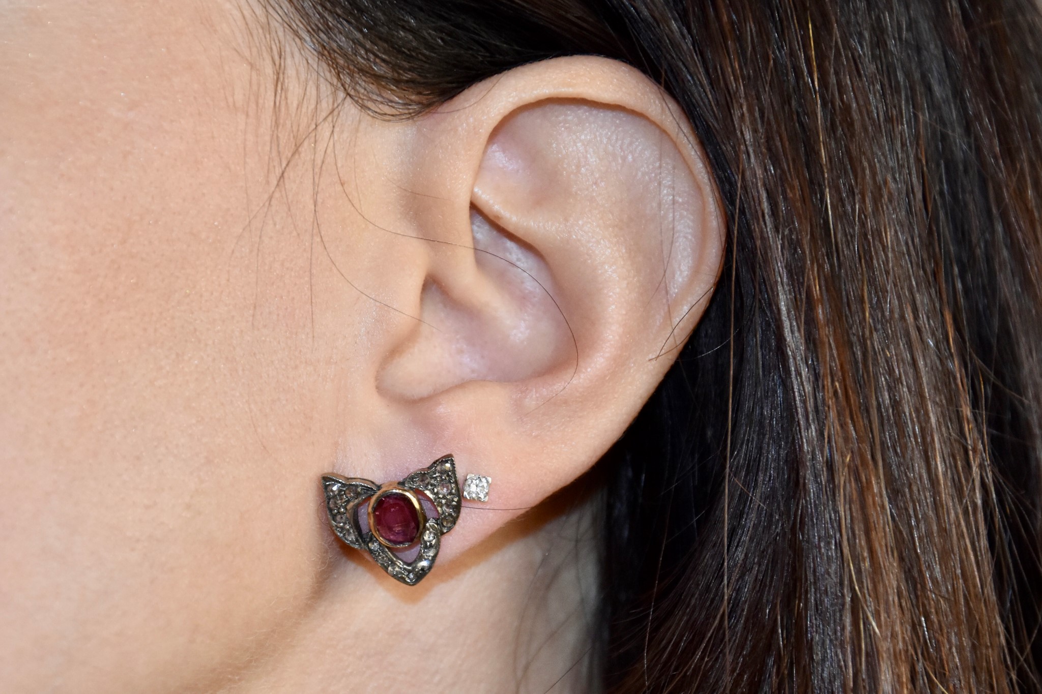 Orecchini in oro 585/00 e argento su cui sono montati diamantini taglio antico e ametiste. Peso orecchini 3,75g.