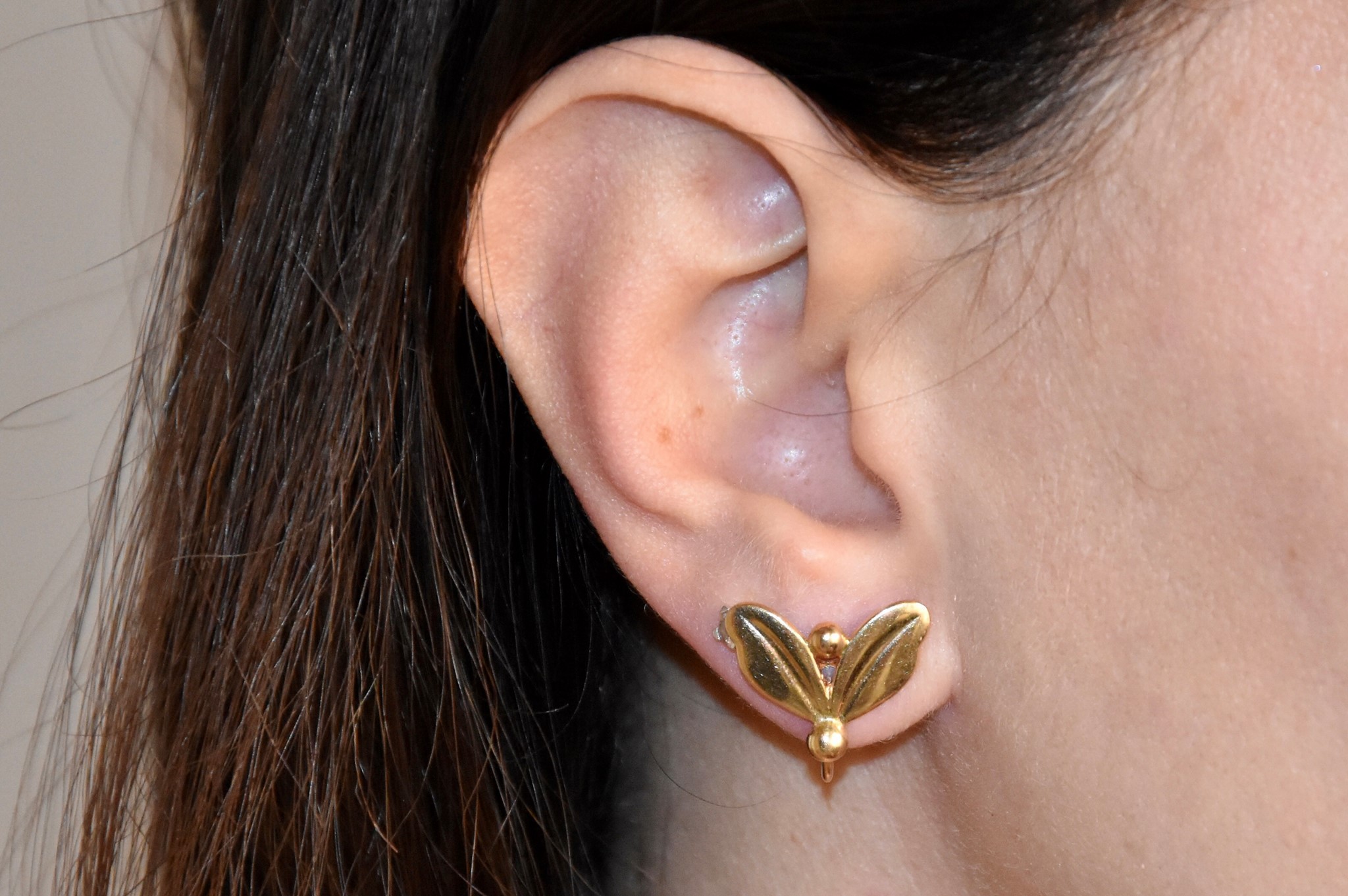 Orecchini vintage Tiffany & Co. in oro giallo 585/00 con vite americana. Dimensione 1,80x1,70cm. Peso 6,00g.