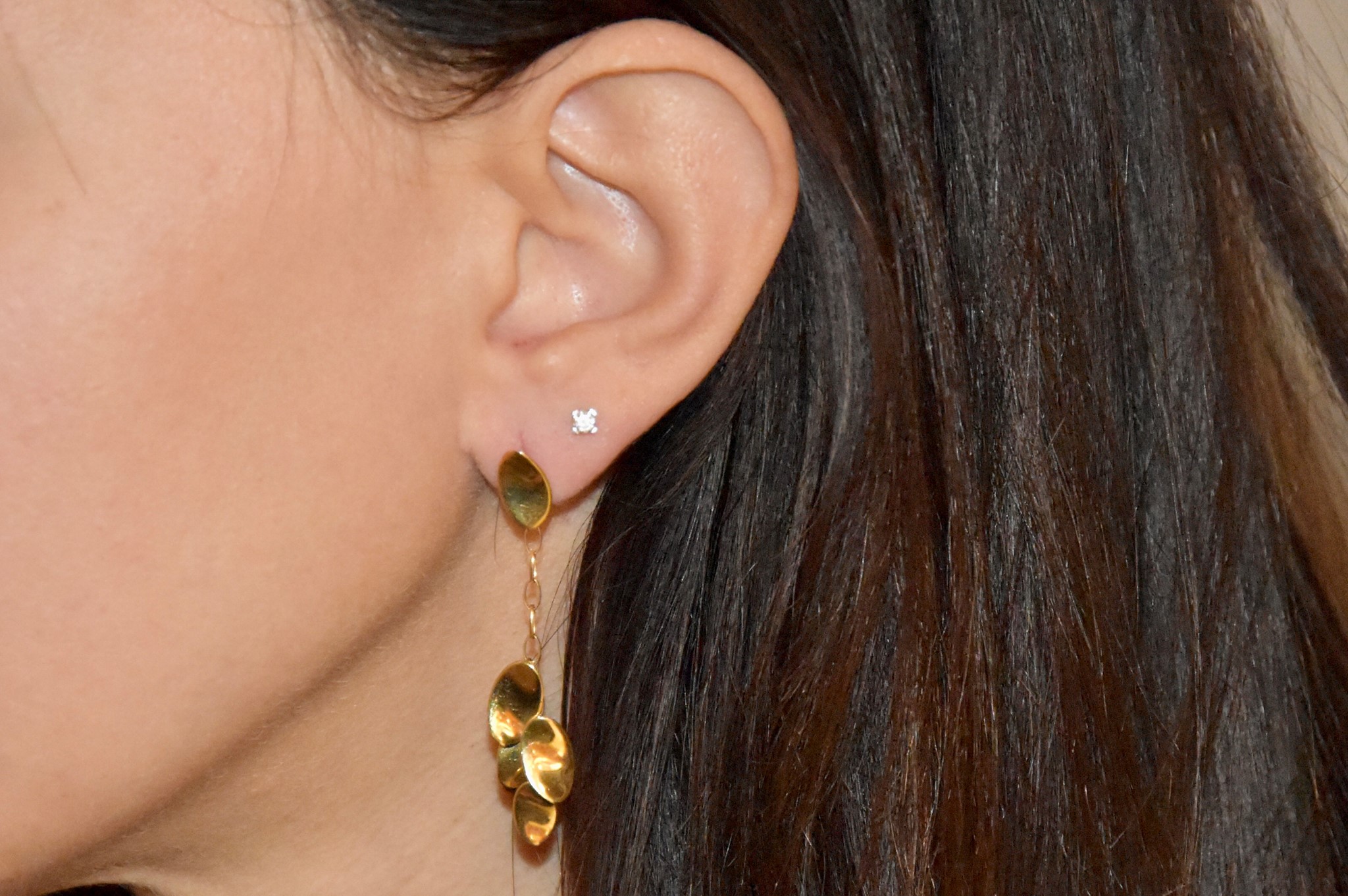 Orecchini pendenti in oro giallo 750/00 lunghi cm. 5,00. Peso tot. g. 5,60.