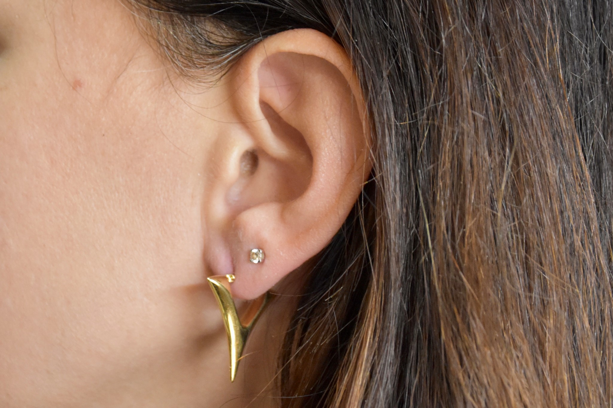 Orecchini triangolo in oro giallo 750/00. Lunghezza 2,50cm; larghezza 2,30cm. Peso tot. g. 4,00.