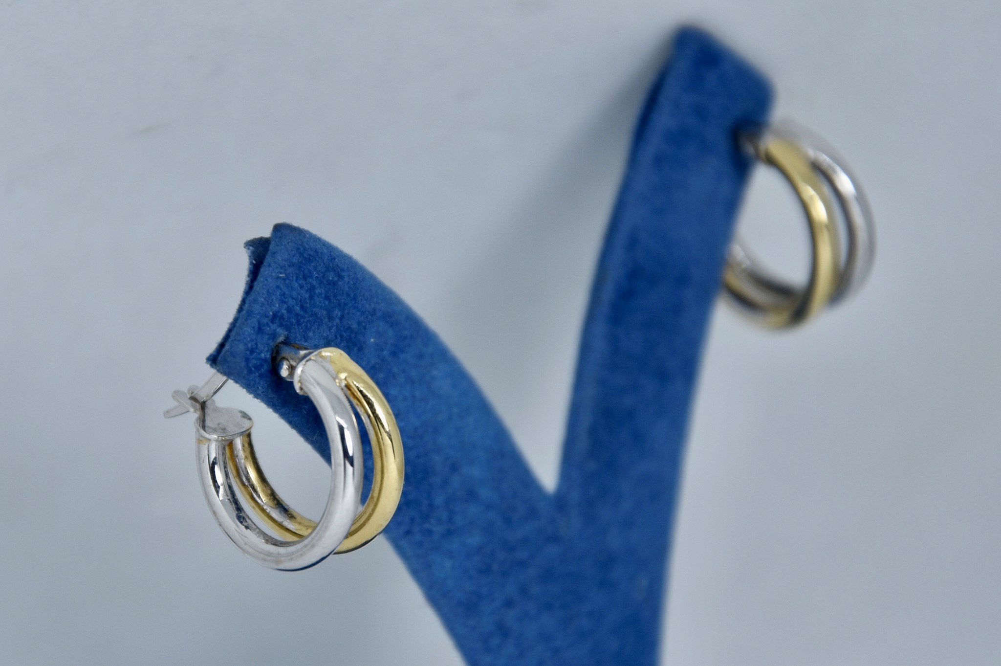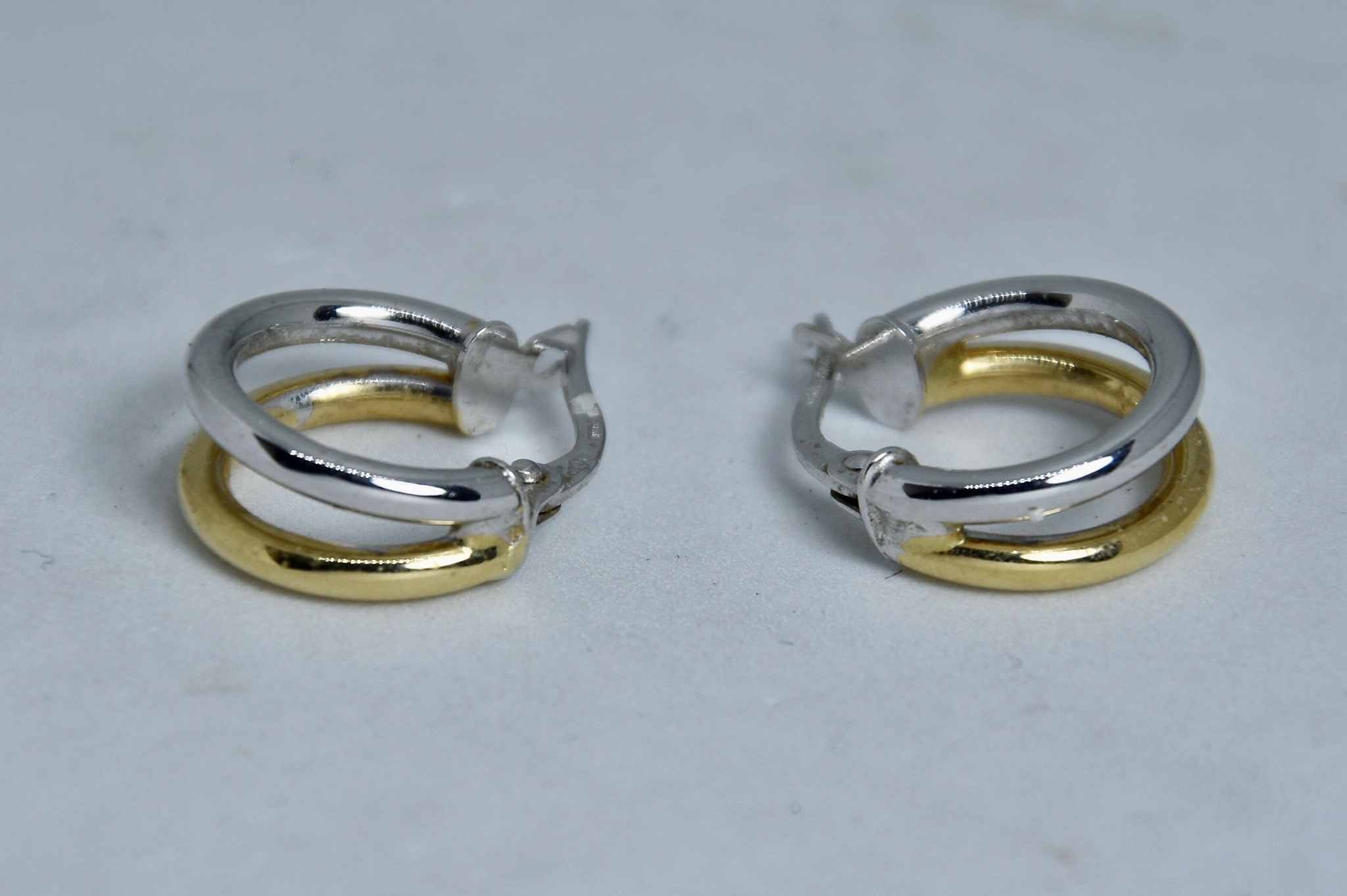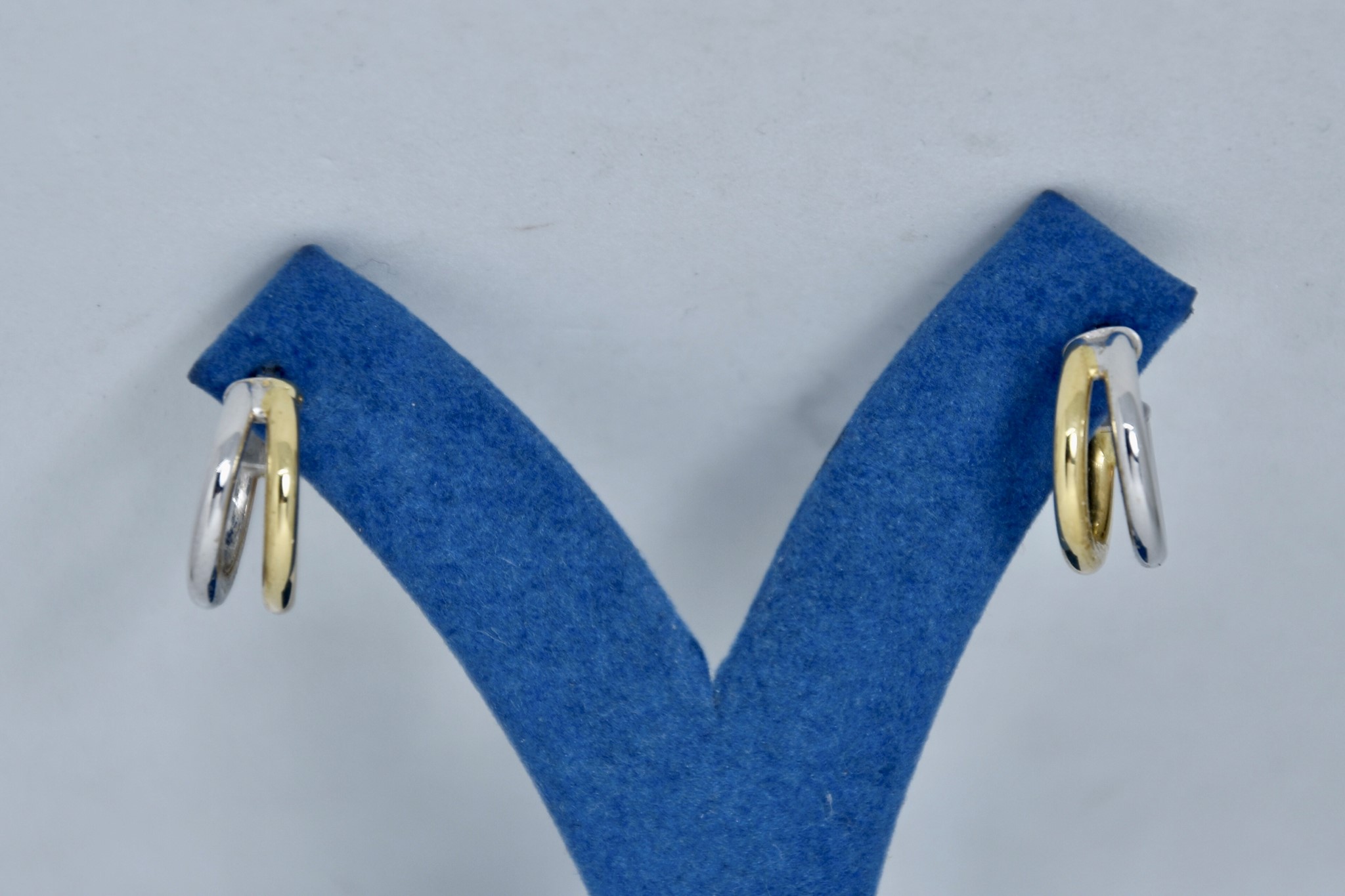Orecchini verette in oro giallo e bianco 750/00. Peso orecchini 1,75g.