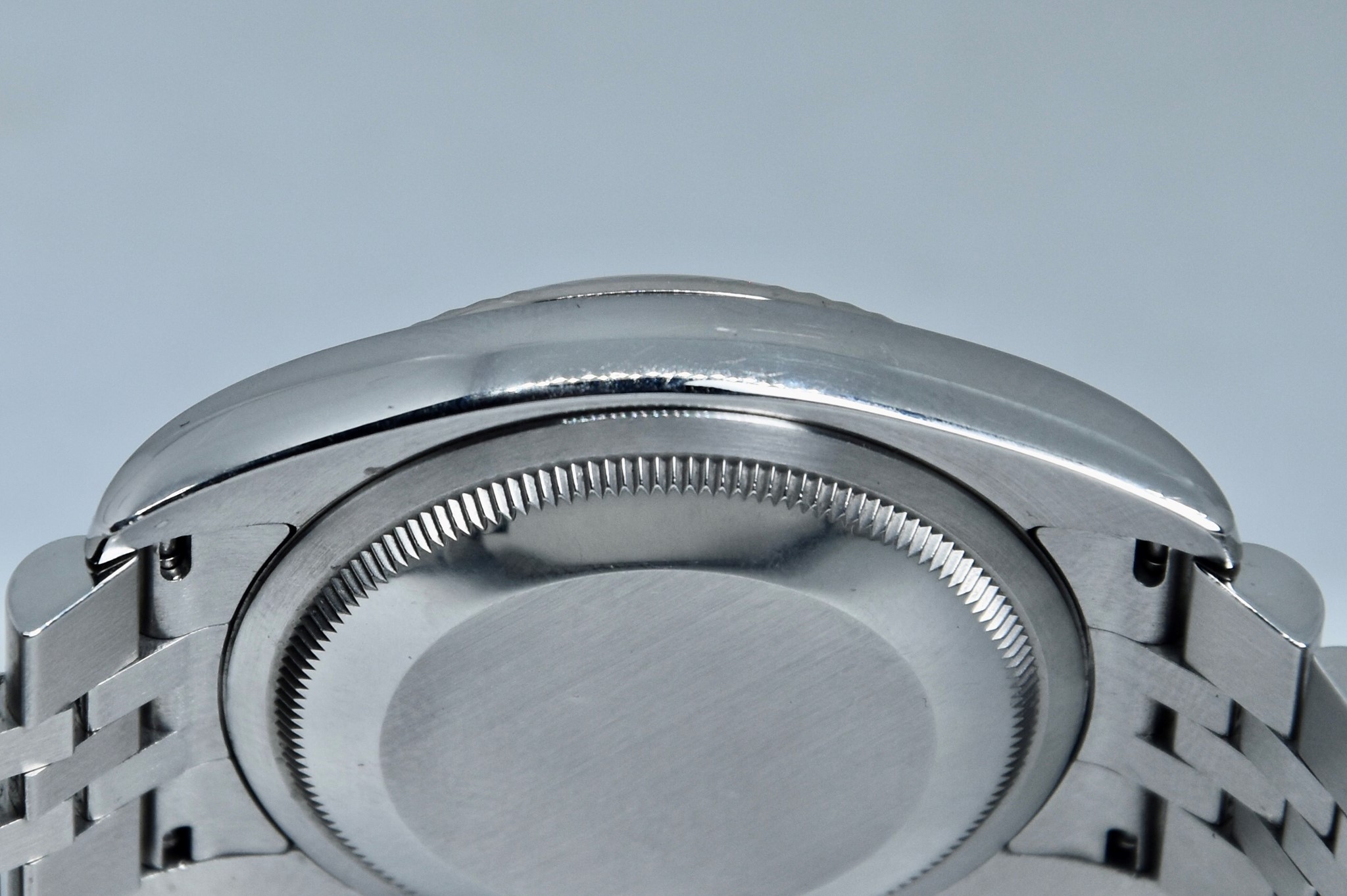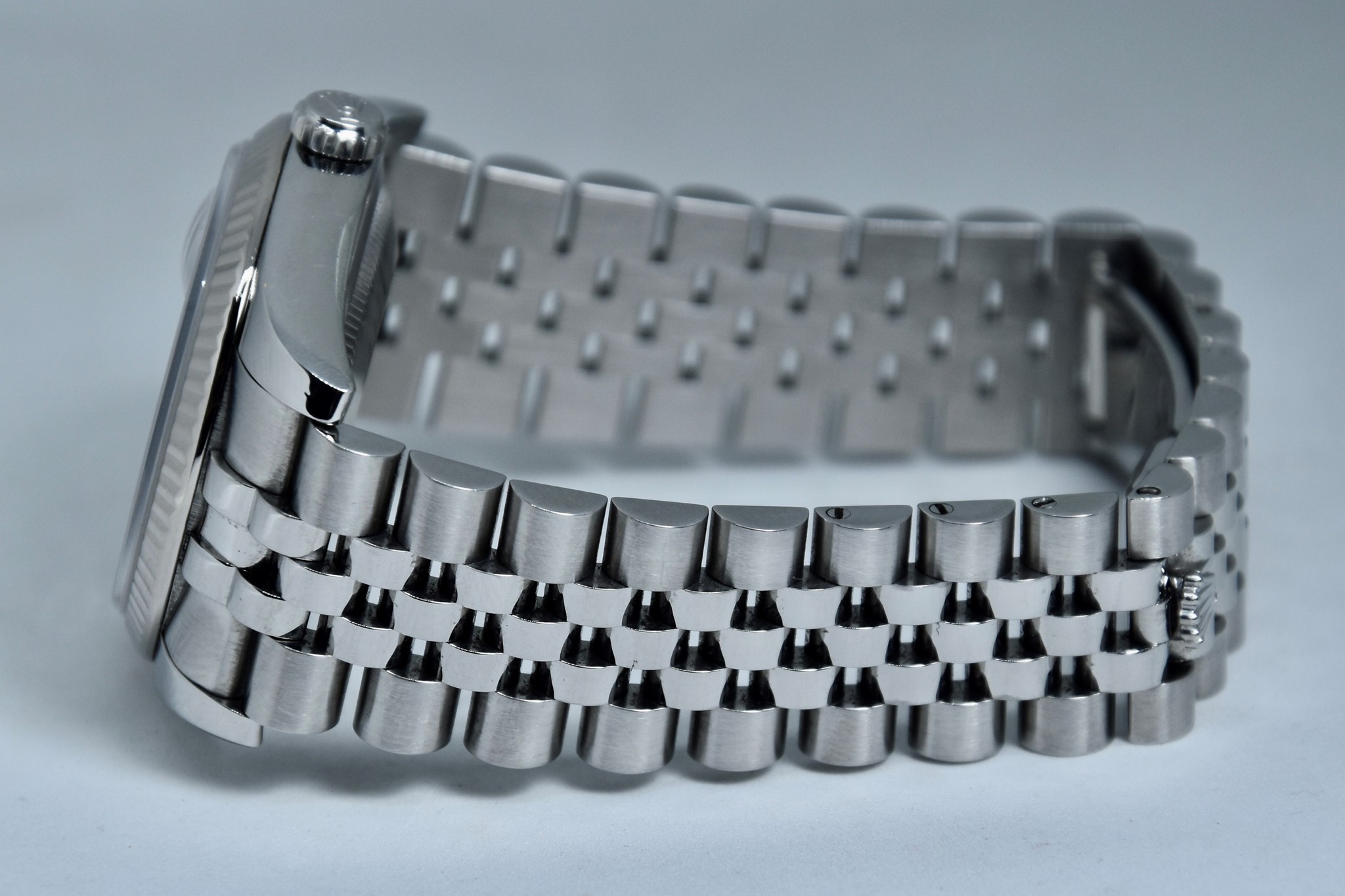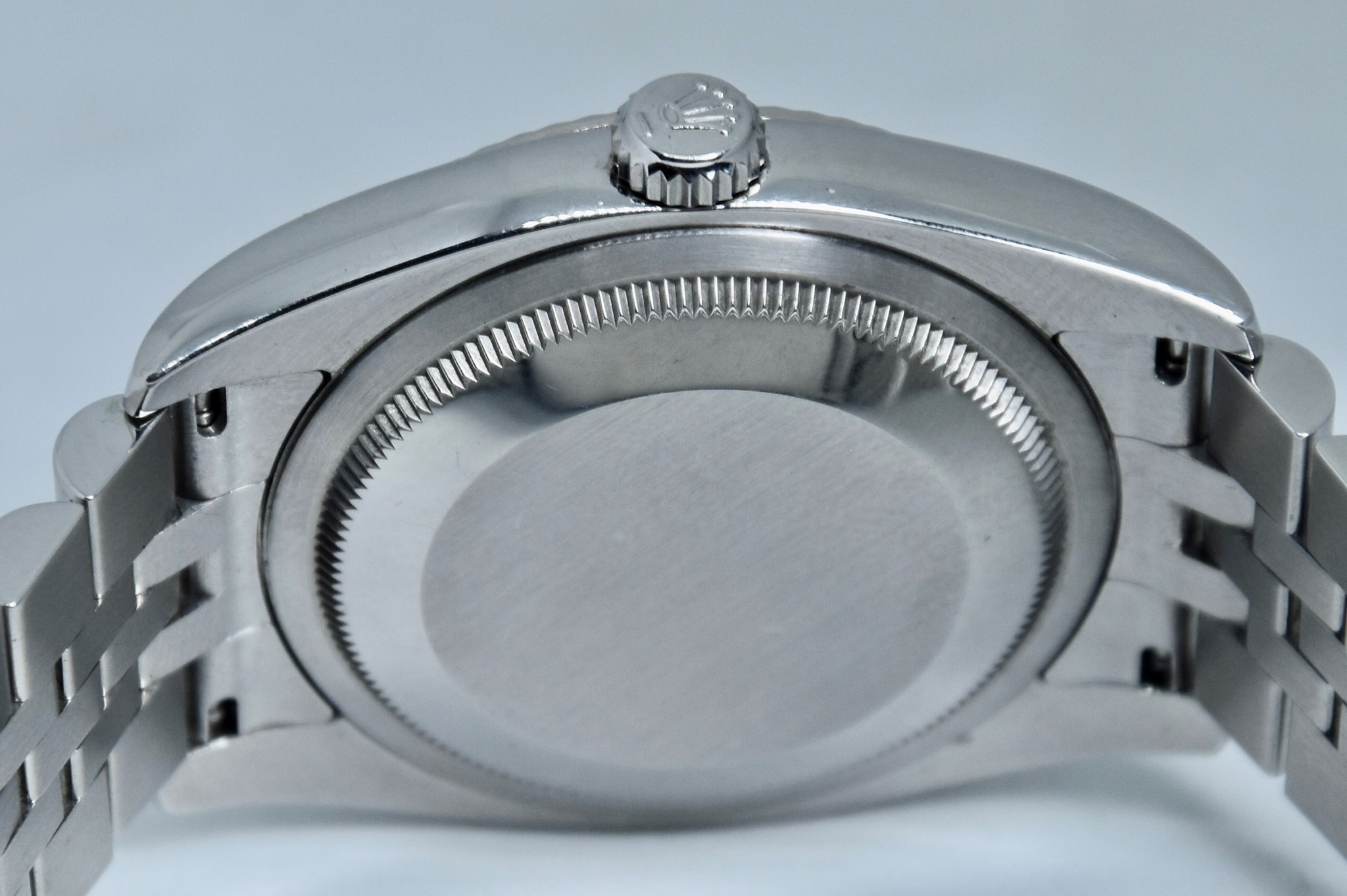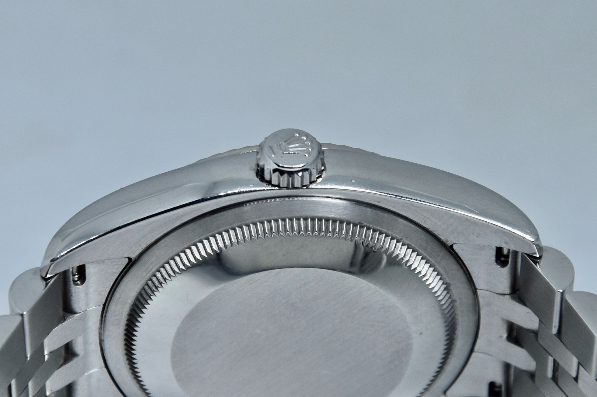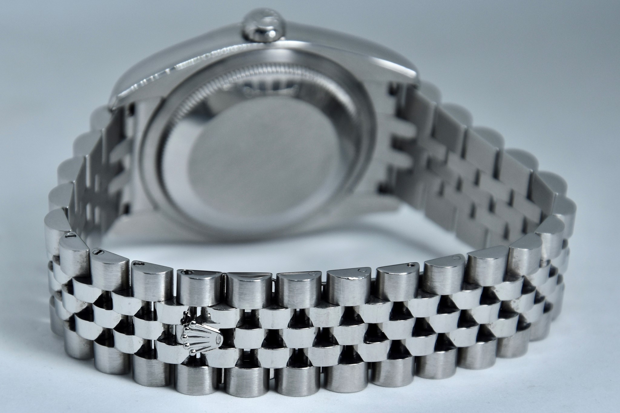 Rolex Datejust ref. 116234 del 2010. Orologio in acciaio in ottime condizioni. Splendido quadrante color bianco. Movimento a carica automatica. Ghiera zigrinata in oro bianco. Diametro cassa 36mm. Indicatore del datario "Roulette". Vetro zaffiro. Bracciale superjubilee in ottime condizioni. Con scatola e garanzia originali.