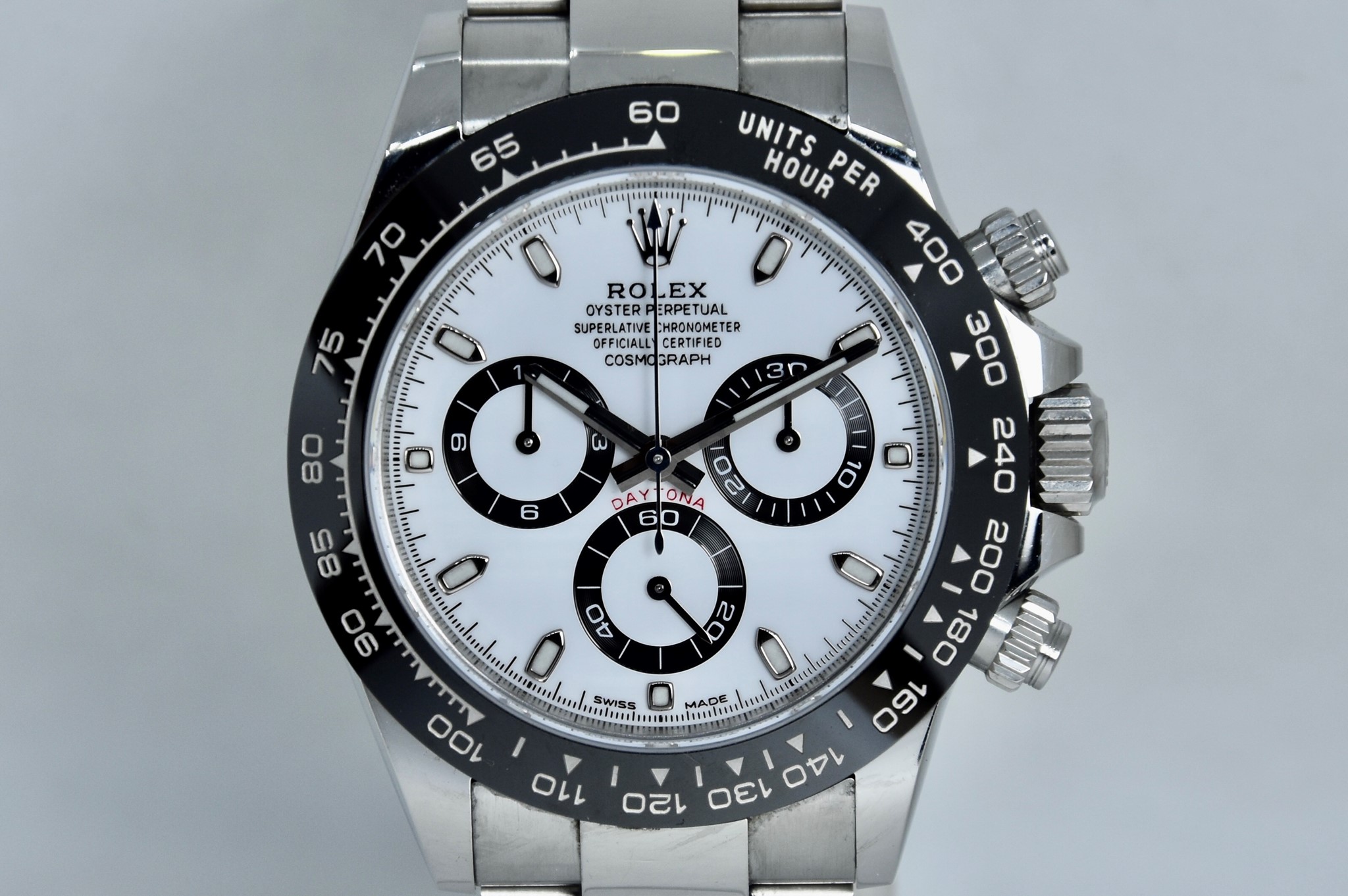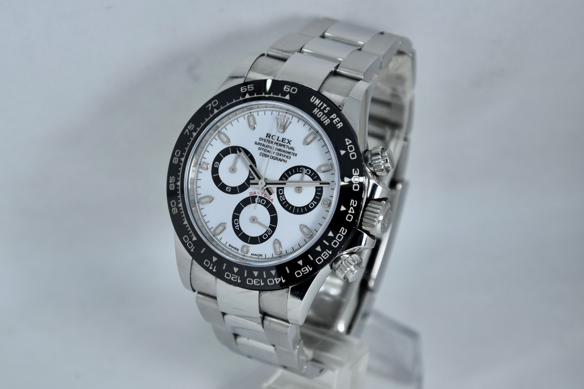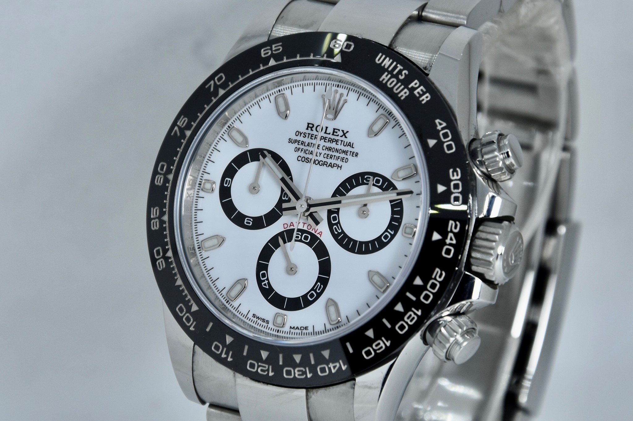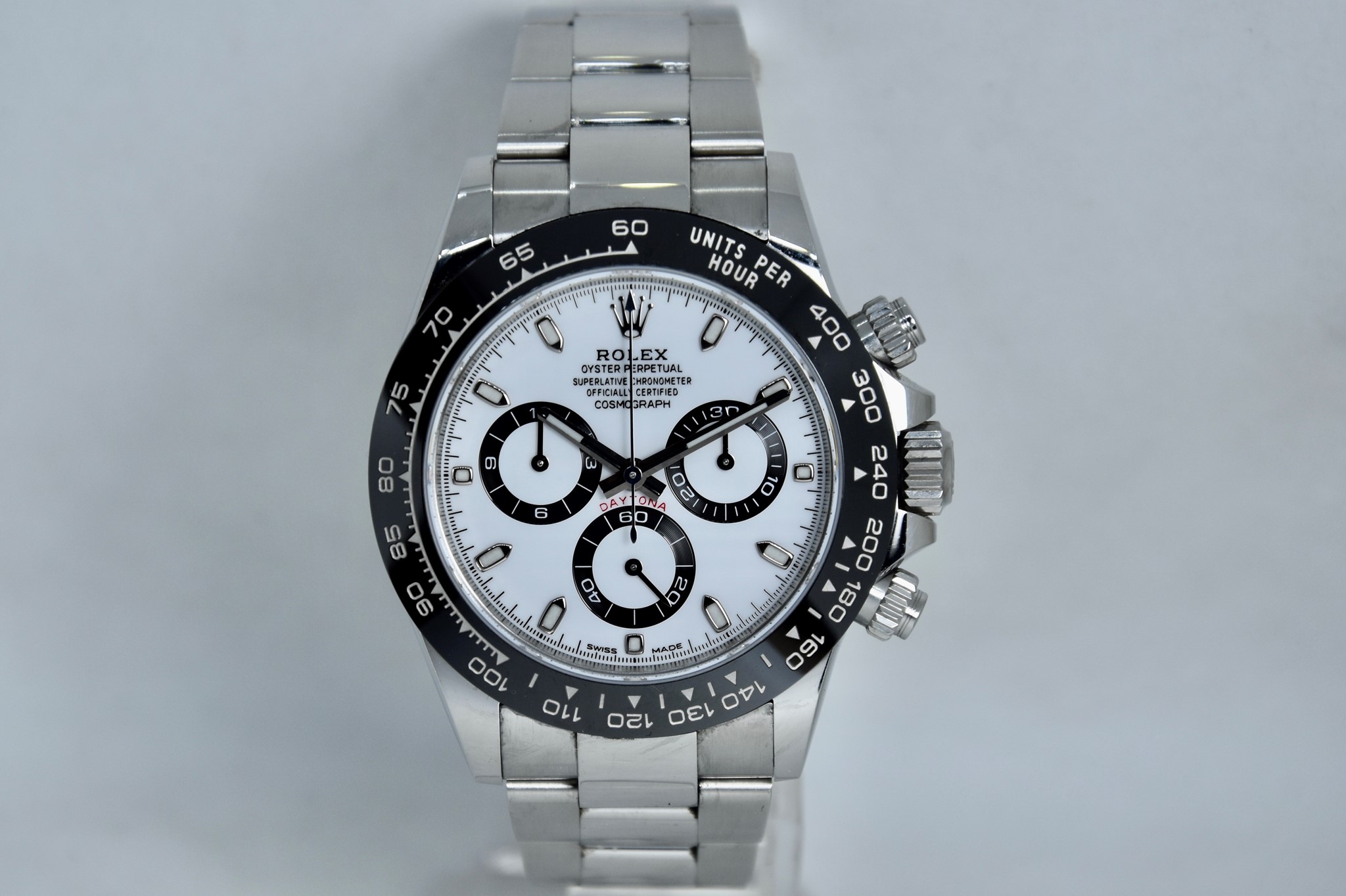 Rolex Daytona ref. 116500LN del 2020. Orologio in acciaio in ottime condizioni. Lunetta in ceramica. Movimento a carica automatica. Splendido quadrante panda. Diametro cassa 40mm. Vetro zaffiro. Bracciale Oyster con tutte le maglie ed in ottime condizioni. Orologio mai lucidato. Con scatola e garanzia originale.
