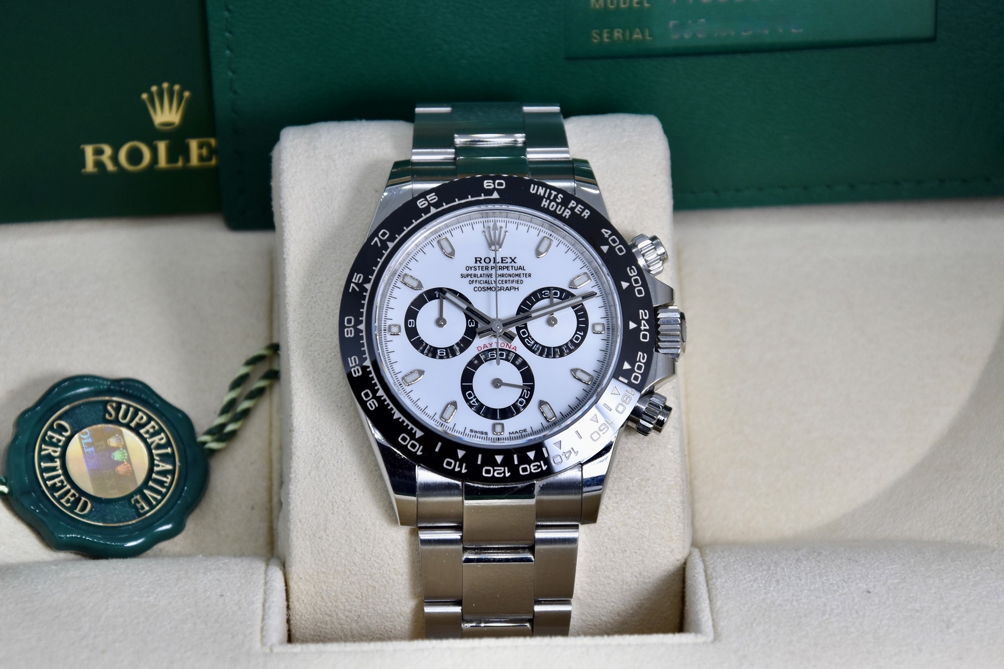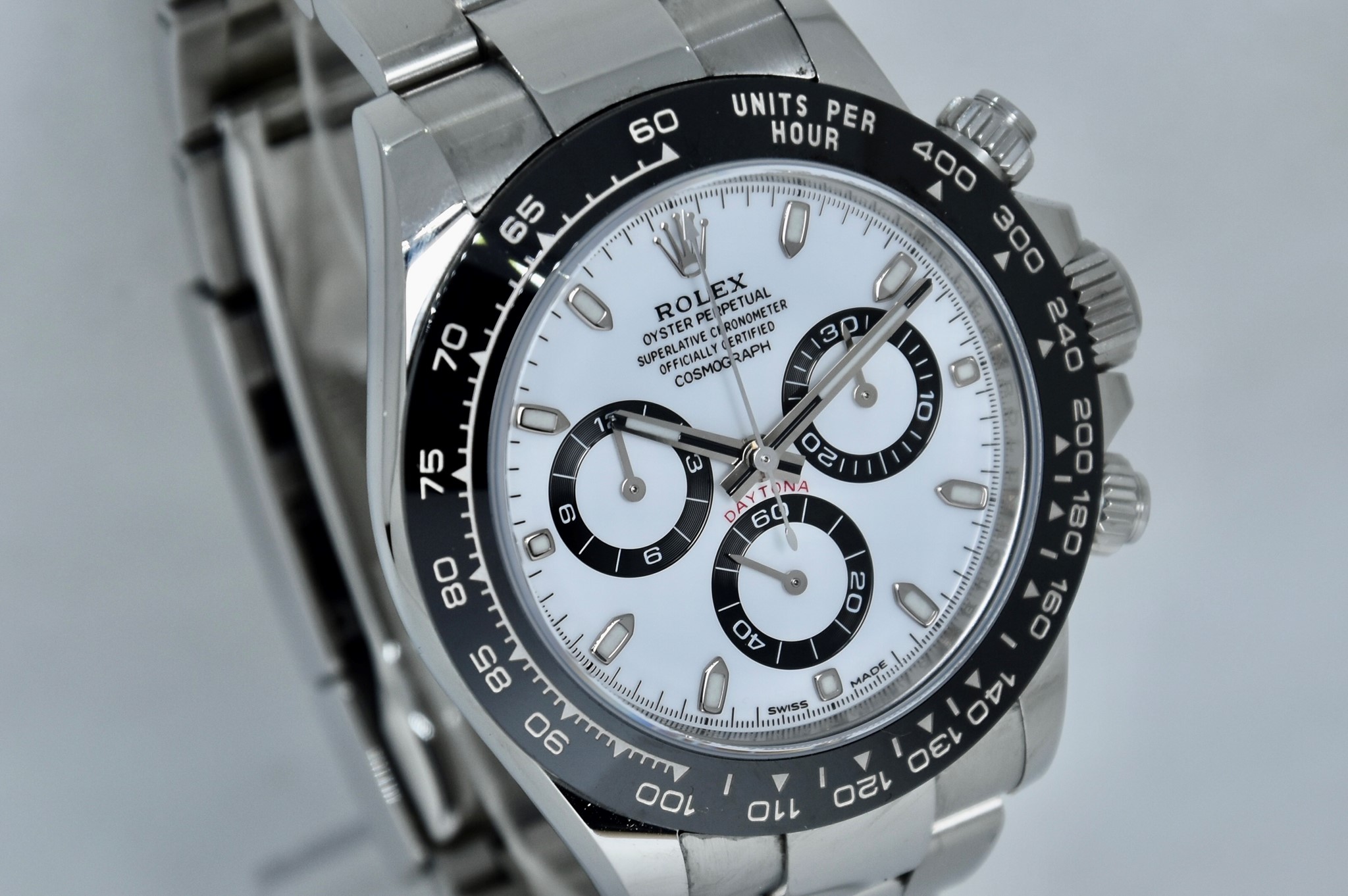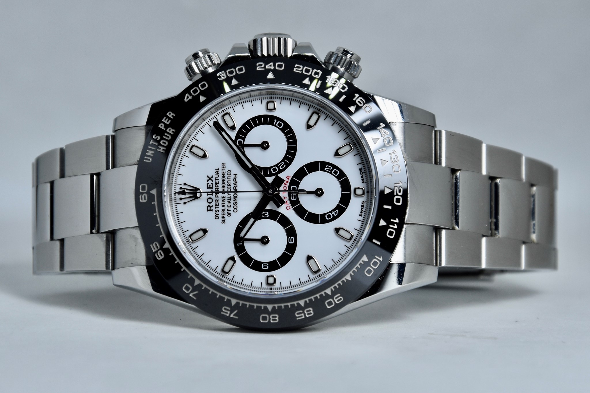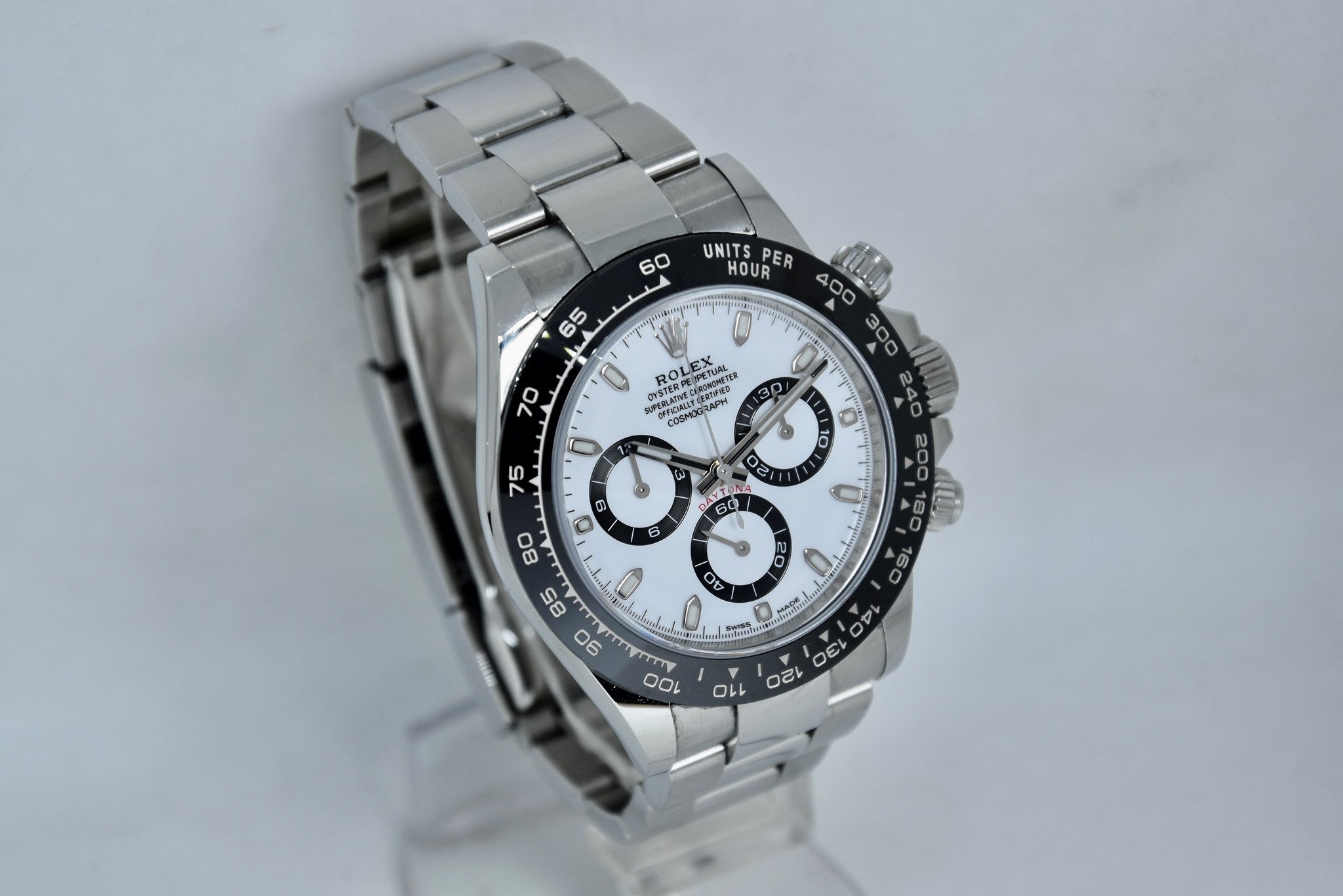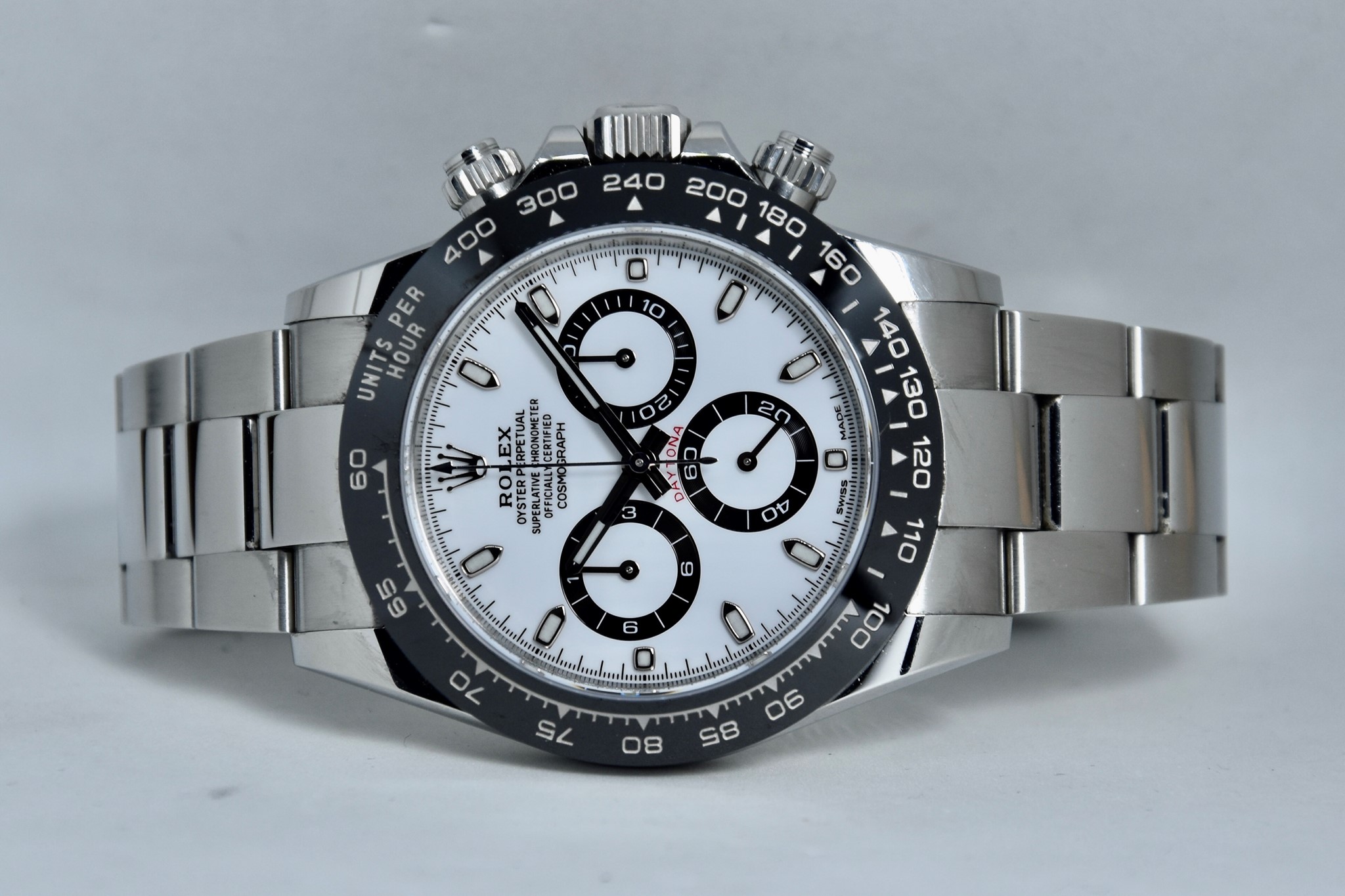 Rolex Daytona ref. 116500LN del 2020. Orologio in acciaio in ottime condizioni. Lunetta in ceramica. Movimento a carica automatica. Splendido quadrante panda. Diametro cassa 40mm. Vetro zaffiro. Bracciale Oyster con tutte le maglie ed in ottime condizioni. Orologio mai lucidato. Con scatola e garanzia originale.