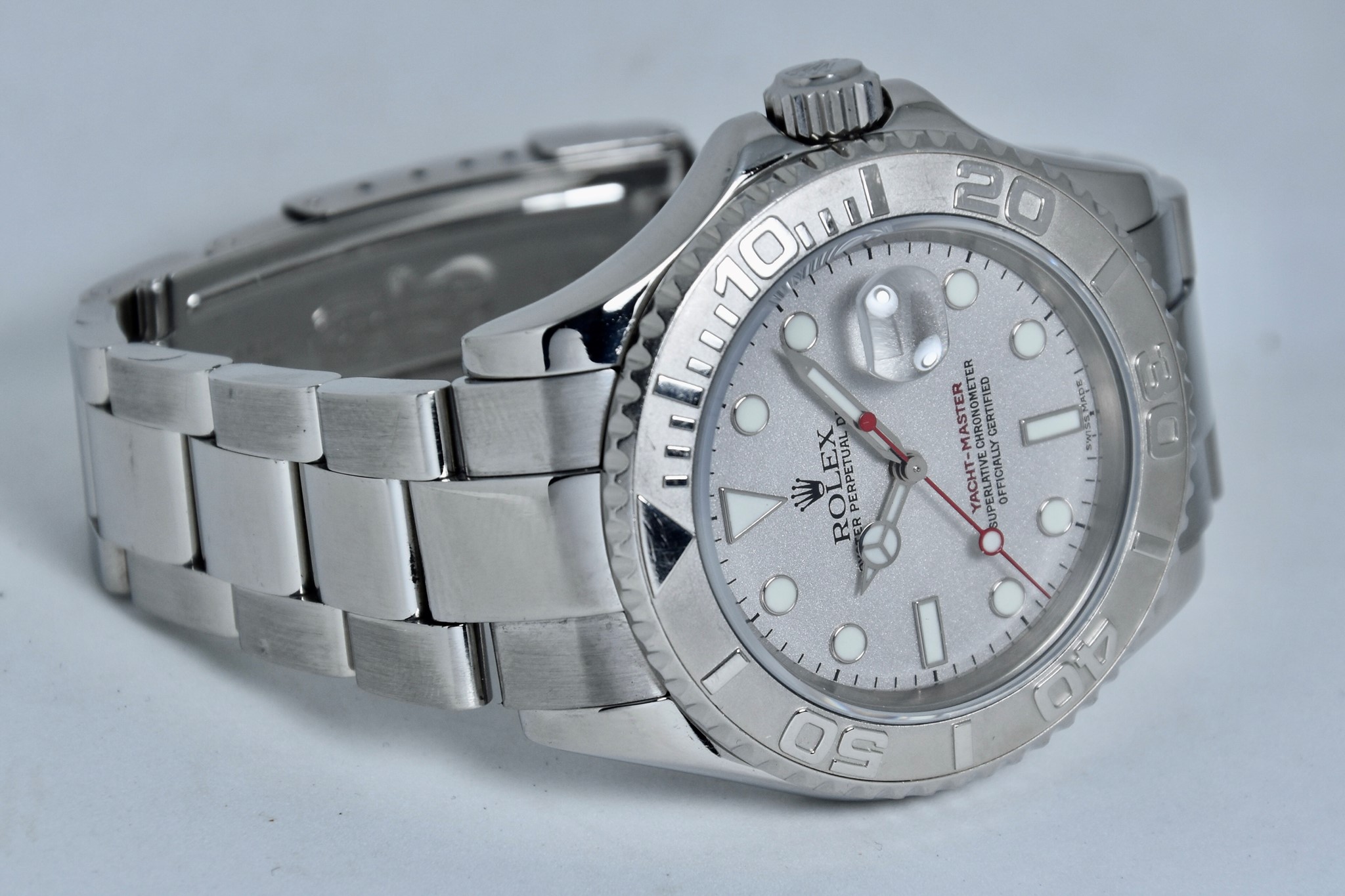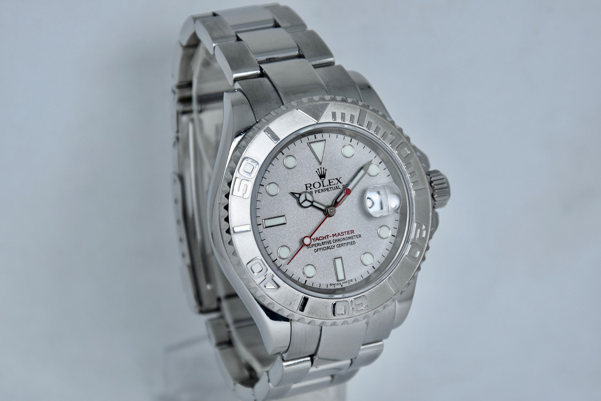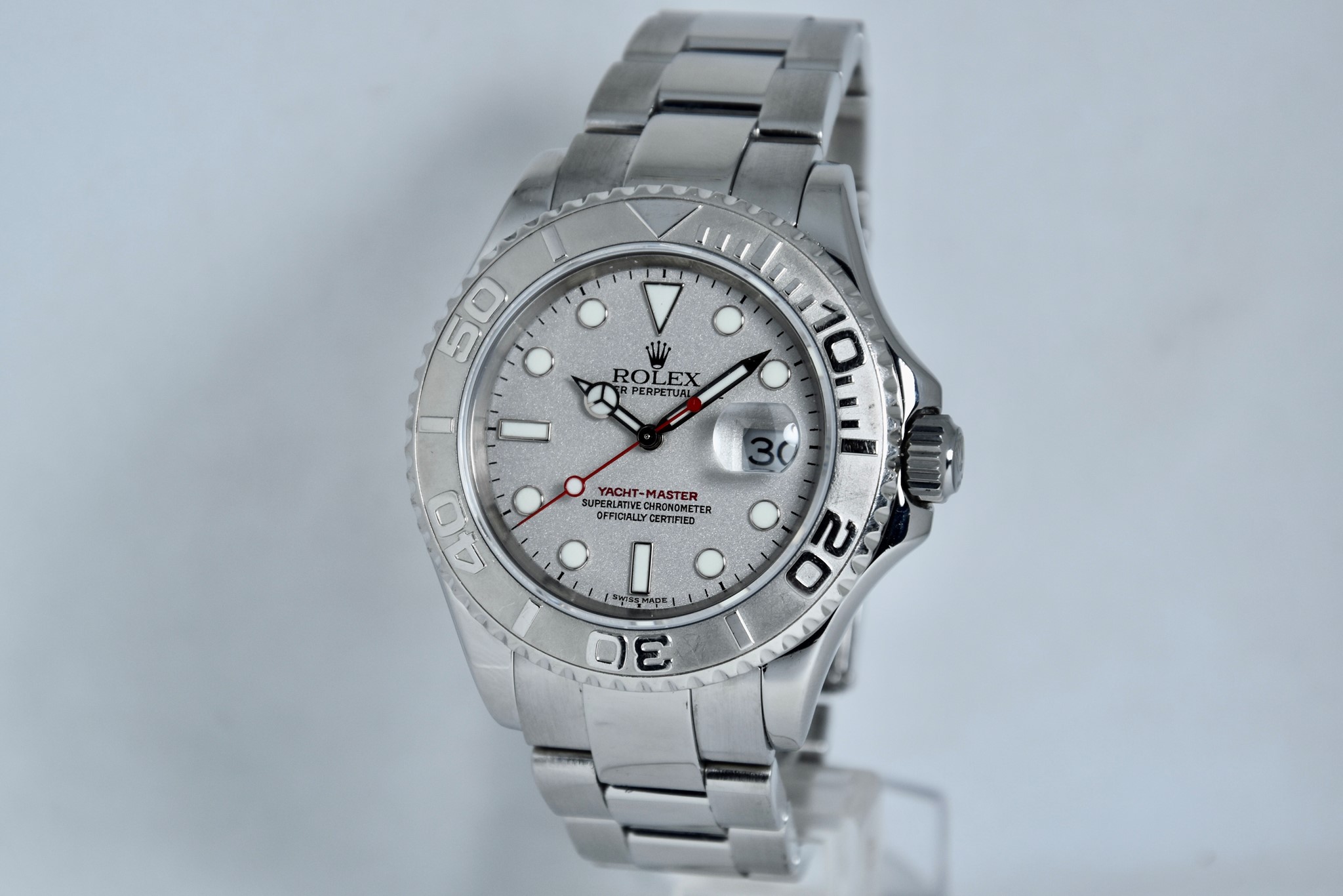 Rolex YachtMaster ref. 16622 del 2004 in ottime condizioni. Orologio in acciaio con bracciale originale oyster. Quadrante in platino. Movimento a carica automatica. Diametro cassa 40mm. Vetro zaffiro. Indicatore del datario. Ghiera girevole in platino. Coevo in ogni suo particolare. Con scatola e garanzia originali. Le foto sono realmente dell'oggetto in vendita.