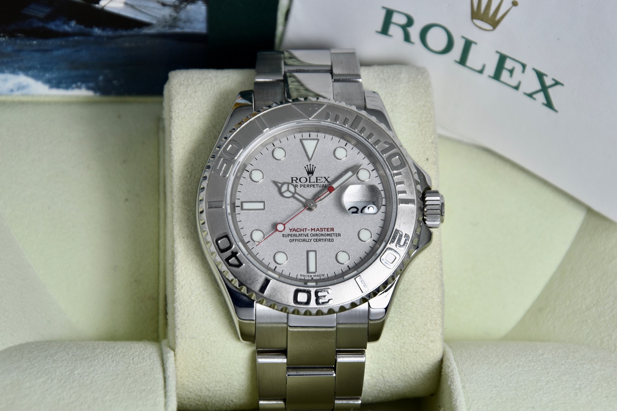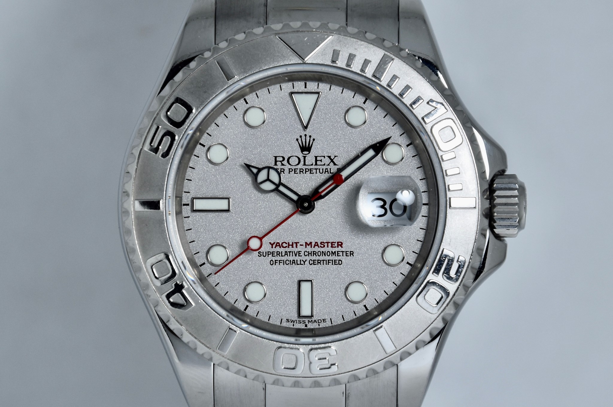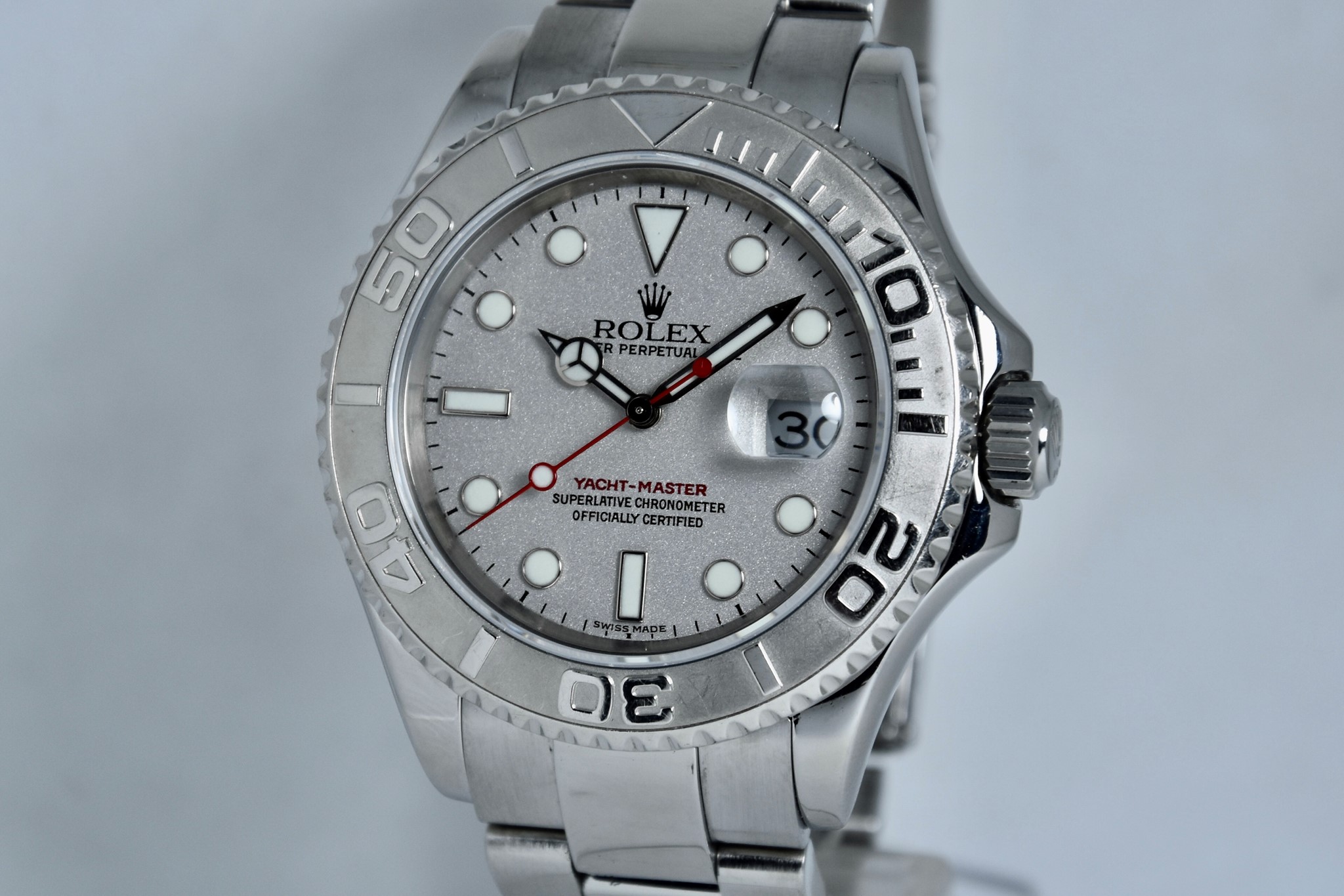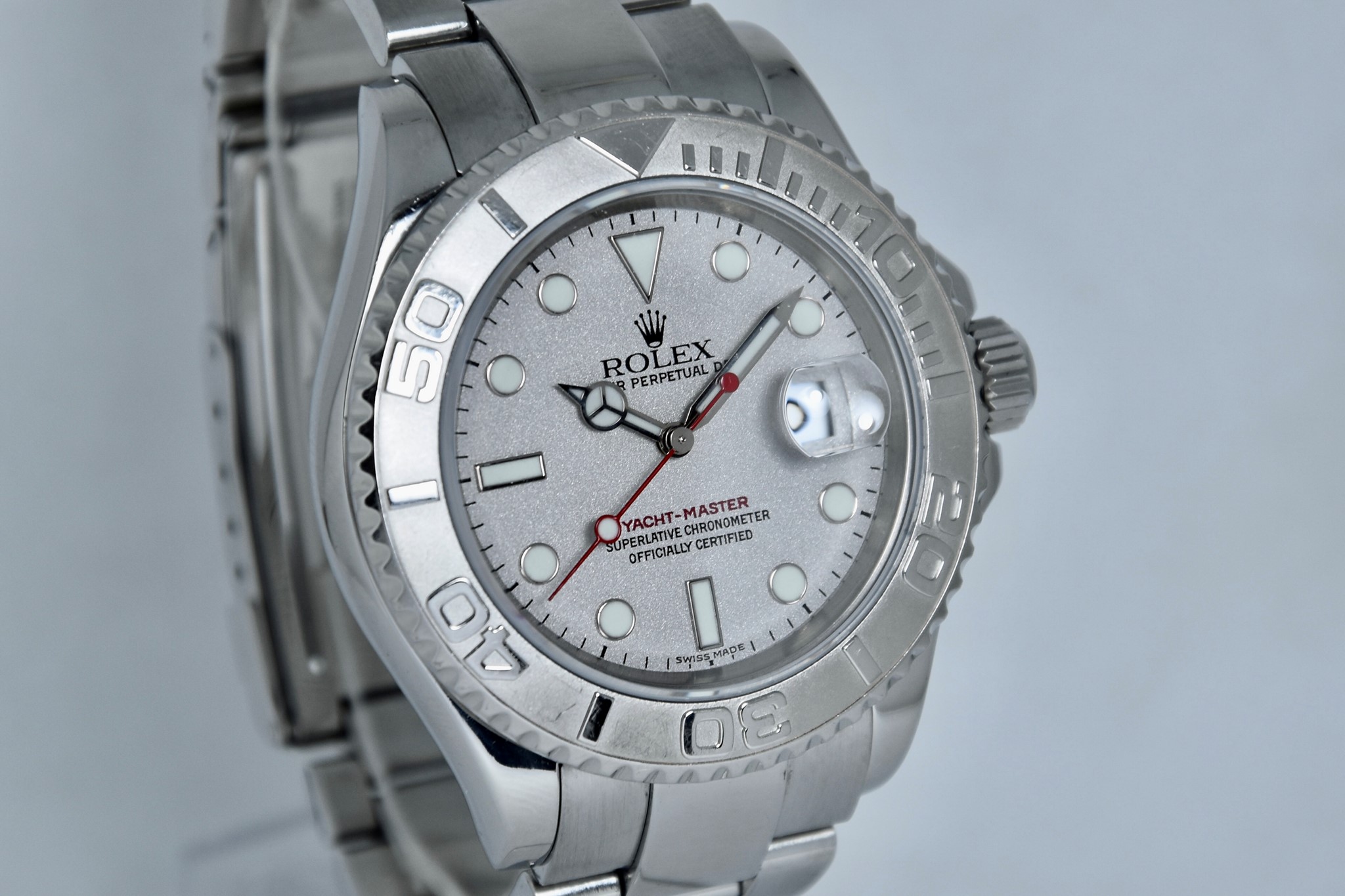 Rolex YachtMaster ref. 16622 del 2004 in ottime condizioni. Orologio in acciaio con bracciale originale oyster. Quadrante in platino. Movimento a carica automatica. Diametro cassa 40mm. Vetro zaffiro. Indicatore del datario. Ghiera girevole in platino. Coevo in ogni suo particolare. Con scatola e garanzia originali. Le foto sono realmente dell'oggetto in vendita.