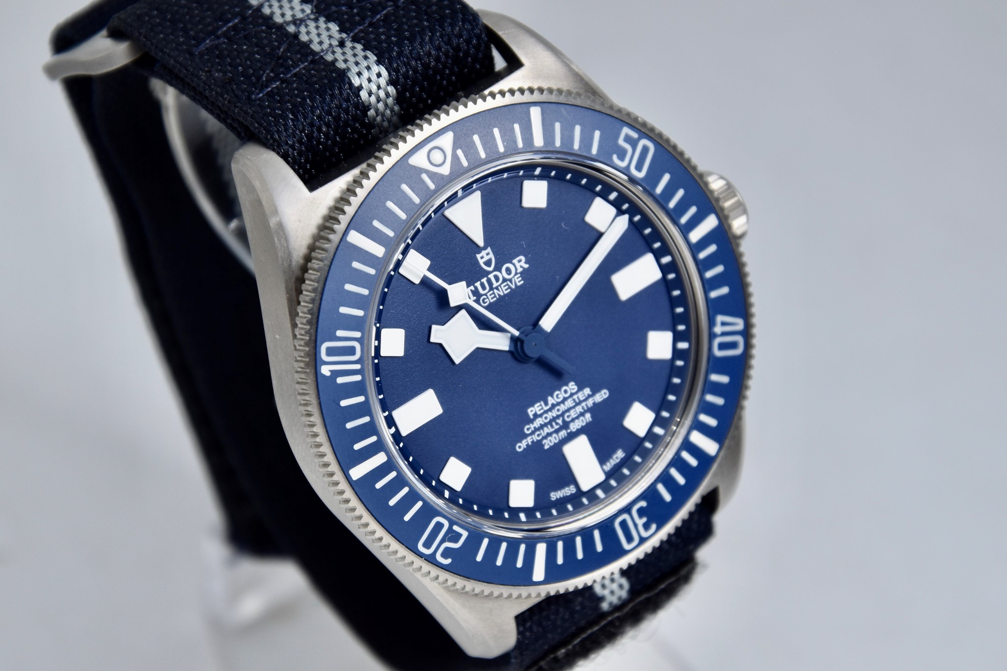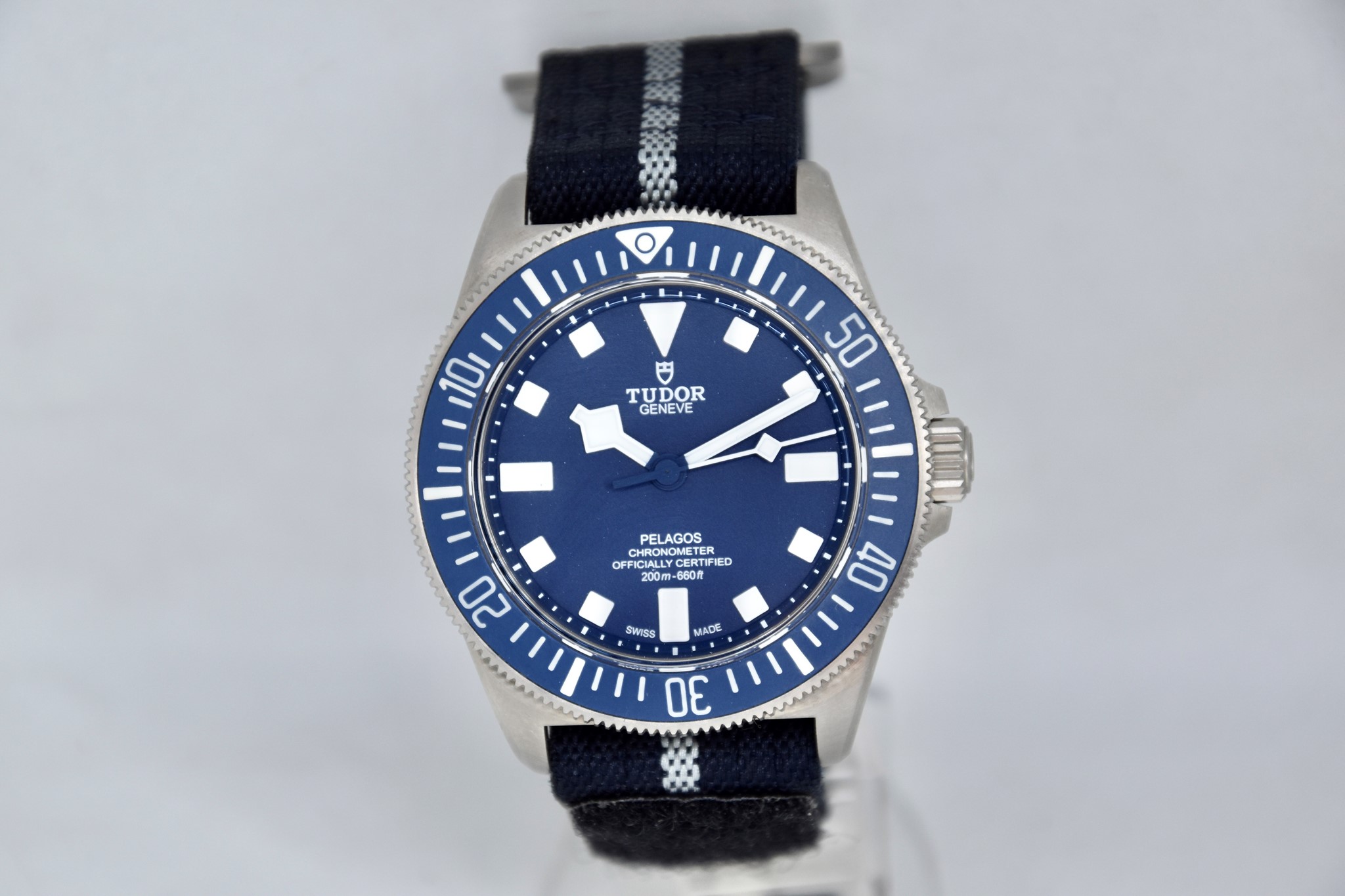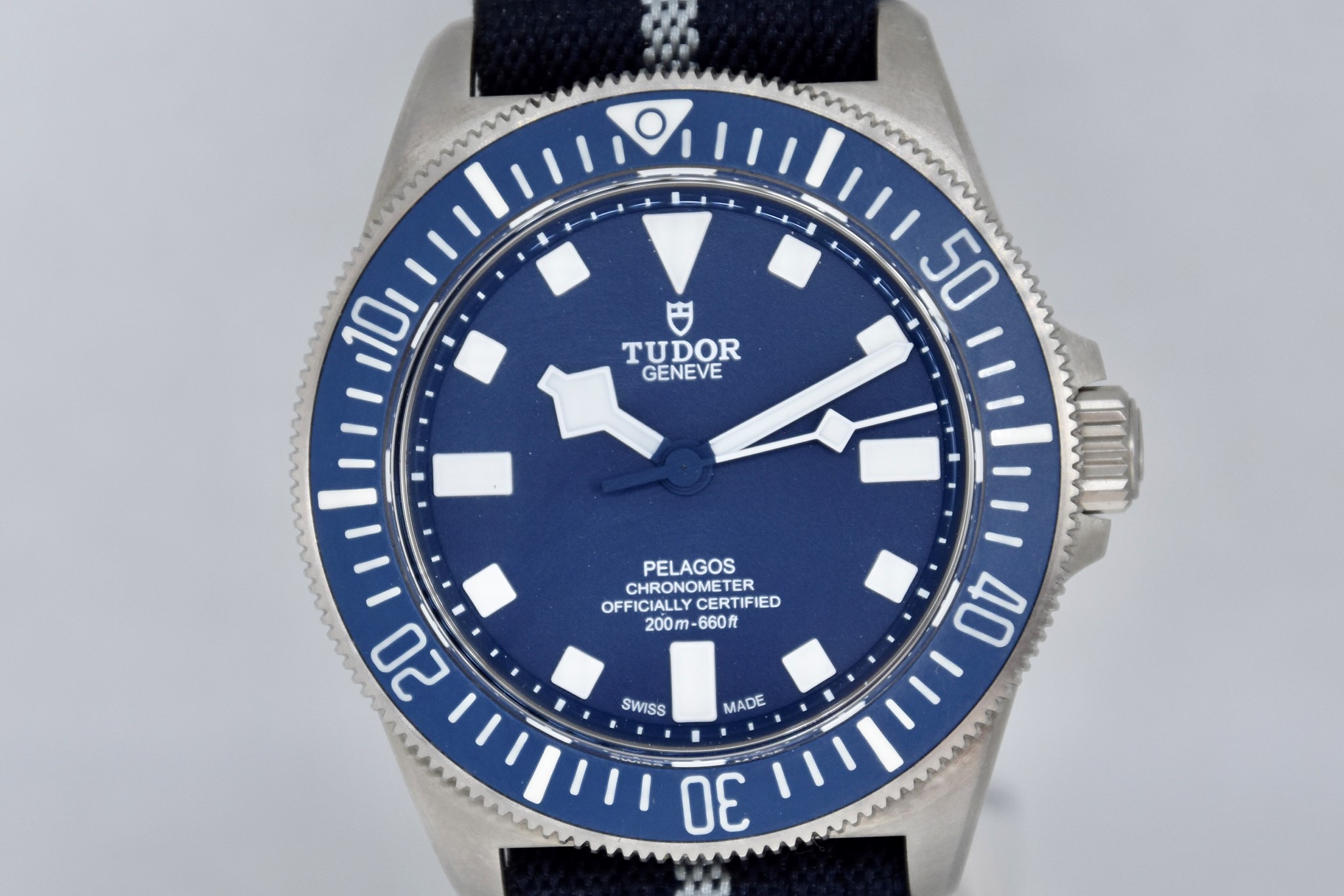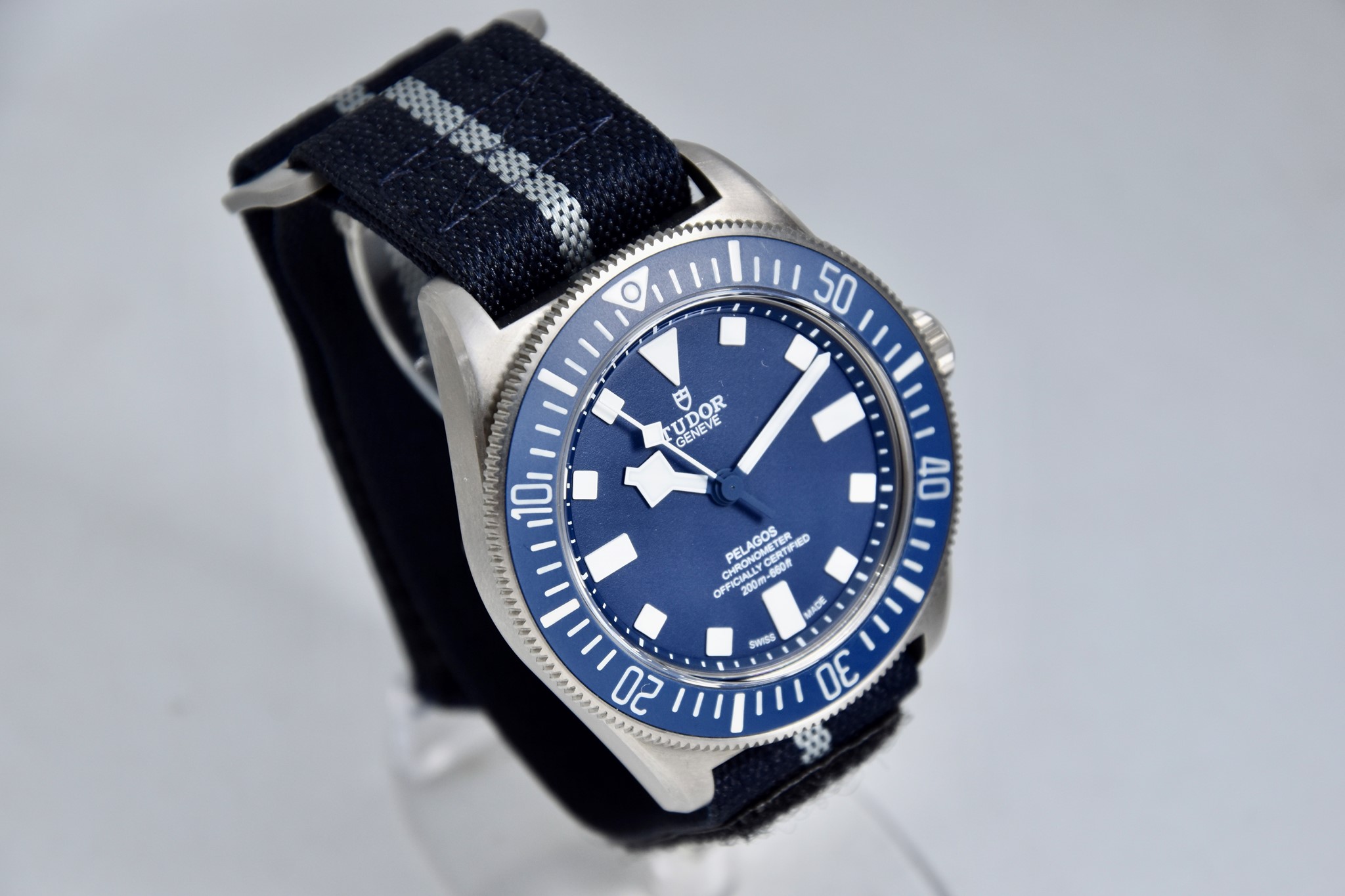 Tudor Pelagos FXD Marine Nationale del 2024. Orologio in titanio in condizioni di pari al nuovo. Quadrante opaco blu.Movimento a carica automatica. Diametro cassa 42mm. Vetro zaffiro. Ghiera girevole in titanio con inserto in ceramica. Corona a vite originale. Indici e lancette luminova con ottima lettura notturna. Luminova presente anche nell'inserto. Doppio cinturino originale in velcro e in gomma. Con scatola e garanzia originali.