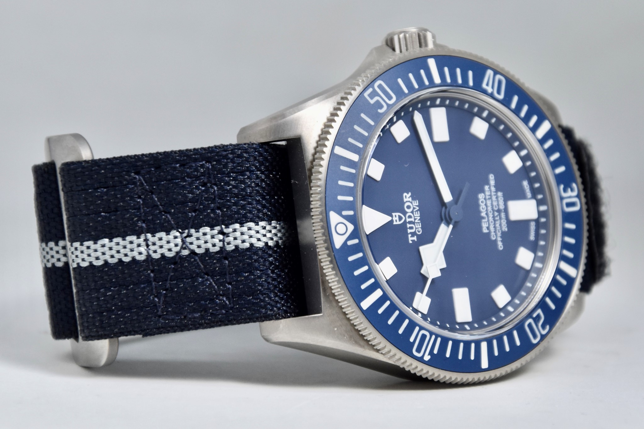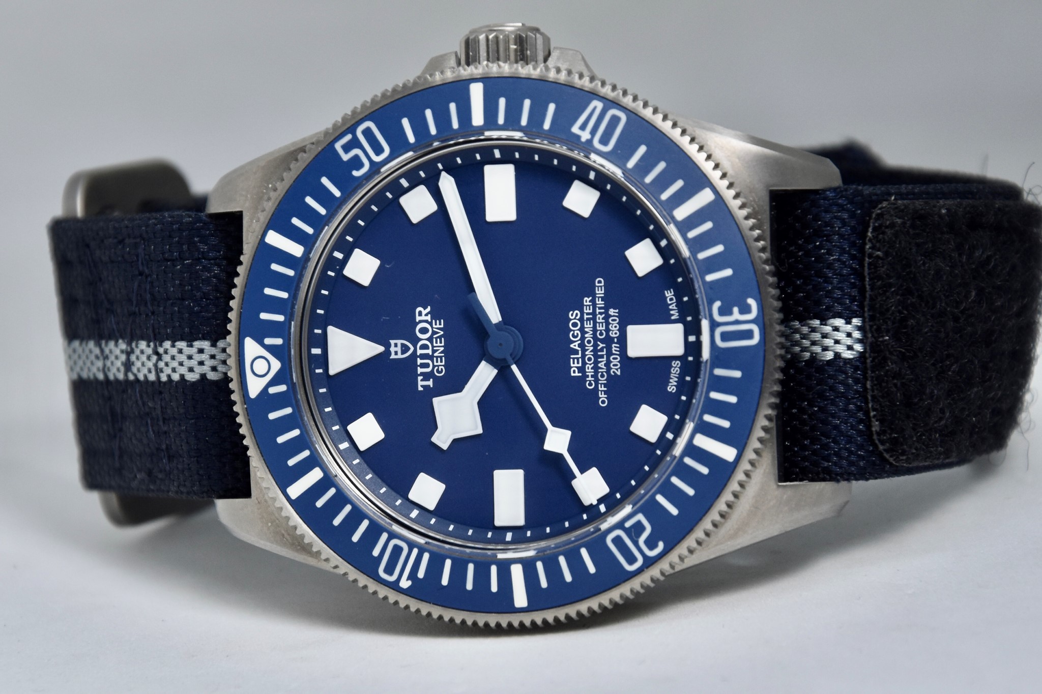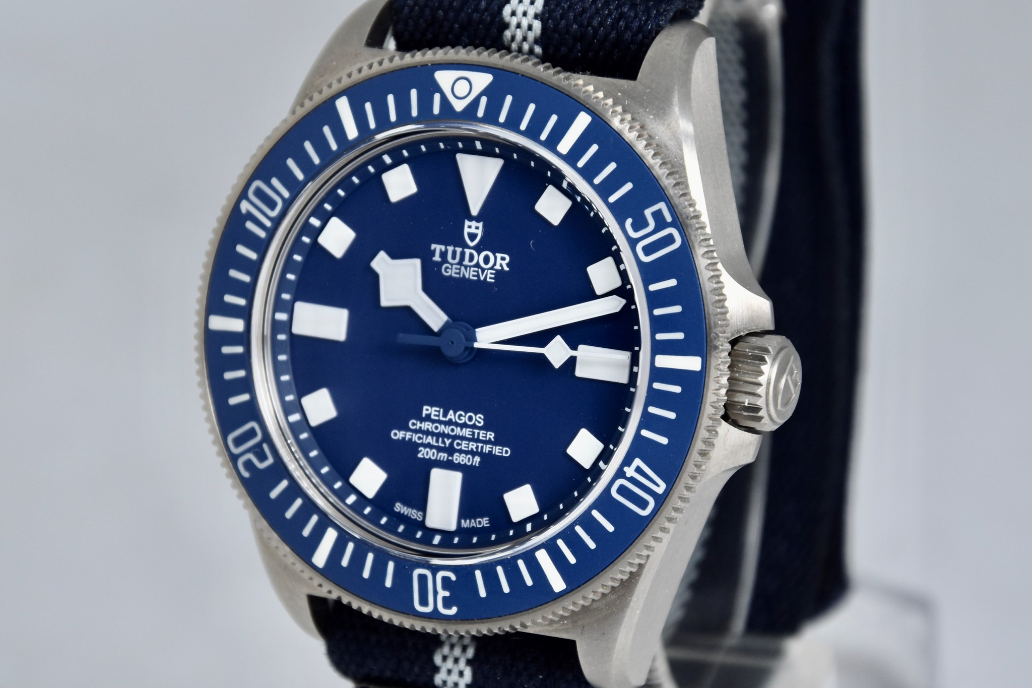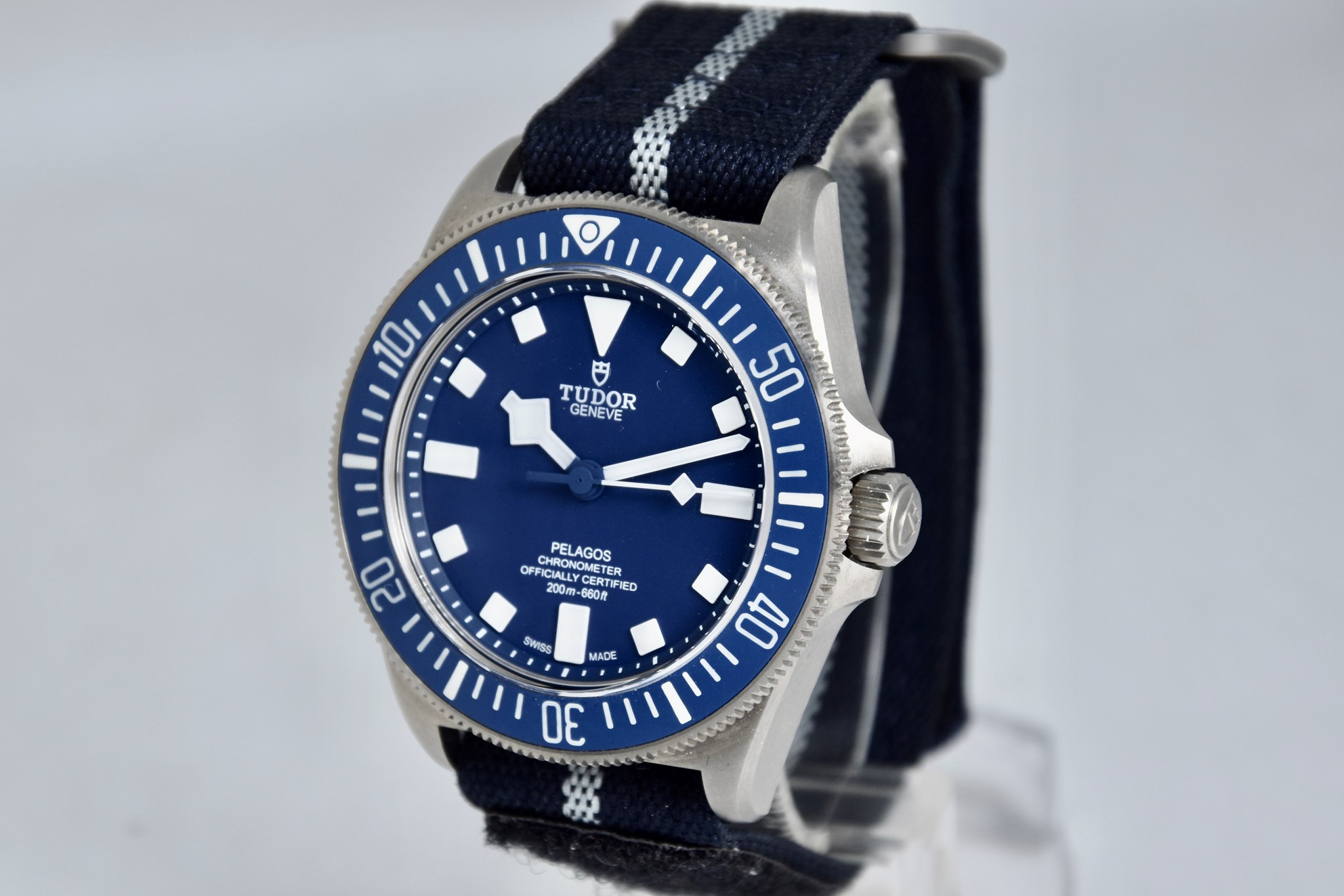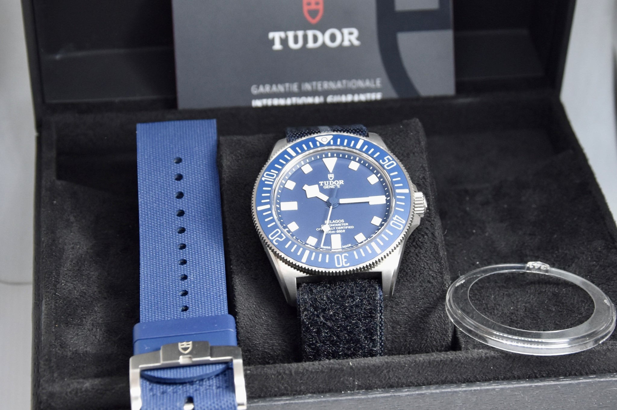 Tudor Pelagos FXD Marine Nationale del 2024. Orologio in titanio in condizioni di pari al nuovo. Quadrante opaco blu.Movimento a carica automatica. Diametro cassa 42mm. Vetro zaffiro. Ghiera girevole in titanio con inserto in ceramica. Corona a vite originale. Indici e lancette luminova con ottima lettura notturna. Luminova presente anche nell'inserto. Doppio cinturino originale in velcro e in gomma. Con scatola e garanzia originali.