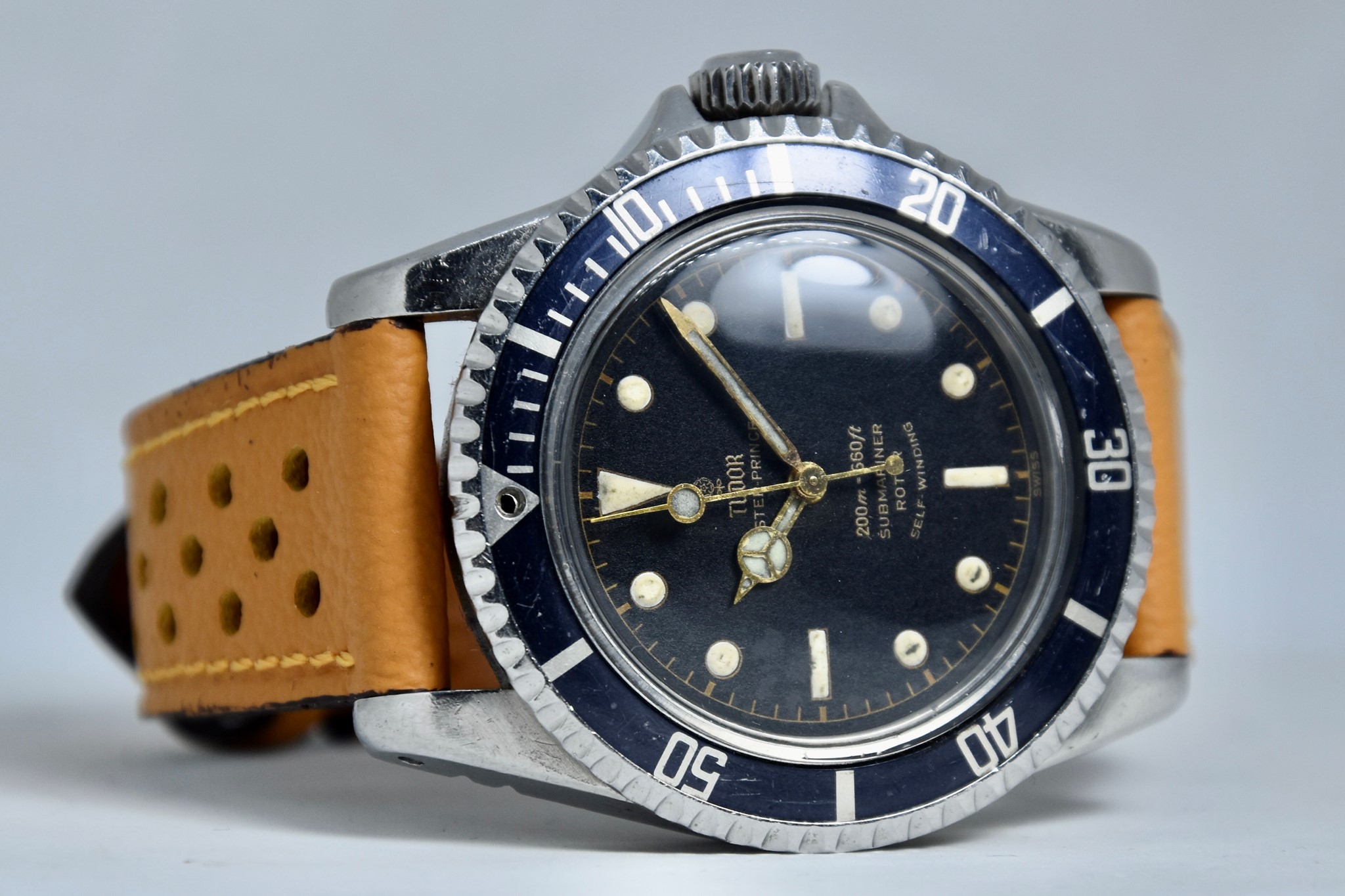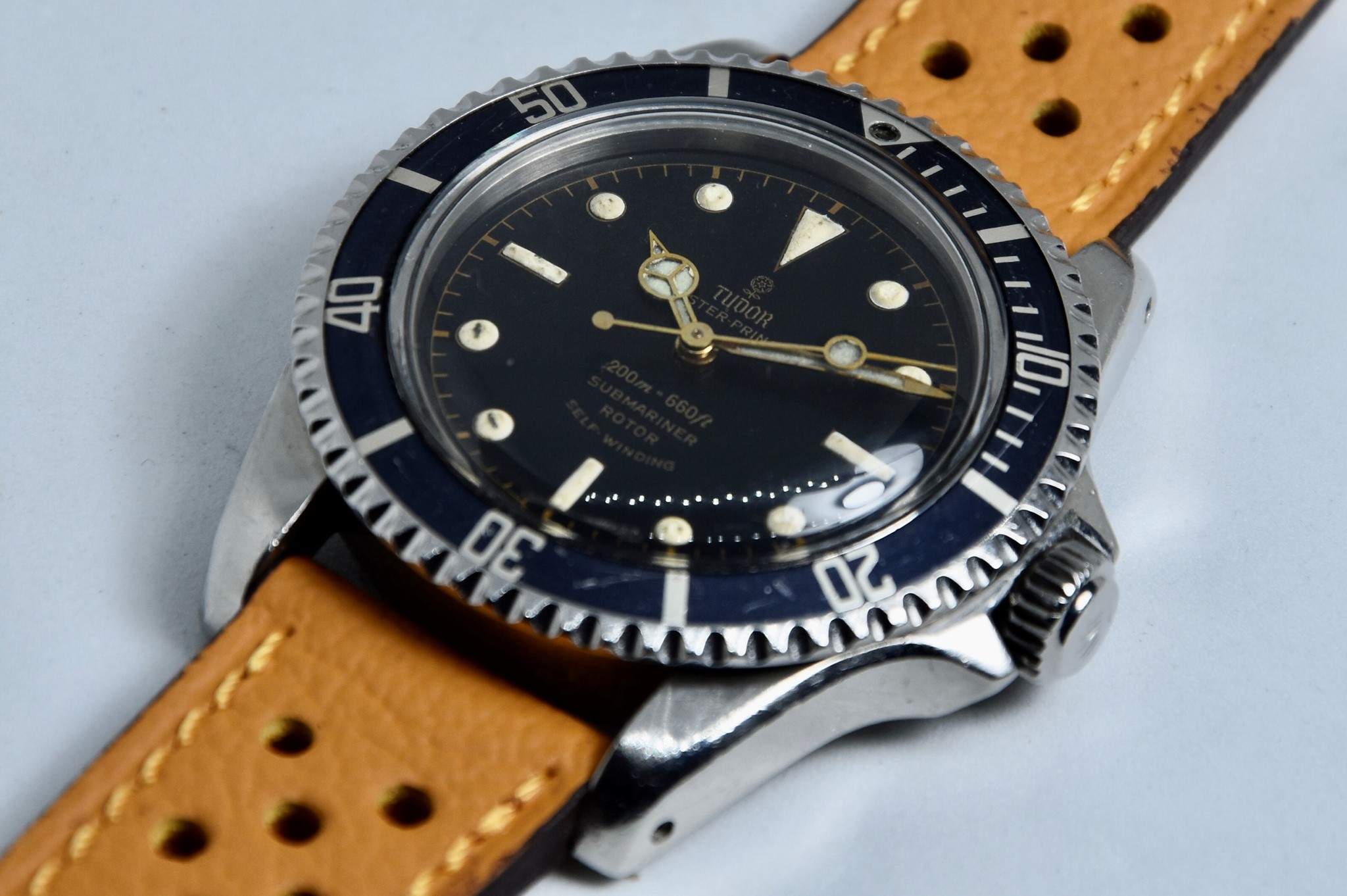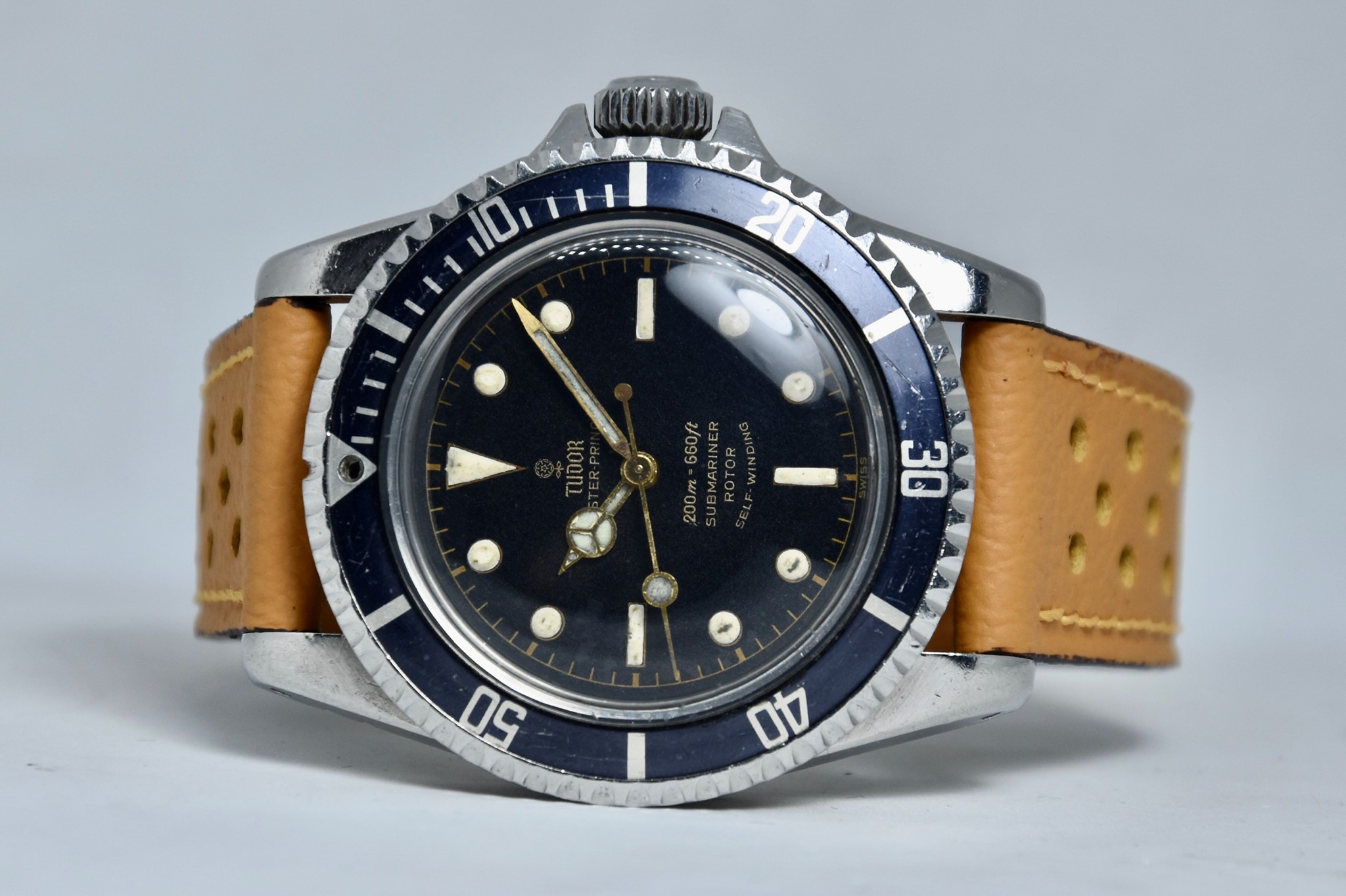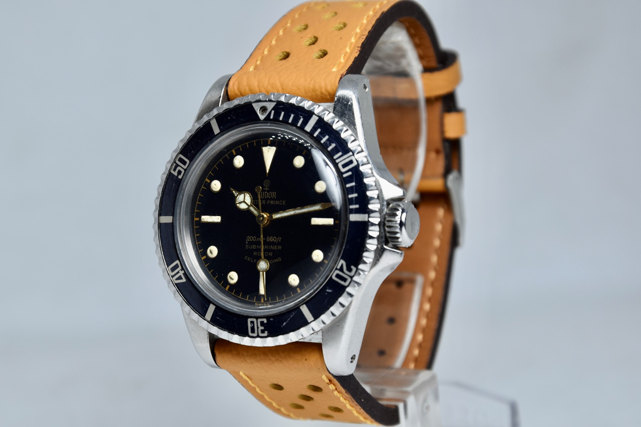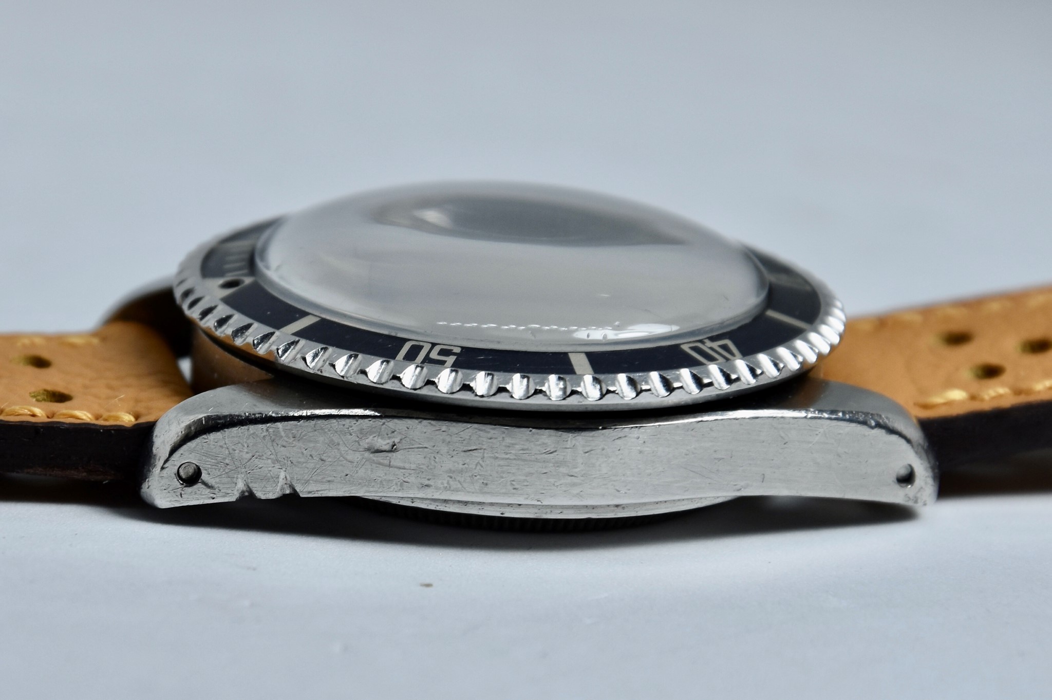 Tudor Submariner ref. 7928 del 1962. Orologio in acciaio con molteplici segni di usura. Splendido quadrante originale e coevo color nero con lancette e quadrante Gilt. Lancette ritriziate. Movimento a carica automatica. Diametro cassa 40mm. Vetro plexiglass. Presenta grandi segni sull'ansa ad ore 10. Corona e fondello originali marchiati Rolex. Orologio molto raro e richiesto. Senza scatola e garanzia originali.
