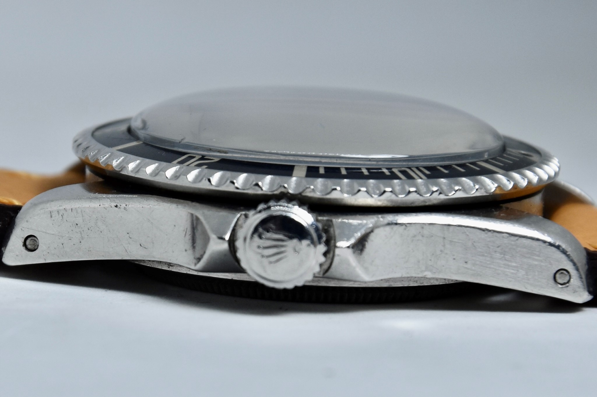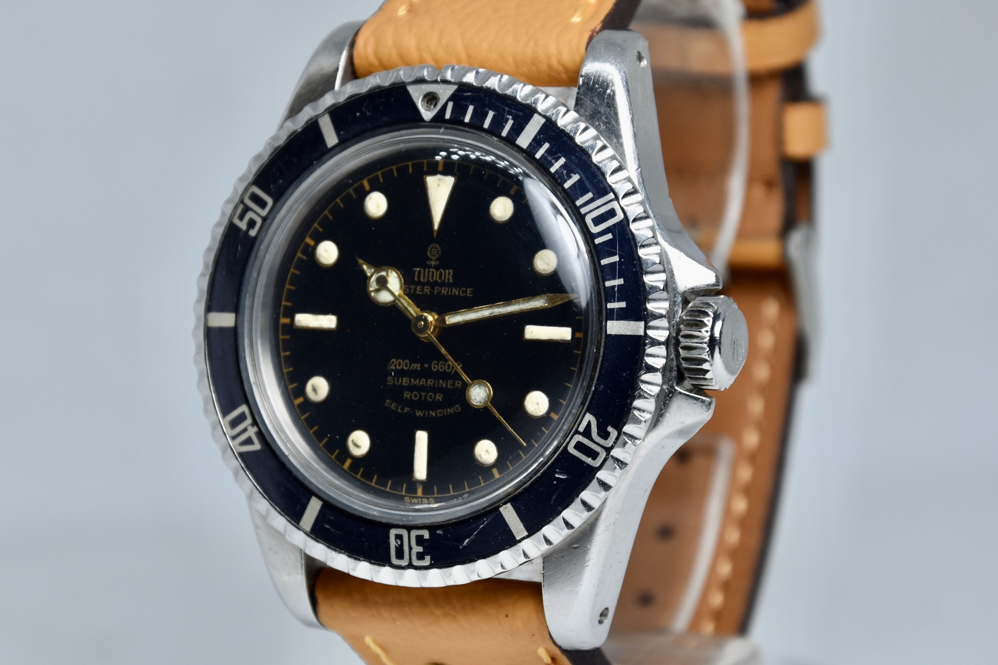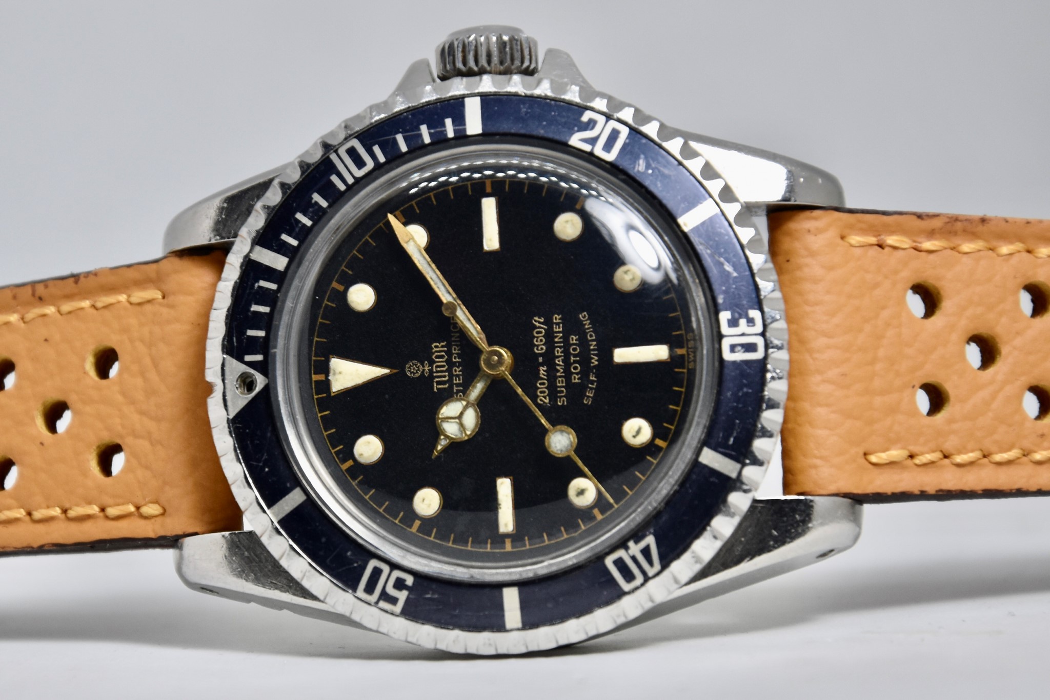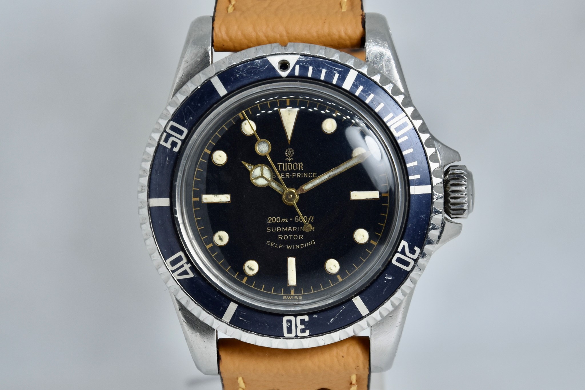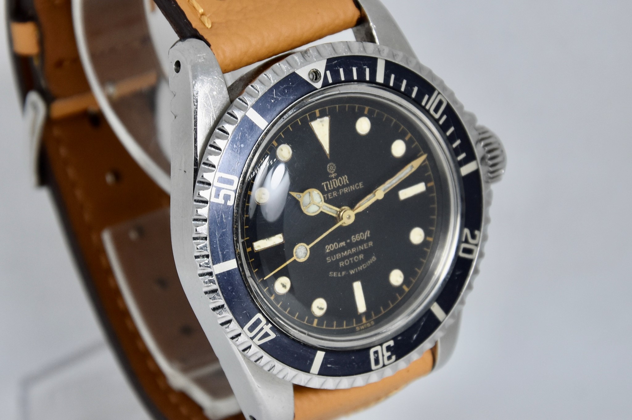 Tudor Submariner ref. 7928 del 1962. Orologio in acciaio con molteplici segni di usura. Splendido quadrante originale e coevo color nero con lancette e quadrante Gilt. Lancette ritriziate. Movimento a carica automatica. Diametro cassa 40mm. Vetro plexiglass. Presenta grandi segni sull'ansa ad ore 10. Corona e fondello originali marchiati Rolex. Orologio molto raro e richiesto. Senza scatola e garanzia originali.