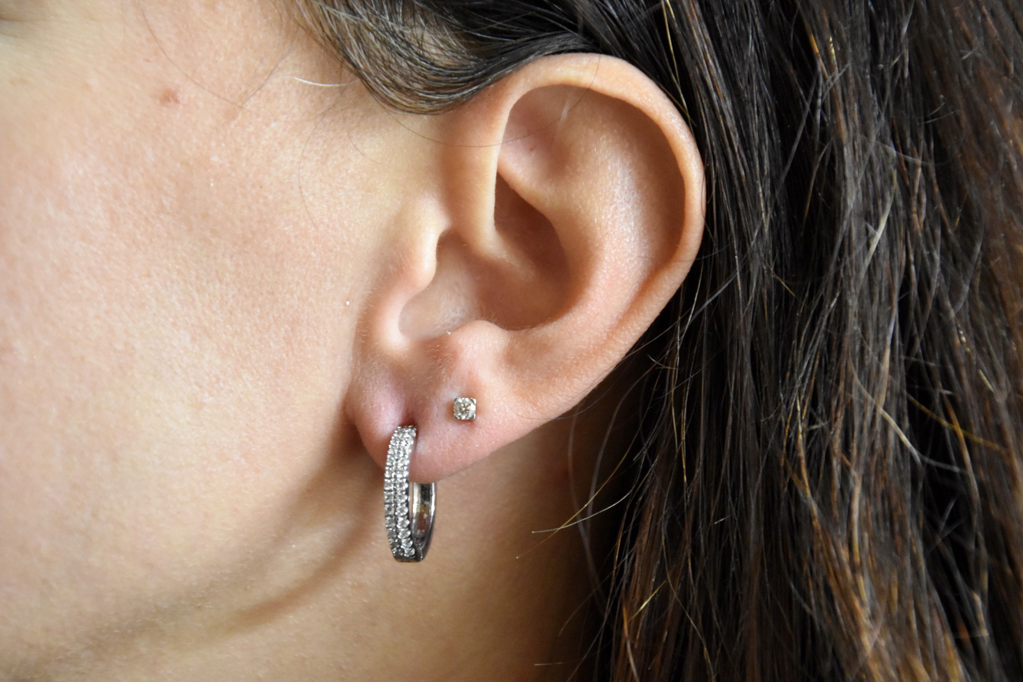Verette in oro bianco 750/00 e zirconi. Peso tot g. 5,80